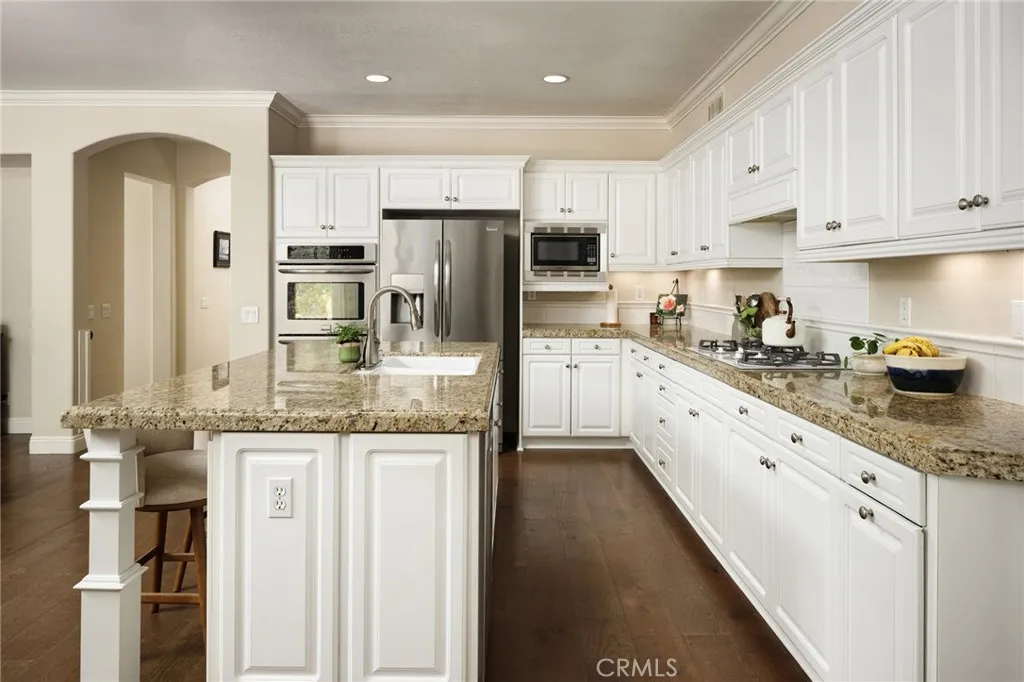 Tucked away on a charming, tree-lined cul-de-sac in the heart of Ladera Ranch, this exceptional 4-bedroom, 3-bathroom residence offers an elevated blend of timeless design, refined comfort, and expansive living spaces, including an oversized second-story bonus room ideal for a media lounge, executive office, or private retreat. Upon entry, you are welcomed by rich wood flooring that flows gracefully throughout the main living areas, complementing the homes warm yet sophisticated aesthetic. Sunlight pours through thoughtfully placed windows, illuminating elegant architectural details such as crown molding, custom millwork, and tailored window casings that create a polished, designer feel throughout. The chef-inspired kitchen is both functional and striking, featuring a generous center island, beautifully crafted cabinetry, gleaming granite surfaces, and a full suite of stainless steel appliances. Designed for both everyday living and effortless entertaining, the kitchen opens seamlessly to the inviting family room, where a statement fireplace adds warmth and ambiance. An additional fireplace in the formal living area enhances the homes sense of comfort and understated luxury. A main-level bedroom with adjacent full bath provides ideal accommodations for guests, extended family, or a private workspace. Upstairs, the primary suite offers a tranquil escape, complete with custom built-in features, an expansive walk-in closet, and a spa-inspired bath showcasing refined finishes, a soaking tub, and a serene atmosphere designed for relaxation. The backyard presents a private resort