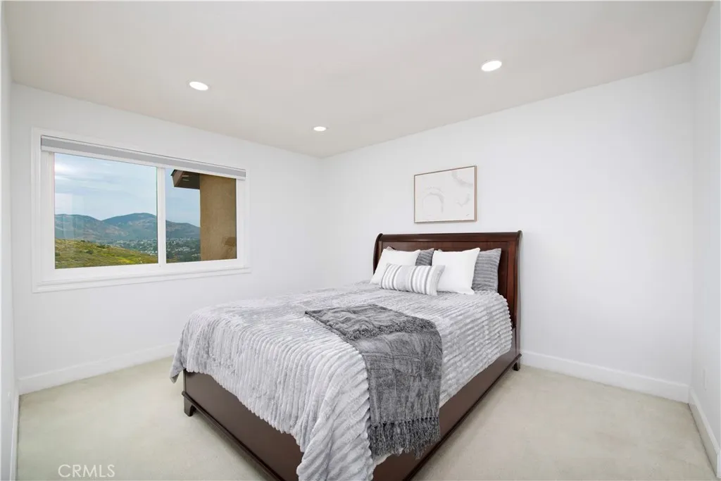 STUNNING VIEW PROPERTY IN THE HEART OF TIERRASANTA. Perched on a rare 1/3-acre cul-de-sac lot backing to the open, tranquil beauty of Mission Trails, this exceptional residence offers the perfect blend of privacy, space, and lifestyle. As one of the largest models in sought-after Tierrasanta, this home delivers 5 bedrooms, 3 baths, and a 3-car garage, offering incredible flexibility for modern living. An oversized upstairs bedroom creates the ideal space for a home office, media room, or creative retreatcomplete with expansive windows that frame breathtaking natural views. Step inside to a beautifully remodeled main level featuring gleaming wood floors, soaring ceilings, and a desirable first-floor bedroom with private exterior access, located next to a fully updated bath with a spacious walk-in shower. The thoughtfully designed floor plan flows effortlessly from the step-down living room with a striking marble fireplace into a generous formal dining spaceperfect for hosting gatherings both large and intimate. At the heart of the home, the kitchen is truly a showstopper. Designed for both function and style, it features a large center island with seating, Sub-Zero refrigeration, a Gaggenau oven and cooktop, frosted glass cabinetry, under-cabinet lighting, and a sleek, spacious pantry. A dedicated Sub-Zero wine refrigerator ensures every evening begins with ease and elegance. Just beyond, the inviting family roomwith its second fireplace and large glass slideropens to an expansive covered patio, creating seamless indoor-outdoor living ideal for entertaining. The backyard off