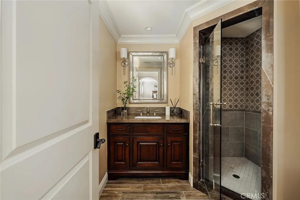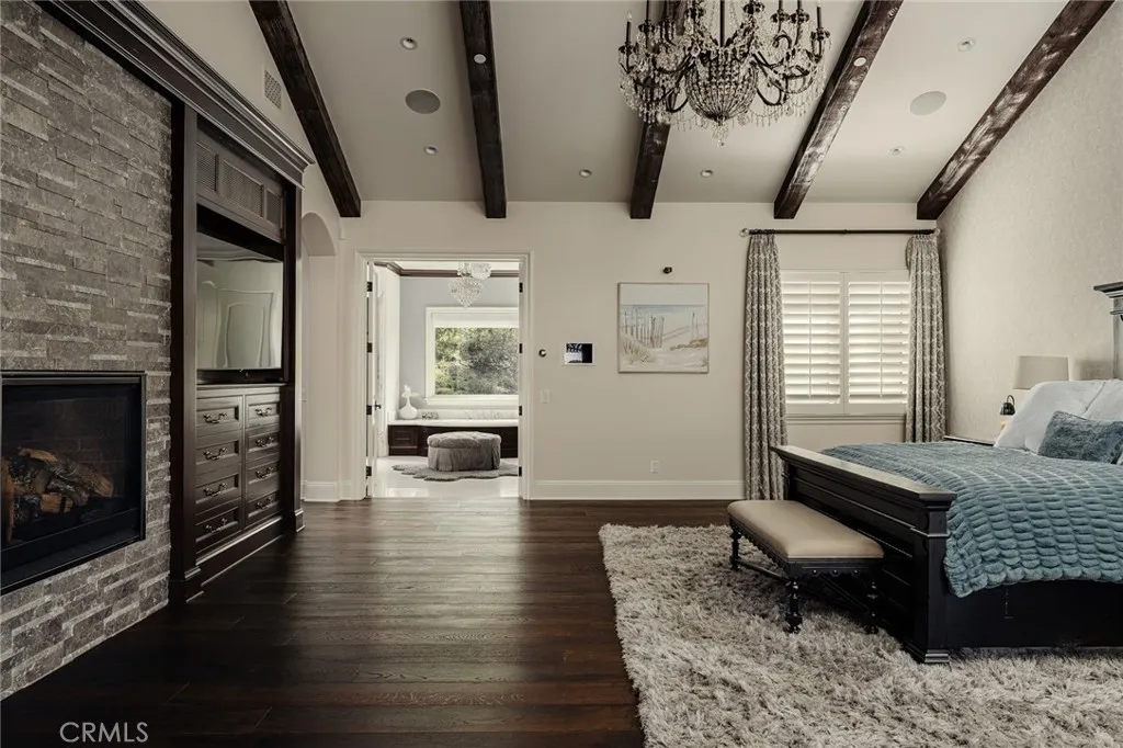 Set behind private gates on over 4 fully usable acres in Sand Canyon, this extraordinary estate offers approximately 11,000 square feet of living space with 6 bedrooms and 10 bathrooms, including a 8,895 sq ft main residence and a 2,019 sq ft detached guest house. Rebuilt and expanded down to the studs in 2019, the home showcases exceptional craftsmanship, custom lighting, and advanced automation with integrated in-wall iPad controls managing lighting, security, and water features. A grand foyer opens to soaring ceilings, dramatic stonework, multiple fireplaces, and a stunning great room anchored by an expansive entertainers bar with seating, custom cabinetry, sink, and ice maker. The gourmet kitchen features high-end appliances, custom cabinetry, two butlers pantries, a walk-in pantry, generous prep space, and a breakfast area flowing into the formal dining room. Designed to live like a single story, the main level includes a luxurious primary suite with a spa-inspired bath and expansive dual closets, along with a guest suite, private office, and an oversized laundry room. The upper level offers three guest suites, a spacious loft with kitchenette, secondary living area, second laundry room, two balconies, and separate exterior entrance/access. A dedicated game room adds to the homes appeal. The detached guest house provides exceptional flexibility with a pool house or gym space, kitchenette, full bath, multiple French doors, and an upstairs one-bedroom apartment with its own living room, kitchen, and laundry. The resort-style grounds feature a pebble tech pool with an adj