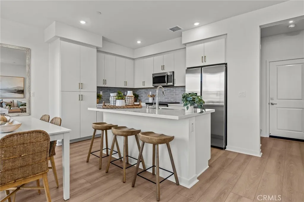 MOVE IN READY townhome w/ modern architecture and a homesite that's central to community parks, paseos highlight this space two story floorplan with a front courtyard and attached 2 car garage. TURNKEY package includes a washer/dryer/fridge, sleek Samsung appliance package, LVP/carpet/tile flooring at select areas, Quartz counters. Thoughtful floorplan offers an expansive Primary Suite upstairs opposite two secondary Beds and Bath, plus Great Room/Kitchen/Dining areas + Powder Bath at main floor. The resort-style pool and lounge area (see photos) round out this neighborhood that's away from the busier main thoroughfares yet so close to I-15 and 60 corridors, New Haven Marketplace, The Station at Eastvale, and a variety of other shopping/dining/entertainment options. Seller concessions available.