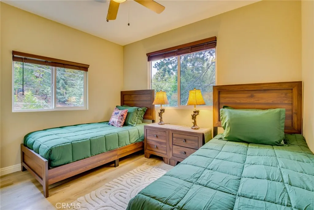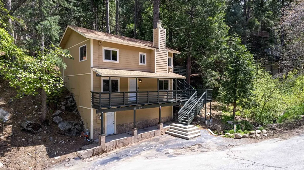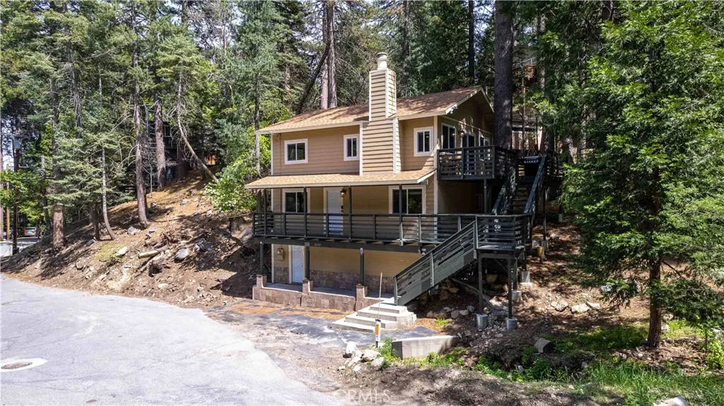 Guest Favorite | 100% 5-Star Reviews | Turn-Key Mountain/ Cabin Rustic Contemporary style Retreat or Full-Time Home Escape to the mountains and investor live with confidence in this beautifully remodeled 3-bedroom, 3-bath Twin Peaks cabin, proudly earning only 5-star reviews and honored as an AirBnB Guest Favorite. All guest reviews are available for review, reflecting consistent excellence and strong performance. This charming 2-story, 1,175 sq ft cabin is offered fully furnished and move-in ready, comfortably sleeping up to 8 guests. Whether youre seeking a proven income-producing investment or a peaceful full-time or second home, this property offers exceptional flexibility. The open, light-filled floor plan features a cozy fireplace, stylish living area, dedicated dining space, and a modern kitchen with appliances included: recent upgrades include balanced lighting, ceiling fans, heater, wall AC Unit and indoor laundry with washer and dryer for everyday comfort. Enjoy serene forest and mountain views from every window, or relax on the spacious deck surrounded by towering pine treesperfect for enjoying fresh mountain air year-round and the soothing presence of a natural spring-fed stream near the property. The home comes fully equipped with TVs in each room, games , BBQ, security cameras, and newer tasteful furnishings, driveway accommodates up to 3 vehicles, making it ideal for homeowners and guests alike. Whether youre looking for a full-time residence, a weekend mountain escape, or a high-performing Short-term rental, this exceptional cabin delivers lifestyle, credibi