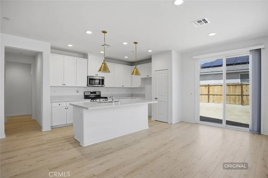 Welcome to this beautifully maintained newer construction home built only a few years ago, located in a quiet cul-de-sac in the growing community of Rosamond. Barely lived in and truly turnkey, this single-story residence offers the perfect blend of modern design, energy efficiency, and everyday comfort. Featuring 4 bedrooms and 2 bathrooms across approximately 1,694 sq ft, this home showcases vinyl plank flooring, recessed lighting, and an open-concept layout ideal for both relaxing and entertaining. The spacious kitchen is equipped with quartz-style counters, stainless steel appliances, a large island, and seamless flow into the living area, creating a modern and functional space. Enjoy the benefits of dual-pane windows, central HVAC, a whole-house ventilation system designed to improve indoor air quality and airflow, and a paid solar system, helping keep energy costs low year-round. The primary suite offers a well-appointed bathroom with dual sinks, walk-in shower, and a spacious walk in closet. Situated on a generous 7,800+ sq ft lot, the backyard provides plenty of room to customize, entertain, or simply enjoy outdoor living. The property also includes a 2-car attached garage, indoor laundry room, and modern safety features such as fire sprinklers system. Priced better than nearby new construction, take advantage of this opportunity without the builder wait! Conveniently located near local schools, shopping, dining, and with easy access to the 14 Freeway for commuters, this home checks all the boxes. No HOA. No Mello-Roos. Move-in ready and ready for its next owner!