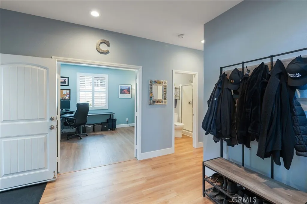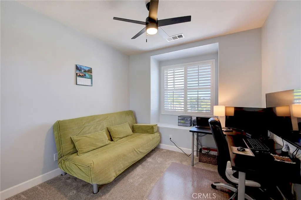 Beautifully upgraded Redhawk golf course home offering 5 bedrooms, 3 bathrooms, and approximately 2,916 square feet, ideally located in one of South Temeculas most sought-after communities. Perfectly positioned along the 16th fairway, this home captures scenic golf course, tree, mountain, and peek-a-boo views from a thoughtfully landscaped setting. The desirable two-story floor plan features a main-floor bedroom and full bath, spacious open living areas, and extensive upgrades throughout. The redesigned kitchen seamlessly opens to the family room and showcases an expanded island with seating, quartz countertops, stylish backsplash, soft-close cabinetry, and an enlarged walk-in pantry, creating both functionality and a modern aesthetic. Interior enhancements include new wood laminate, tile, and carpet flooring, added recessed lighting, refinished cabinetry with upgraded countertops and undermount sinks, plantation shutters, coordinated ceiling fans, custom closets in every bedroom, updated bathroom tile, a custom linen cabinet in the primary suite, and a custom barn door at the laundry room. Additional improvements include upgraded switches and outlets, overhead garage storage, plus a newer A/C system and water heater. The exterior has been thoughtfully upgraded for both beauty and usability, featuring redesigned landscaping, new retaining walls and planters, and extensive paver hardscaping across the side and backyard. A custom patio cover with lighting, ceiling fans, outlets, and gutters creates an inviting outdoor living space, ideal for relaxing or entertaining. Addition