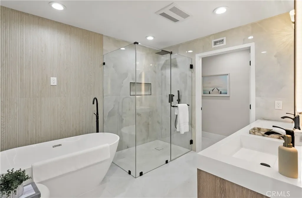 Discover refined coastal living in this beautifully customized Contemporary home located in the exclusive, guard-gated community of Jasmine Creek. Encompassing over 1,900 square feet on a single level, this residence offers privacy, resort-style amenities, and a premier Corona del Mar location just moments from the ocean. Designed for seamless indoor-outdoor living, the home features two spacious bedrooms and two luxurious bathrooms, along with a living room, entertainment room, private dining room, and a gourmet kitchen with breakfast nook. Multiple rooms, including the main suite, open directly to the expansive rear yard and patio, creating the perfect flow for entertaining or relaxing. The chefs kitchen boasts a Forno 6-burner range, high-end appliances, custom cabinetry, and a pantry with pull-out drawers. The main suite offers a generous walk-in closet and spa-inspired bath with double vanities, a walk-in shower, and a freestanding soaking tub. A secondary suite and charming private patio add to the thoughtful design. Custom stone landscaping, a tranquil waterfall, and walk-up deck enhance the outdoor living experience, while newer appliances, air conditioning, and meticulous finishes complete the home. Move-in ready and crafted for comfort and style, this Jasmine Creek gem presents a rare opportunity to enjoy coastal luxury in one of Corona Del Mars most coveted communities.