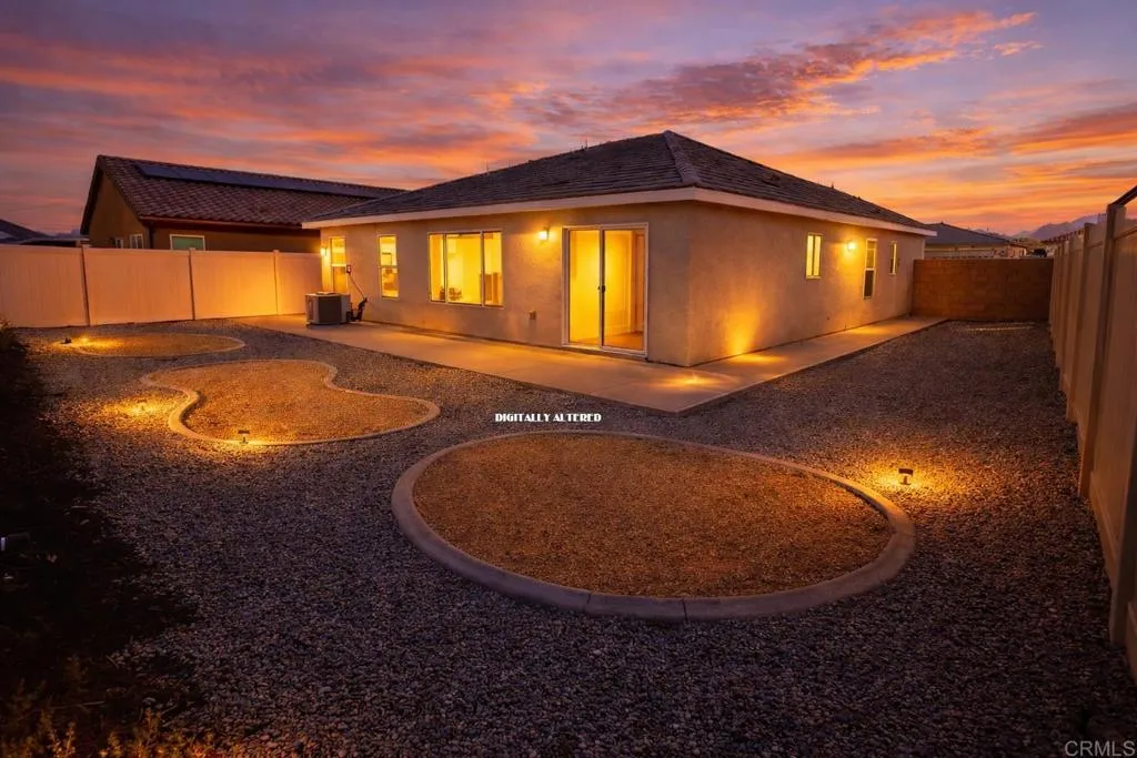 Welcome to this beautifully maintained single-story home located on a quiet cul-de-sac featuring NO HOA and PAID SOLAR. This move-in ready 3-bedroom, 2-bath residence offers approximately 1,476 sq ft of well-designed living space on a 6,534 sq ft lot, combining comfort, functionality, and privacy. The spacious kitchen is designed for both everyday living and entertaining, featuring granite countertops, white cabinetry, a pantry, double sink, and a generous islandperfect for casual dining with bar seating or gathering with guests. The open layout flows seamlessly into the dining area, which features a large glass sliding door that brings in natural light and connects beautifully to the spacious backyard. The spacious primary bedroom offers a private retreat, complete with large windows and separation from the two secondary bedrooms for added privacy. The primary suite also features a dual-sink vanity and two closets, including a walk-in closet. Secondary bedrooms are well-sized and ideal for family, guests, or a home office. Additional highlights include central air conditioning, an interior laundry room, and a tankless water heater for added efficiency and comfort. The seller has invested approximately $9,000 in front and backyard landscaping, enhancing the homes curb appeal and outdoor enjoyment. A fantastic opportunity to own a stylish, move-in ready home with paid solar, no HOA, and thoughtful upgrades in a desirable location. Schedule your private showing today