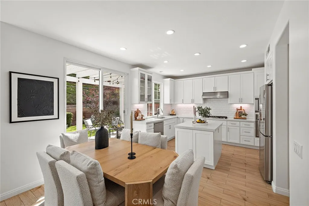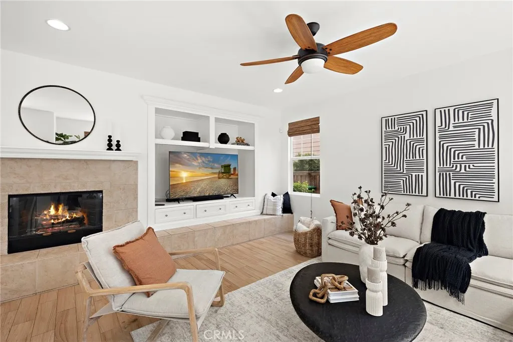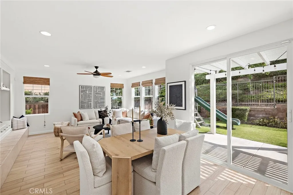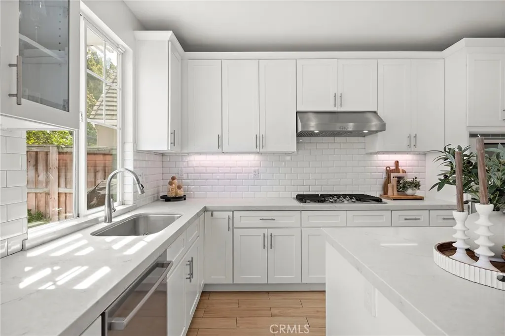 Located on a flat, family-friendly cul-de-sac in the heart of Ladera Ranch, this beautifully upgraded home offers an exceptional blend of comfort, functionality, and walkability-just moments to Oso Grande Elementary, Poets Park, and Founders Park. Encompassing approximately 2,588 sq. ft., the home features 4 spacious bedrooms plus a versatile third-level bonus room, ideal for a playroom, office, or media space. The thoughtfully designed main level showcases an elegantly remodeled kitchen with quartz countertops, stainless steel appliances, updated Shaker cabinetry, a walk-in pantry, and a center island-all opening to a light-filled family room with fireplace, ceiling fan, and custom shades. The seamless indoor-outdoor flow leads to a private backyard backing to a tranquil greenbelt, complete with a covered patio and synthetic grass-perfect for relaxing or entertaining. Upstairs, four generous bedrooms include a primary suite retreat with its own fireplace, dual sinks, walk-in closet, and an updated bath with new counters and shower. A convenient second-floor laundry room with sink adds everyday ease, while the third-level bonus room provides valuable flexible living space. Additional highlights include tile wood-look flooring, updated flooring upstairs, fresh interior paint, recessed lighting, plantation shutters, a full home repipe, owned solar, and a two-car attached garage with built-ins. Enjoy the unmatched lifestyle of Ladera Ranch with access to resort-style pools, parks, hiking and biking trails, and vibrant community amenities-all from this ideally located and move-