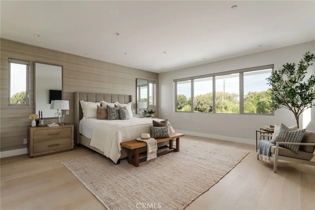 Hidden away, discover this newly built 2022 contemporary retreat defined by a calming aura, refined design, and elevated finishes. Serene, private, and thoughtfully composed, the home unfolds through a natural flow, paired with seamless living and abundant natural light. Designed as a true escape, privacy windows, lush landscaping, and the intentional positioning of living and sleeping spaces create a tranquil, immersive environment. Entering through landscaped gardens, you are welcomed into an enclosed sunroom designed for organic living (adding an additional 323 SF). Floor-to-ceiling windows, skylights, and ceiling-mounted heaters allow year-round use. Sliding LaCantina doors connect seamlessly to the living room, enhancing indoor-outdoor flow. Hardwood floors add warmth, while 12-foot ceilings, 7.5-foot custom doors, and an open-concept layout define the main level. Recessed lighting is integrated throughout, complemented by Pella double-pane windows and interior fire sprinklers. The kitchen is both functional and refined, centered around a tiered 10-foot quartz island with dual seating. Custom cabinetry by Coastal Cabinets with drawer-within-drawer inserts enhances usability, while premium appliances include a Miele 48 dual fuel range with steam oven and warming drawer, Bosch dishwasher, built-in Miele microwave, plumbed Miele coffee system, and Dacor panel refrigerator and freezer. Also on the main level, find a powder room and a flexible guest bedroom or office with ensuite bath featuring an oversized glass shower and heated floors. The two-car garage includes epoxy f