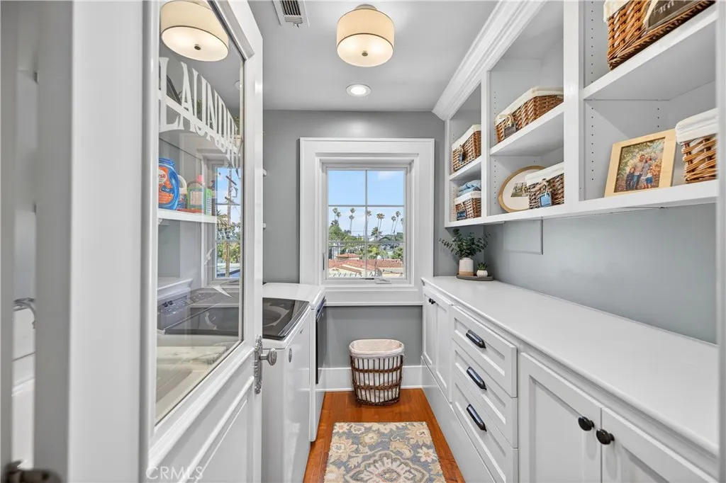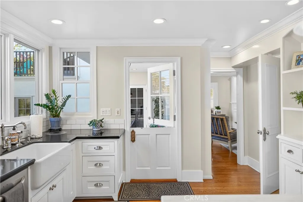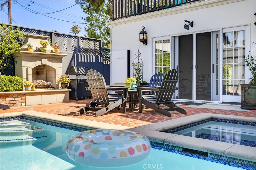 Built in 1920, this beautifully updated Colonial Revival, located in sought-after Belmont Heights, blends timeless architecture with a pristine coastal aesthetic. Lovingly cared for and thoughtfully improved over time, the home reflects true pride of ownership. Defined by its classic symmetry and inviting curb appeal, it is rich in character with hardwood floors, plantation shutters, and a warm, welcoming fireplace, while beautiful built-ins throughoutincluding bookcases and integrated storageadd both character and function, with thoughtful design evident in every detail. The chefs kitchen is both functional and beautifully appointed, featuring Carrara marble countertops, a top-of-the line Thermador range & refrigerator, dual zoned wine fridge, a walk-in pantry, and custom cabinetry. Designed with flexibility in mind, the home offers four bedrooms, including one currently transformed into a stunning custom closet. The spacious primary suite features dual walk-in closets and a spa-like bath with a large standalone soaking tub, and opens to a private deck overlooking the backyard, pool, and spaan inviting extension of the living space. Additional highlights include an upstairs laundry room, abundant storage, and owned solar. The outdoor setting is ideal for entertaining, featuring an elevated dining area overlooking the pool, a cabana/den that can easily function as a guest suite, a pool and spa, and an outdoor fireplace that anchors the space. Perfectly located just blocks from the beach and moments from the shops and dining of 2nd Street in Belmont Shore, this home offers c