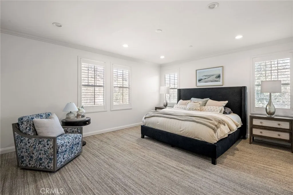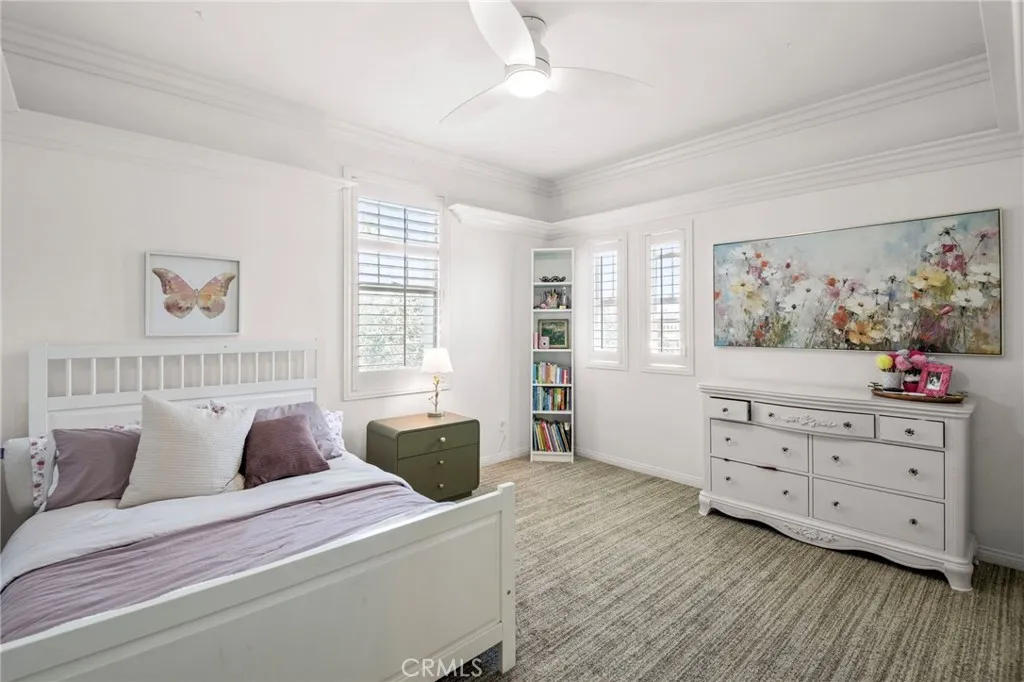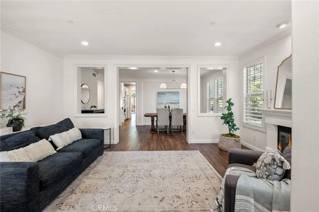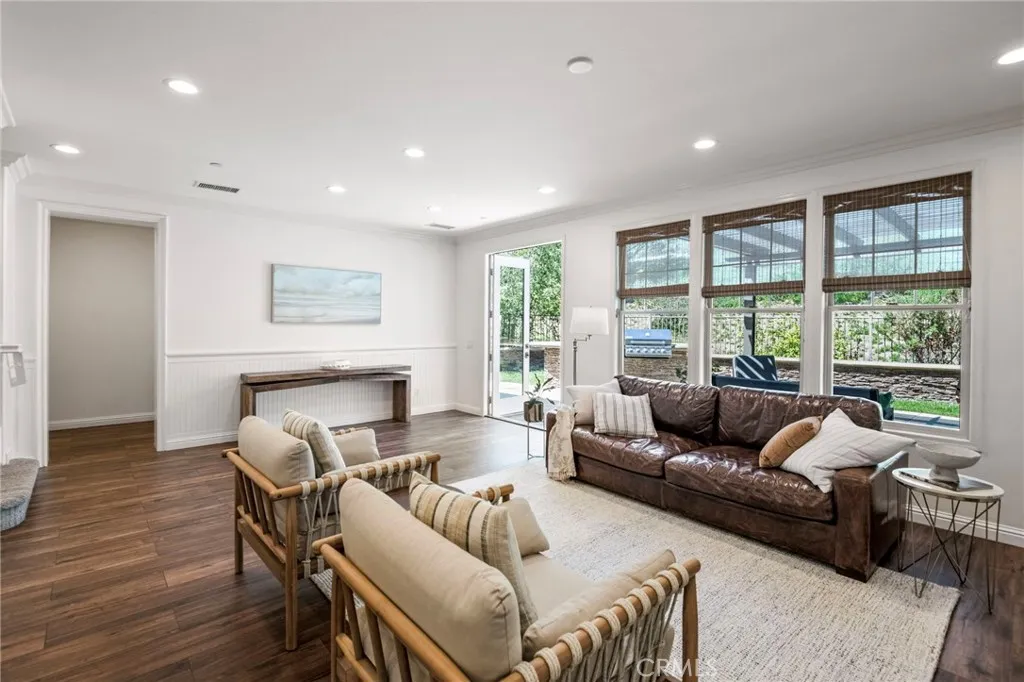 Located in the coveted San Lucar neighborhood of Talega, this residence features sophisticated finishes throughout, including elegant crown molding, custom casings, and designer plantation shutters adorning dual-pane windows. Enhancing its value is a fully paid-off solar system. The culinary wing offers a designer main kitchen featuring champagne bronze hardware, a custom hood vent, and a large porcelain farmhouse sink. Premium appointments include granite countertops, under-cabinet lighting, a gas cooktop, a built-in refrigerator, and double ovens. Tucked away from the main kitchen is a rare scullery or prep suite equipped with a sink, full-size refrigerator, additional mini-fridge/beverage cooler, microwave, quartz countertops, and cabinetry. The primary bedroom/sanctuary includes a spa-inspired en suite with a freestanding soaking tub, double vanities with marble countertops, and a floor-to-ceiling shower featuring a rain head, handheld wand, and triple body jets. The bespoke walk-in wardrobe features integrated storage systems and custom cabinetry, while a seamless full-length mirror opens to reveal a cedar-lined hidden closet for fine woolens and seasonal attire. Private guest accommodations are located downstairs, featuring a bedroom with custom built-ins and a private en suite with a walk-in shower. Additional living spaces include two expansive downstairs living areas, each anchored by a cozy fireplace, and a versatile second-story loft with custom built-in storage. A designer laundry room is conveniently located upstairs with quartz countertops, custom cabinets, an