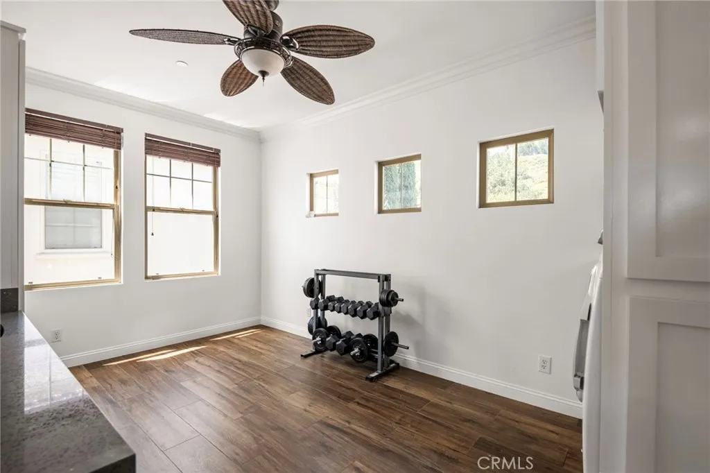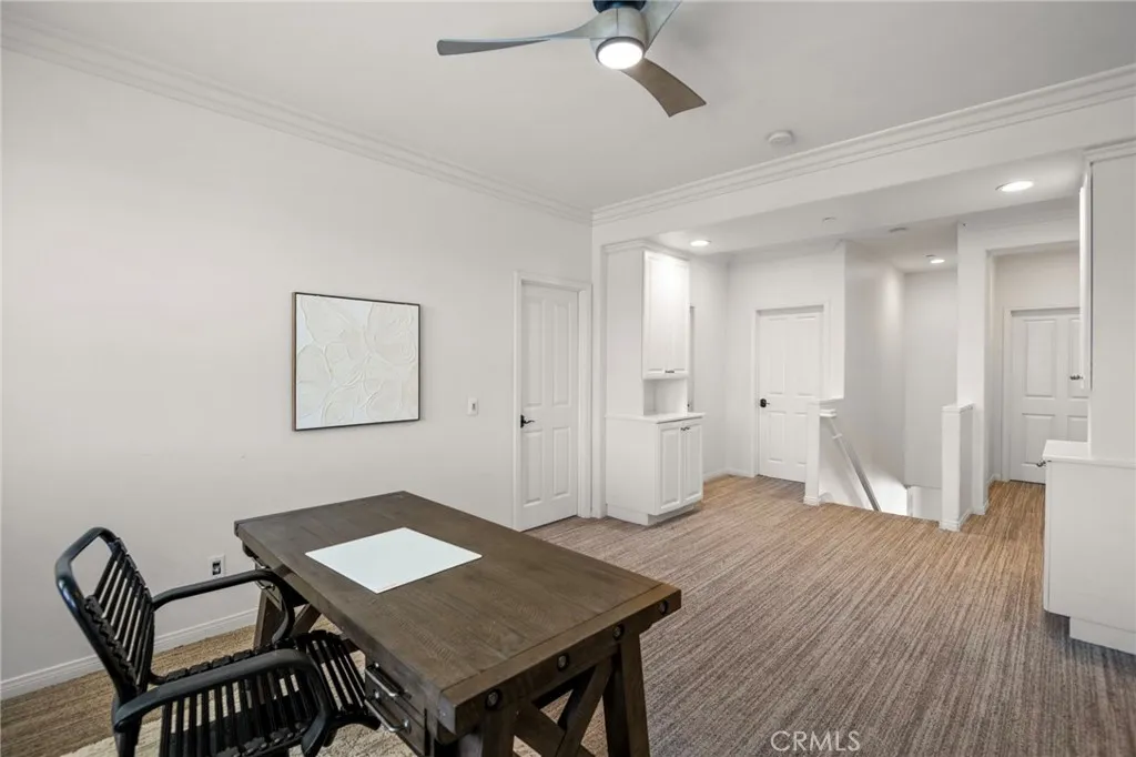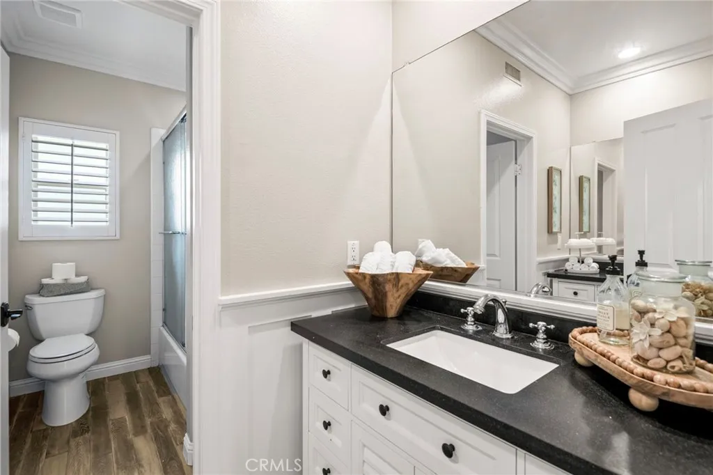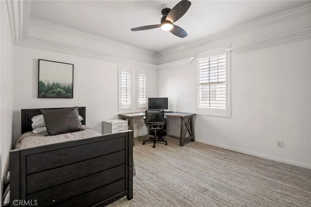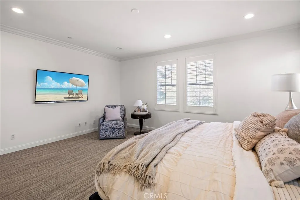 Located in the coveted San Lucar neighborhood of Talega, this residence features sophisticated finishes throughout, including elegant crown molding, custom casings, and designer plantation shutters adorning dual-pane windows. Enhancing its value is a fully paid-off solar system. The culinary wing offers a designer main kitchen featuring champagne bronze hardware, a custom hood vent, and a large porcelain farmhouse sink. Premium appointments include granite countertops, under-cabinet lighting, a gas cooktop, a built-in refrigerator, and double ovens. Tucked away from the main kitchen is a rare scullery or prep suite equipped with a sink, full-size refrigerator, additional mini-fridge/beverage cooler, microwave, quartz countertops, and cabinetry. The primary bedroom/sanctuary includes a spa-inspired en suite with a freestanding soaking tub, double vanities with marble countertops, and a floor-to-ceiling shower featuring a rain head, handheld wand, and triple body jets. The bespoke walk-in wardrobe features integrated storage systems and custom cabinetry, while a seamless full-length mirror opens to reveal a cedar-lined hidden closet for fine woolens and seasonal attire. Private guest accommodations are located downstairs, featuring a bedroom with custom built-ins and a private en suite with a walk-in shower. Additional living spaces include two expansive downstairs living areas, each anchored by a cozy fireplace, and a versatile second-story loft with custom built-in storage. A designer laundry room is conveniently located upstairs with quartz countertops, custom cabinets, an