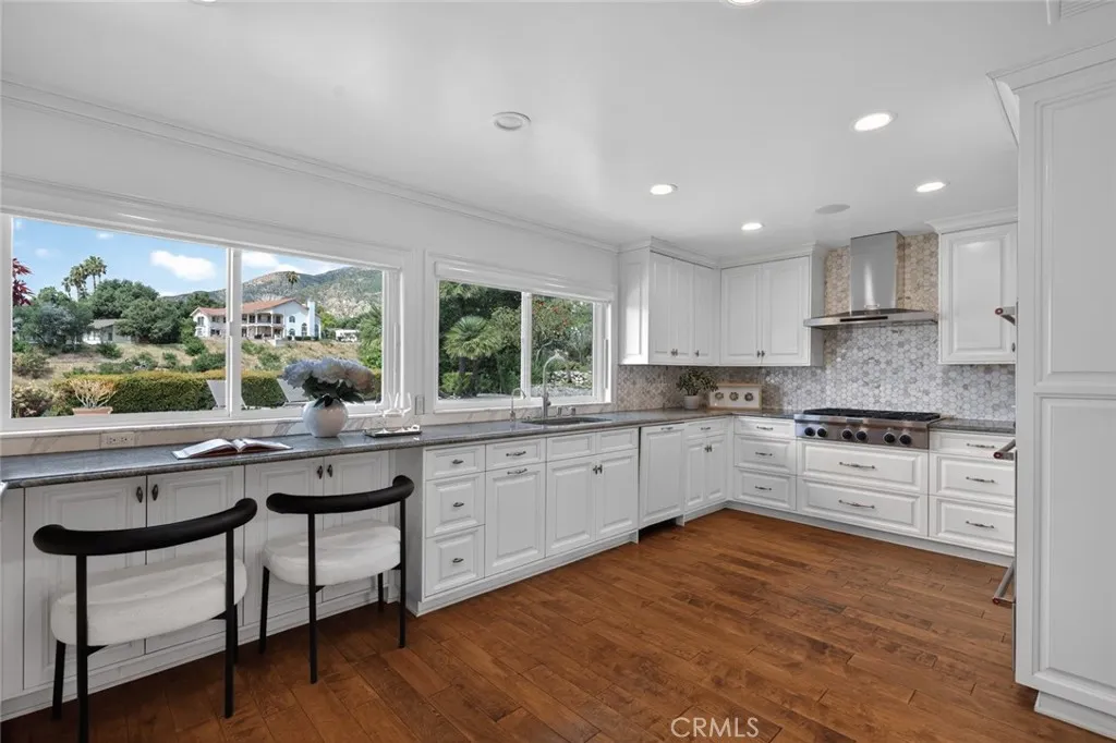 Bright and refined pool residence with sweeping canyon and city-light views, set at the end of a quiet cul-de-sac in the prestigious Kinneloa Mesa enclave of Pasadena. Positioned on an expansive 31,000+ sq ft lot, the property offers a rare combination of privacy, scale, and a serene connection to its natural surroundings. Vaulted ceilings, skylights, and expansive windows fill the interiors with natural light, creating an airy and sophisticated ambiance. The open living and dining areas are anchored by a marble fireplace, while the kitchen features quartz countertops, stainless steel appliances, and a breakfast area overlooking the canyon and grounds beyond. A spacious family room with built-ins, wet bar, fireplace, and full bath opens through French doors to the outdoor setting. The flexible floor plan includes two primary suites, including a main-level suite, while the upper-level primary features vaulted ceilings, a walk-in closet, and dual view decks capturing panoramic mountain, canyon, and city-light vistas. Additional bedrooms complete the upper level. The grounds offer a private retreat with pool, spa, mature fruit trees, and generous patio spaces designed for both entertaining and quiet relaxation. The hillside landscape enhances the sense of seclusion while showcasing the propertys picturesque setting. A three-car garage and close proximity to shopping, dining, and major commuter routes complete this exceptional offeringwhere privacy, views, and lifestyle converge in one of Pasadenas most sought-after neighborhoods.
