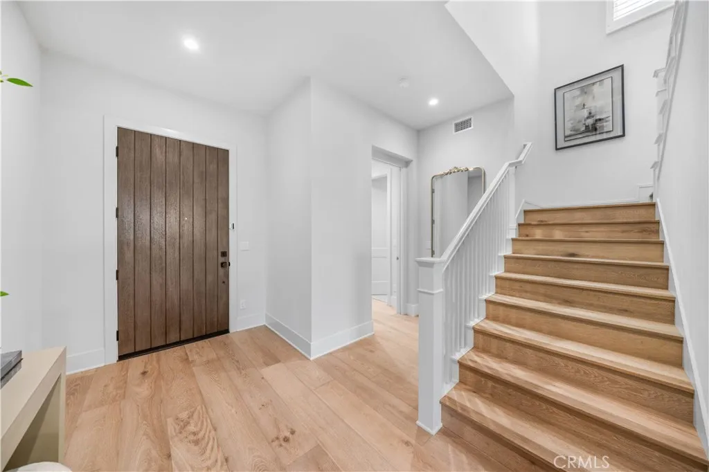 Nestled on a single loaded street within the prestigious gated enclave of The Groves at Orchard Hills, this newer home offers an exceptional blend of privacy, luxury and functionality. Appointed with $300,000 in designer upgrades, this residence features 4 bedrooms, 4.5 baths, with 3,361 sqft living space on a 5,130 sqft lot, presenting avocado orchard view surrounded by nature. Walking through the front door, youll pass by the downstairs bedroom and full bath with upgraded shower wall, flooring and floating mirror. Louvre Collection Aged French Oak hardwood throughout the first floor. Spacious living room with high ceiling and cozy fireplace, sliding door to a private and low maintenance backyard with trees, flowers and artificial grass. Highly upgraded gourmet kitchen with a large island, designer color cabinets, quartz countertop with beautiful movement, and selected backsplash. Top-of-the-line appliances like Sub Zero 42'' French door built-in refrigerator, Wolf 48'' Stainless steel 6 burner gas stove with griddle, double oven, microwave, single basin sink, and luxury faucet. Prep kitchen with Wolf stove, sink, custom shelf and glass French door to the yard, better than the model! Dining room with picture window. Upstairs you will find an enclosed loft, perfect for a library/den/family room. Expansive primary bedroom, bathroom with double sinks, free-standing tub, shower room with wall-to-wall tiles, two walk-in closets and storage cabinets. Next, youll encounter 2 en-suite guest bedrooms with amazing avocado orchard views, offering relaxation and privacy. One of the gu