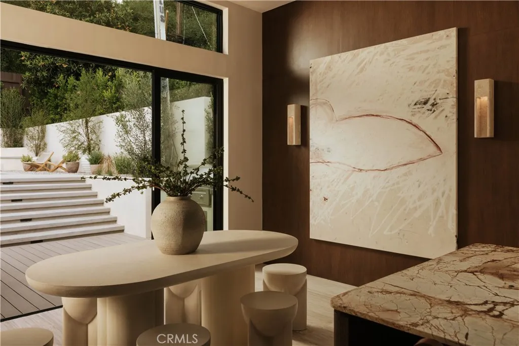 Set in the coveted Silver Triangle of Studio City and within the highly sought-after Carpenter School District, The Laurel Haven Residence has been completely reimagined undergoing a full-scale renovation defined by exceptional scale, design, and craftsmanship. Landscaping surrounds the home with ornamental grasses, sculptural plantings, and lavender gardens, creating a tranquil modern California setting. Designed with a refined contemporary aesthetic, the home blends clean architectural lines, curated natural materials, and interlocking indoor-outdoor living, embodying the essence of the Southern California lifestyle. Inside, the home features a curated palette of luxury materials and designer finishes, including premium hardwood flooring, Silver Travertine, Roman Imperiale quartzite, limestone accents, and Breccia marble surfaces. Custom architectural millwork and Dal Lusso cabinetry elevate the interiors with warmth and sophistication. At the heart of the home is a designer chefs kitchen featuring an oversized island with custom stained wood cabinetry and integrated high-end appliances. Thoughtful architectural lighting and refined stone surfaces create a space ideal for both everyday living and entertaining. Designed for California indoor-outdoor living, the property offers multiple outdoor spaces including a dining patio, kitchen deck, pool terrace, landscaped courtyard, and private entertaining areas. The primary suite serves as a private retreat with a spa-style bathroom, custom closet design, and an ensuite foyer for added comfort and convenience. A fully independen