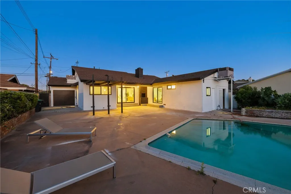 Welcome to one of Bellflowers premium offerings, ideally located in a well-established pocket north of Alondra. This fully remodeled home offers 4 bedrooms, 3 bathrooms, and just under 2,000 square feet of refined living space on an expansive 18,000 square foot lot an incredibly rare combination of size, style, and opportunity. Thoughtfully redesigned with modern finishes throughout, the home showcases a bright, open-concept layout, a beautifully upgraded kitchen, and spacious living areas perfect for both everyday living and elevated entertaining. The primary suite serves as a private retreat, complete with a well-appointed en-suite bathroom and generous closet space. The home also features a versatile front room with closet, offering flexibility for use as a fourth bedroom, office, or guest space. Additional features include a spacious two-car garage and a dedicated laundry room with custom cabinetry designed to match the kitchen, offering both functionality and a cohesive, elevated finish throughout the home. Step outside to an expansive backyard featuring a large pool, outdoor fireplace, and an ideal setting for entertaining, relaxation, and seamless indoor-outdoor living year-round. The oversized lot offers exceptional potential whether you envision adding an ADU for additional income, creating a sports court, cultivating a garden, or designing your own private outdoor dream backyard space. Enjoy close proximity to the revitalized Bellflower downtown district, featuring a variety of dining, cafes, and local amenities, all while maintaining a peaceful residential settin