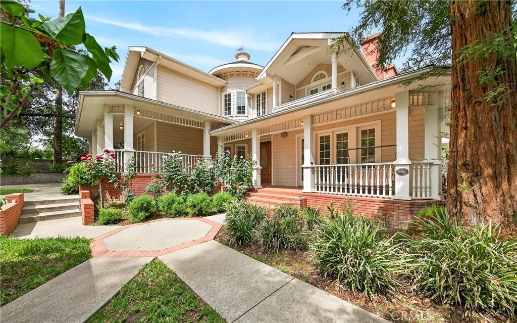 Opportunities of this caliber are increasingly rare in Sierra Madre. Set along one of the citys most picturesque, tree-lined streets, this distinguished Victorian Farmhousepart of the coveted Jameson Legacies collectionoffers a level of craftsmanship, scale, and privacy that would be exceptionally difficult to replicate today. A lush, storybook front garden and sweeping wrap-around porch create an immediate sense of arrival and retreatwhere established mature landscaping, a gracious faade, and a serene setting establish the tone before you even step inside. The curb appeal is simply unmatched. The thoughtfully designed floor plan flows effortlessly between formal and informal spaces. 9-foot ceilings, custom-milled moldings, wainscoting, handcrafted fireplace mantels, and gleaming hardwood floors set an elevated standard throughout. The gourmet kitchen is a chefs dream: Viking stove, double ovens, warming drawer, convection oven, Sub-Zero refrigerator, Bosch dishwasher, wine chiller, and a generous walk-in pantry. Solid wood interior doors with Baldwin hardware and Casablanca ceiling fans complete the picture. The expansive primary suite is a true sanctuaryfeaturing a fireplace, sitting area, balcony access, and a spa-inspired bath. A classic laundry chute connects directly to the lower-level laundry room below. A private in-home elevator provides seamless, effortless access between all levels. Plus Outside, the grounds unfold as a true garden estate. Sixteen mature fruit trees of various varieties create a lush, ever-changing urban orchard that invites both relaxation and h