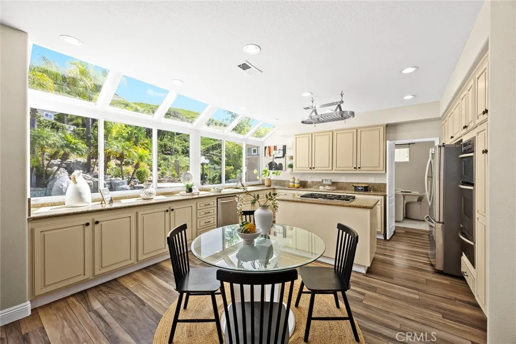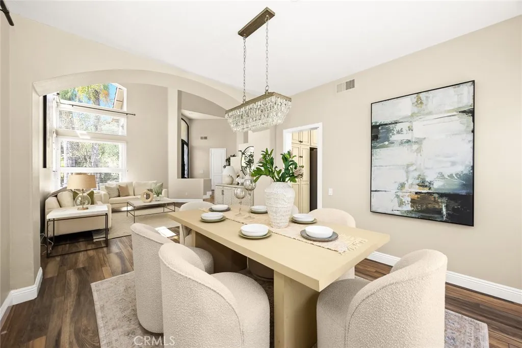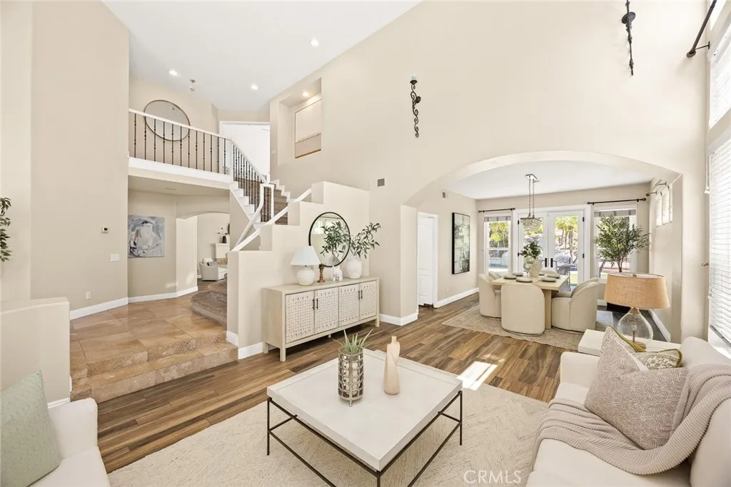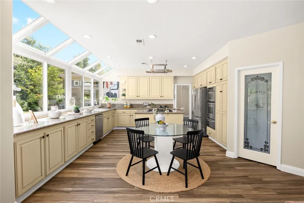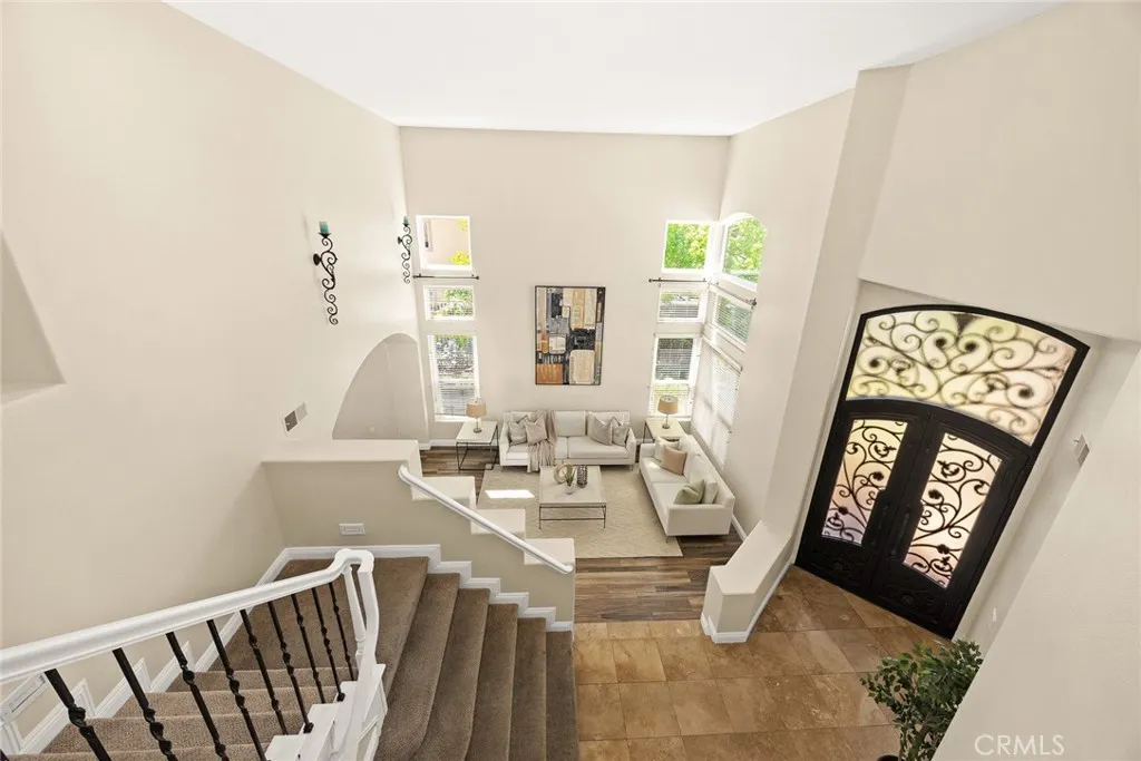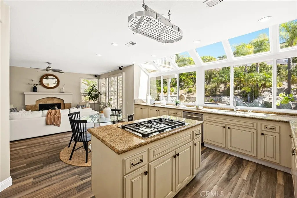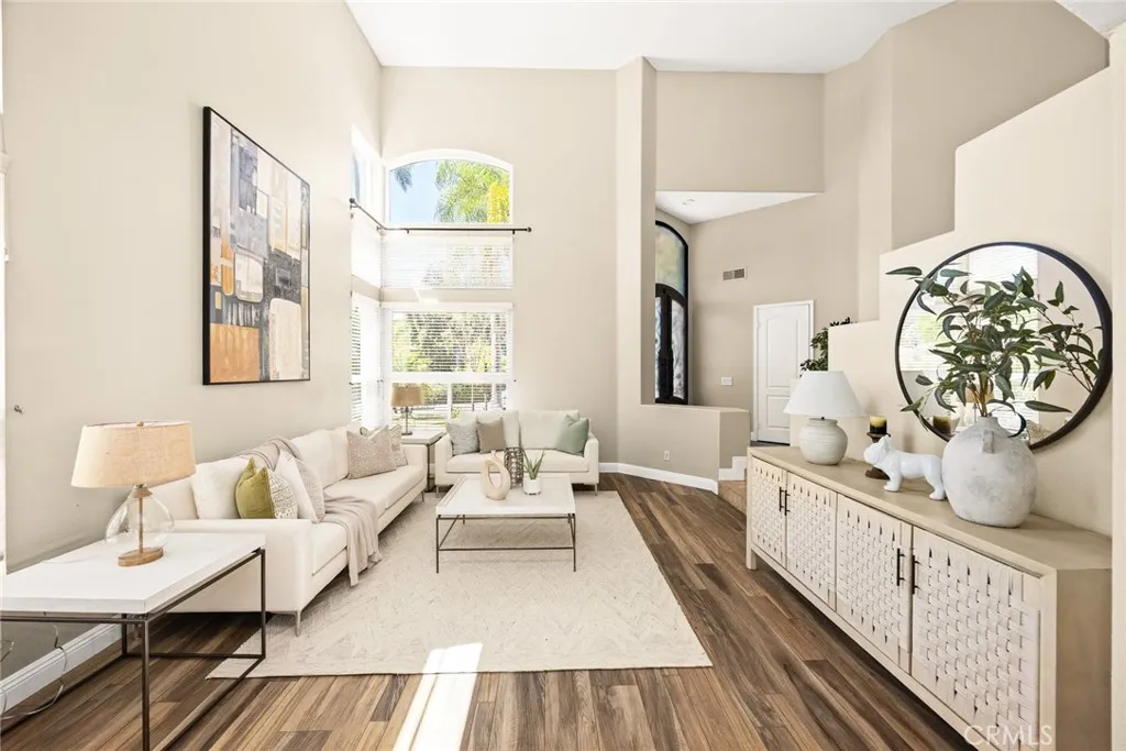 Nestled on one of Yorba Lindas most picturesque streets, this stunning 5-bedroom, 3.5-bath pool and spa residence offers the perfect blend of elegance, comfort, and resort-style living. From its exceptional curb appeal to the breathtaking backyard, every detail is designed to impress. Step through custom iron and natural wood double doors into a dramatic cathedral-ceiling living room, where soaring ceilings, rich wood flooring, and stone accents create a grand first impression. The formal dining room flows seamlessly to the outdoors, capturing serene views of the lush landscaping and sparkling pool. The gourmet kitchen is both stylish and functional, featuring granite countertops, a large center island, walk-in pantry, and expansive windows that flood the space with natural light while framing tranquil views of cascading waterfalls. Open to the kitchen, the inviting family room offers a cozy gas fireplace, custom French doors, and direct access to the backyardperfect for effortless indoor-outdoor living. A highly desirable main-level ensuite bedroom, along with a guest powder room, provides ideal flexibility for guests or multi-generational living. Upstairs, the luxurious primary suite serves as a private retreat, complete with a balcony overlooking the resort-style backyard, a dual-sided fireplace shared with a sitting area, two walk-in closets, and a spa-inspired bath featuring a jetted tub, separate shower, and dual vanities. Additional bedrooms include two connected by a Jack-and-Jill bathroom, plus another bedroom and full bath. The backyard is a true showpiecea tropic