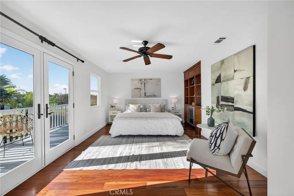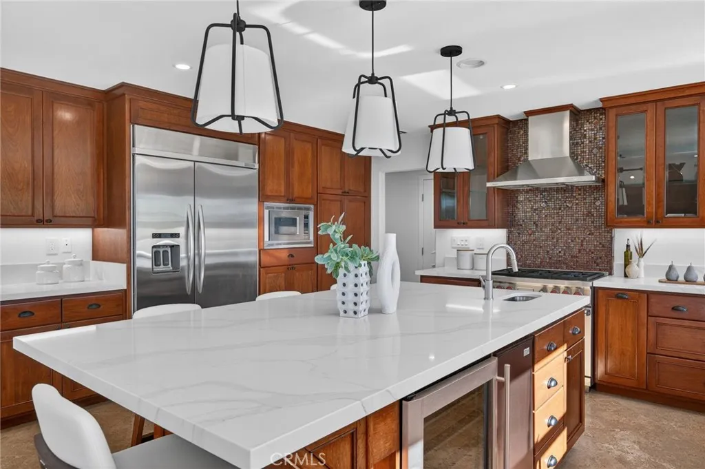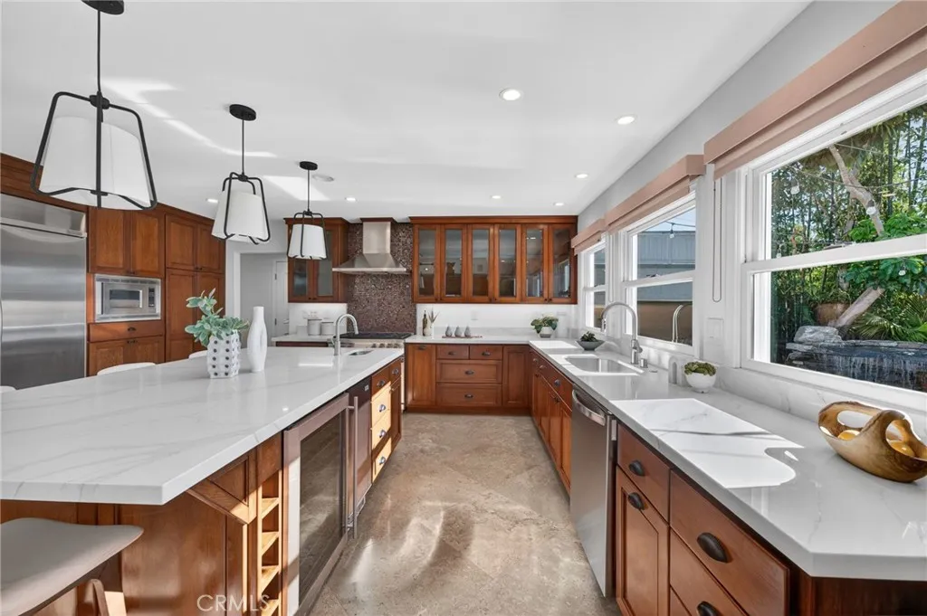 Located in the highly sought-after Cal Classic neighborhood, this stunning coastal residence offers exceptional curb appeal and embodies the best of Southern California coastal living. With a large double driveway, manicured front yard, and mature palm trees, the home makes an immediate impression. Beautifully updated and truly turnkey, this is a gorgeous entertainers home designed for both comfort and style. Inside, youll find fresh interior and exterior paint, hardwood flooring, and a thoughtfully designed layout featuring 3 spacious bedrooms and 2.5 bathrooms, along with air conditioning. The chefs kitchen showcases new quartz countertops, a large center island with bar seating, prep sink, ice maker, and beverage refrigerator. Appliances include a six-burner Wolf range, built-in refrigerator, microwave, and dishwasher, plus a pantry with pull-out drawers. The family room features vaulted ceilings and opens through expansive sliders to the backyard, creating seamless indoor-outdoor living. It includes a built-in entertainment center with custom shelving, a brand-new QLED TV, and a custom multi-head ceiling fan. Additional highlights include a formal living room with a gas fireplace and an elegant staircase with iron railing. The primary suite offers built-in shelving, a beverage refrigerator, and a spa-inspired bath with soaking tub, walk-in shower, and a large walk-in closet with custom organizers. French doors lead to a private deck overlooking the backyard. Two additional bedrooms include custom closet systems, and the secondary bath features custom tile and a tub. The