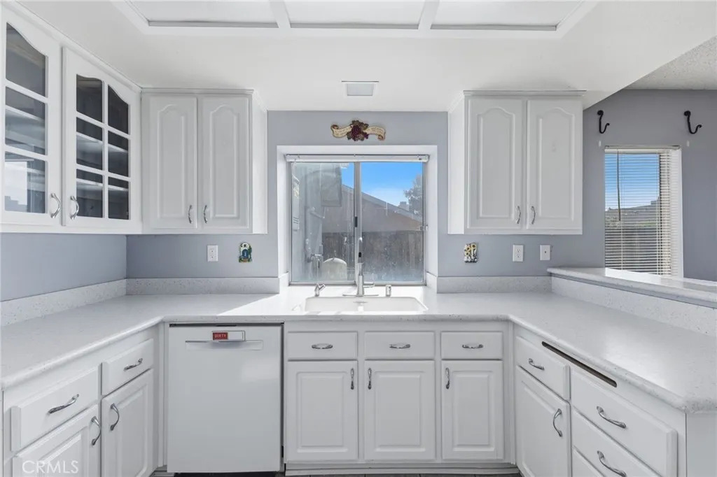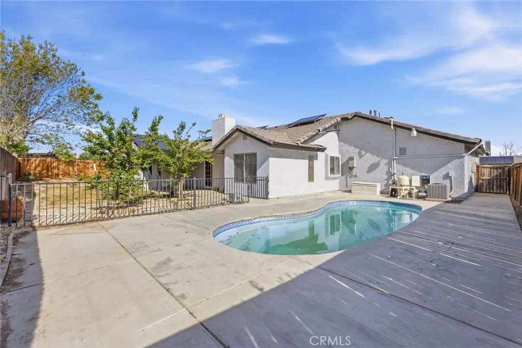 Nestled in the heart of a sought-after, established Victorville neighborhood, this light and bright single-story home offers 4 bedrooms with the potential for a 5th, 2.5 bathrooms, and approximately 1,720 square feet of comfortable living space. With great bones and a functional layout, this home presents an excellent opportunity for a light refresh to truly make it your own. Upon entry, youre welcomed by a large versatile space that can easily be converted into a 5th bedroom, home office, or flex room to suit your needs. Beautiful wood flooring flows throughout much of the home, adding warmth and character. The open family room features vaulted ceilings, a cozy fireplace, and flows seamlessly into the remodeled kitchencreating a bright, connected space perfect for everyday living and entertaining. The kitchen offers abundant cabinetry, generous storage, and a breakfast bar for casual dining. A formal dining area adds to the homes versatility. All bathrooms have been updated, offering fresh finishes and functionality. The primary suite features vaulted ceilings and includes a full bathroom, along with an adjoining second bedroom and additional half bathideal for use as an expanded primary retreat, private guest quarters, or multi-generational living setup with its own separate exterior entrance. Step outside backyard designed for enjoying the High Desert lifestyle, complete with a large covered patio and sparkling poolperfect for entertaining, relaxing, or cooling off on warm days. Additional highlights include a recently installed $9,000 EcoWater system for optimum health.
