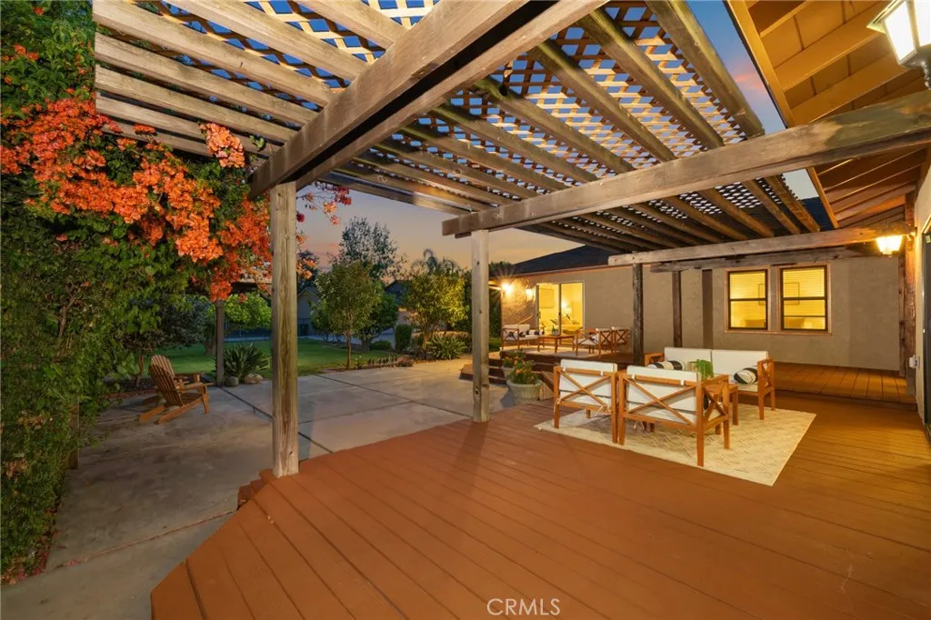 Gracefully set on a flat, rectangular 19,115 square foot lot in a highly desirable West of Santa Anita pocket of Arcadia, this extensively remodeled single-story residence offers a refined blend of modern upgrades, comfort, and everyday functionality. Featuring 3 bedrooms and 2 bathrooms, the home has been thoughtfully renovated throughout, including new PEX plumbing, all-new electrical wiring and panel, a new roof, all new windows, a completely redesigned kitchen, beautifully updated bathrooms, new flooring throughout, and a stunning new fireplace in the expansive family room. A charming covered front porch sets a warm and welcoming tone, leading into a spacious living room anchored by a classic fireplace and complemented by a ceiling fan. A separate formal dining room provides an elegant setting for gatherings, while the impressive family room, highlighted by high ceilings and a newly constructed fireplace, flows seamlessly into the kitchen, creating an open and inviting environment, ideal for entertaining. The remodeled kitchen is both stylish and highly functional, featuring bar seating at the main island, an additional side island, and a cozy breakfast nook. The primary suite is privately positioned and offers direct access to the backyard through a sliding glass door, along with an ensuite bathroom and generously sized closets. The grounds are truly exceptional, an expansive, park-like setting that feels both serene and private. The beautifully maintained lot showcases lush greenery and multiple mature fruit trees, creating a setting that is as functional as it is pic