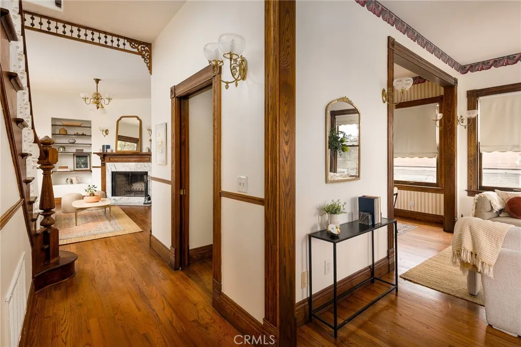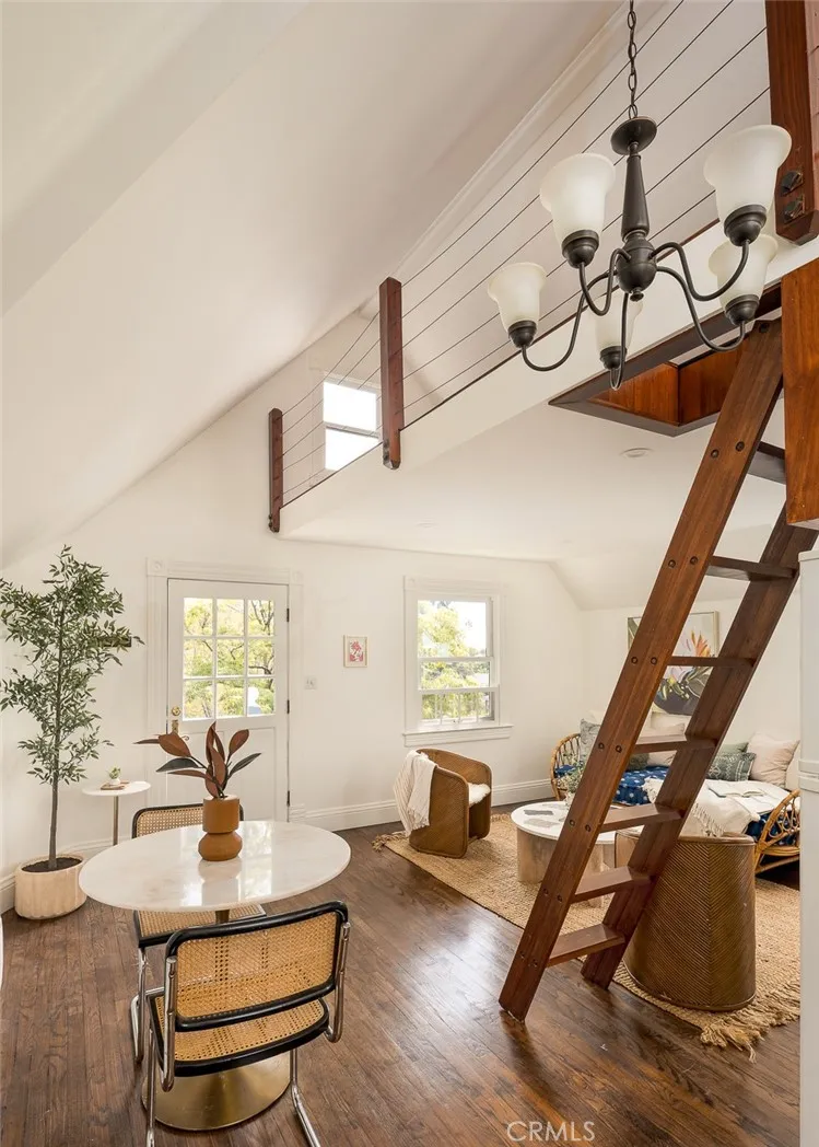 Built in 1994, this modern storybook Victorian is a rare expression of craftsmanship, scale, and enduring design. Built by the owner and meticulously maintained over the years, this character home reflects a true pride of ownership, now refreshed with new paint, new carpeting, and beautifully refinished hardwood floors. Spanning approximately 2,906 square feet across three levels, the main residence offers five bedrooms and three bathrooms, thoughtfully composed to balance openness with moments of privacy. A sense of character unfolds from the moment you enter, where large stained glass windows at the entry and rising along the staircase cast shifting light and color throughout. Rich hardwood floors anchor the living spaces, adding warmth and continuity to the homes architectural detail. A detached oversized, double-height two-car garage is crowned by a 660 square foot ADU with loft, offering flexibility for guests, extended living, or income potentialseamlessly integrated yet privately set apart. A 710 square foot finished basement, along with an adjacent storage/workshop space, further expands the homes overall footprint and functionality. The primary suite is a true retreatanchored by a fireplace, with a wall of windows framing DTLA views that can be enjoyed from the in-suite tub. A private veranda extends just beyond, offering a quiet, elevated outdoor escape. Outdoors, a charming backyard with mature grapevines invites relaxed gatherings and seasonal beauty, while the expansive front porch sets the tone for connection and everyday ease. Positioned on a quiet cul-de-sac