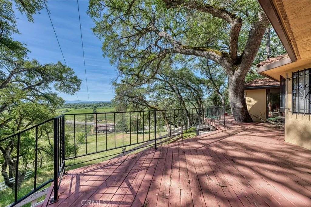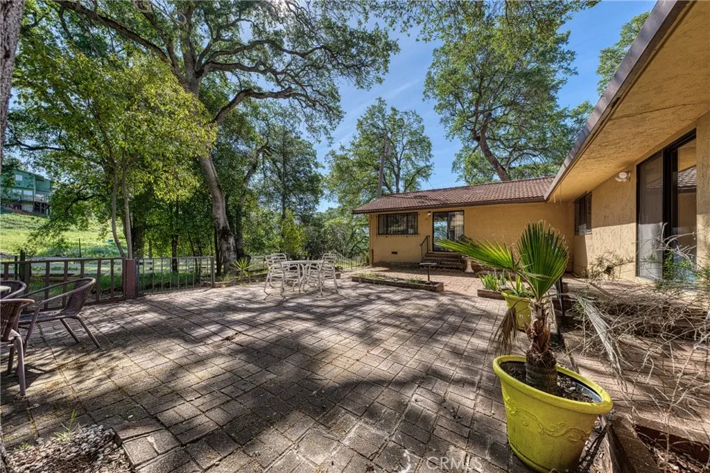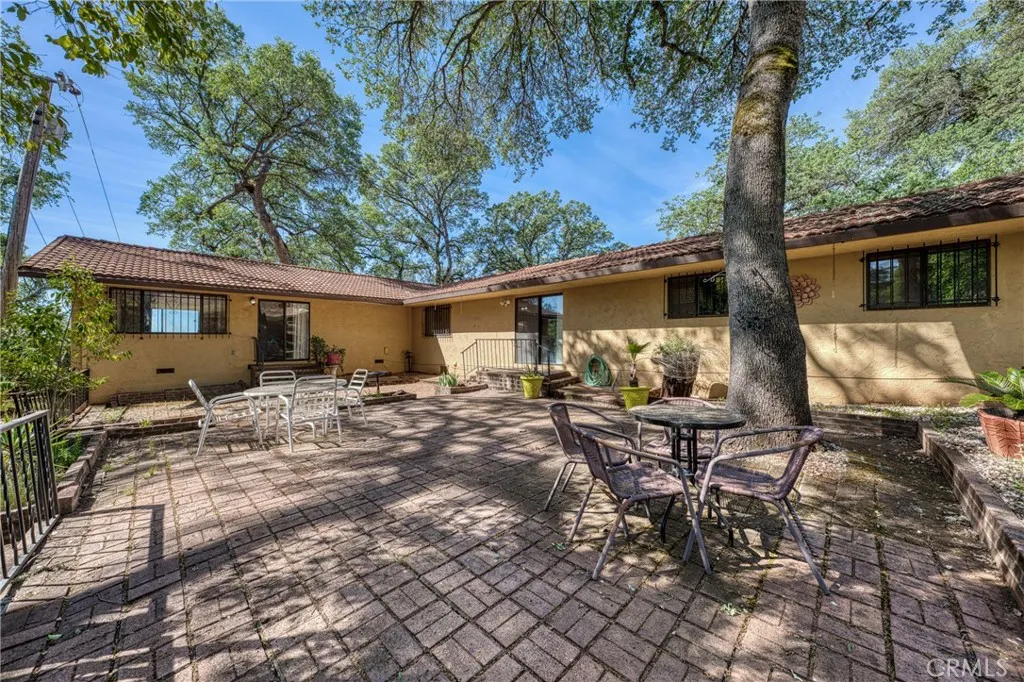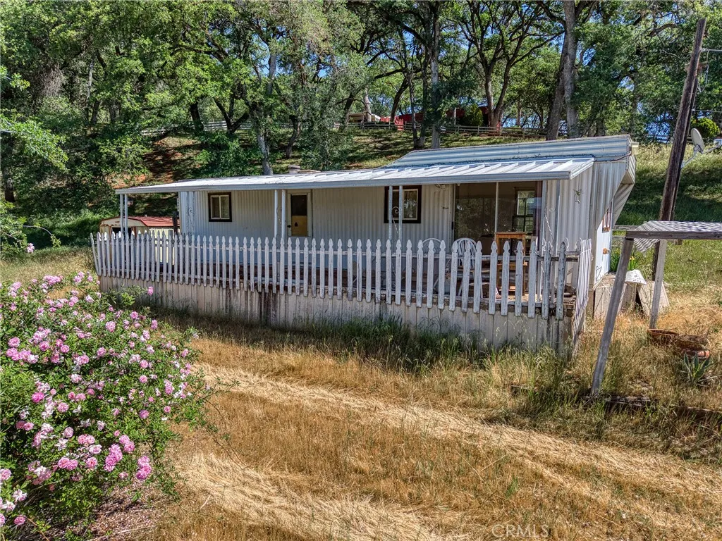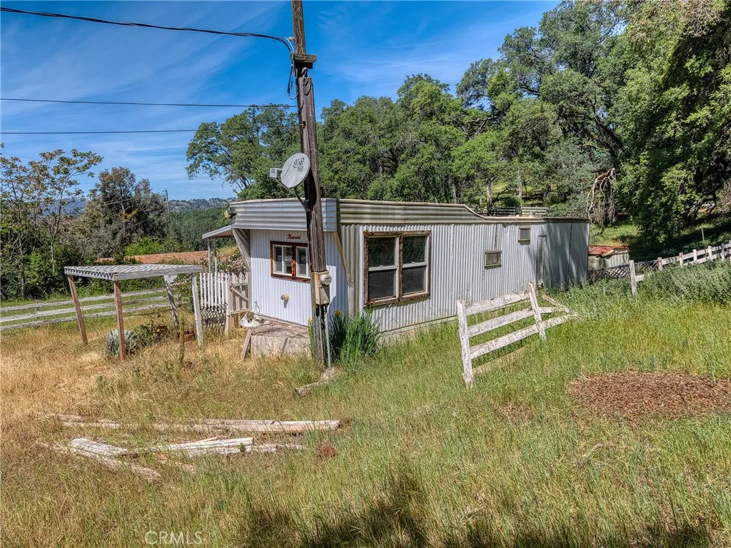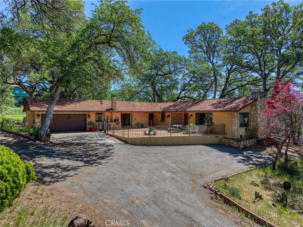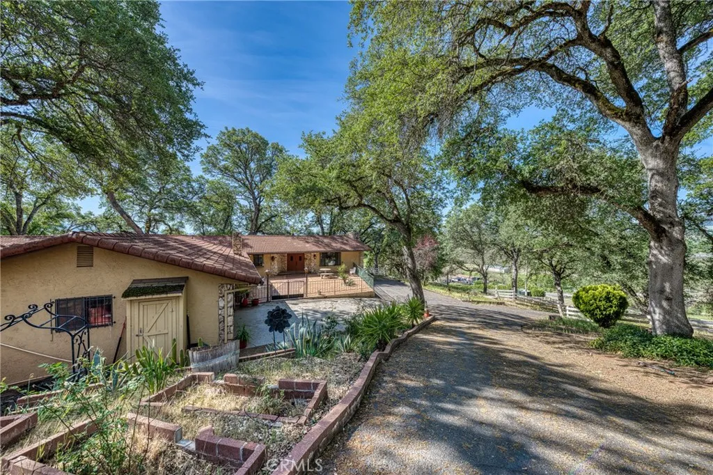 Escape to your own private oasis nestled on over five acres of scenic, fenced and cross-fenced land. This unique Spanish-inspired home welcomes you through an electric solar gate and along a lovely paved driveway, leading to a peaceful retreat designed for comfort, creativity, and country living. The property offers an impressive array of amenities, including a large barn/shop, multiple storage sheds, a travel trailer for storage, and a single-wide home ready for renovation or guest use (does need work). The beautifully landscaped yard enjoys ample shade from mature trees and features both a tiled, fenced front patio and an expansive wood deck and brick patio in the backperfect for relaxing or entertaining. Step inside to discover warm custom woodwork, wood-laminate flooring, and abundant natural light. The inviting living room showcases a built-in fireplace, kerosene monitor heater, ceiling fan, and elegant wood beams. The spacious kitchen is a cooks delight with a central island featuring an electric glass cooktop and indoor griddle, tiled countertops and flooring, a pantry, dual sink, oven, microwave, and generous cabinet space. The adjoining dining area offers easy access to the back deck through sliding glass doors. A versatile laundry/bar room includes a closet, sink, baseboard heater, and sliding door to the patioideal for use as a fourth bedroom, guest suite, or hobby space. It also provides access to a convenient bath with a walk-in shower. Down the hall, a full guest bath and guest bedroom offer comfortable accommodations for family or visitors. The primary suite
