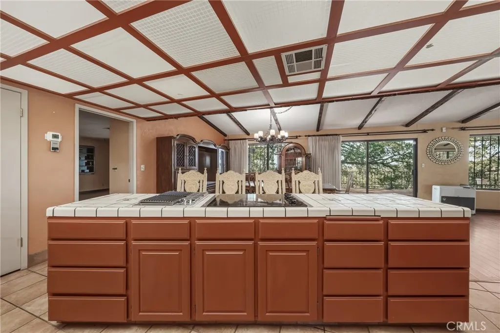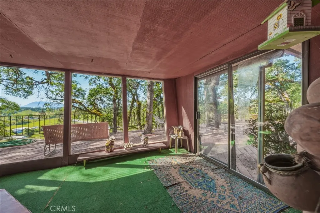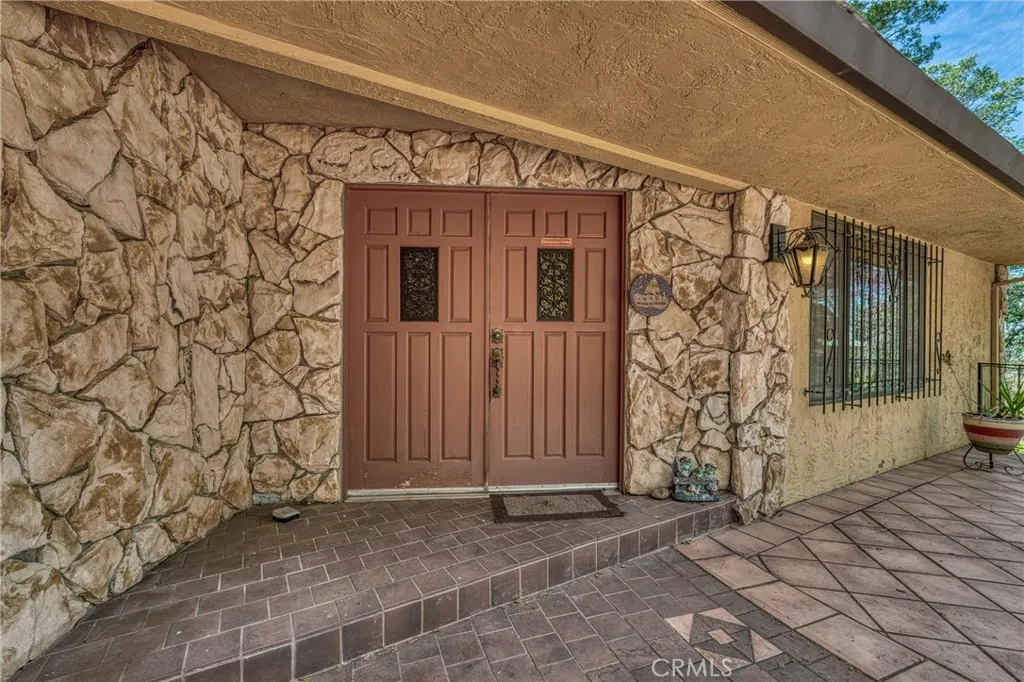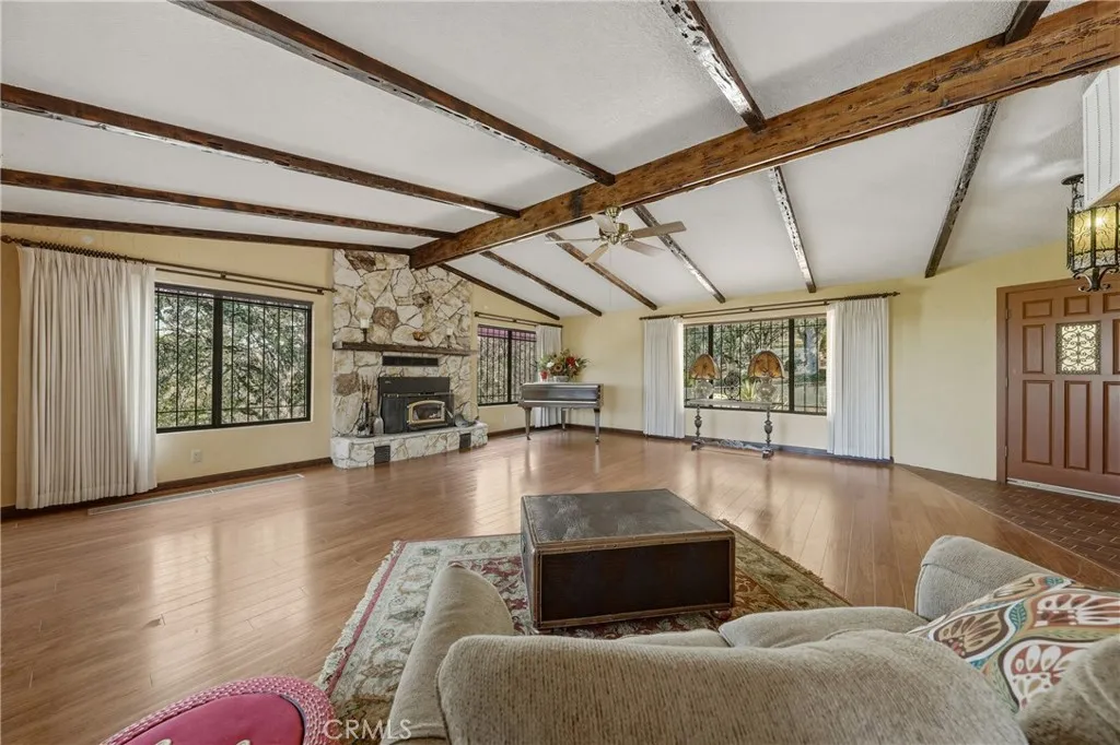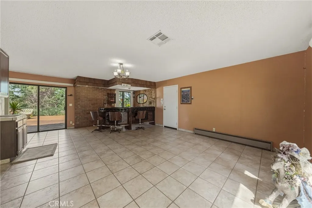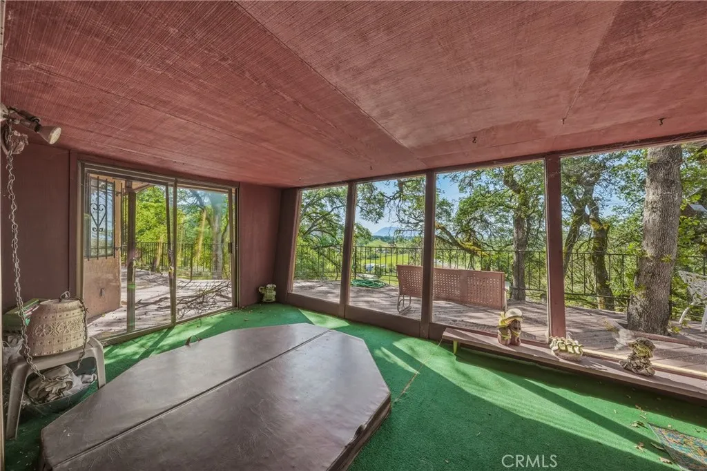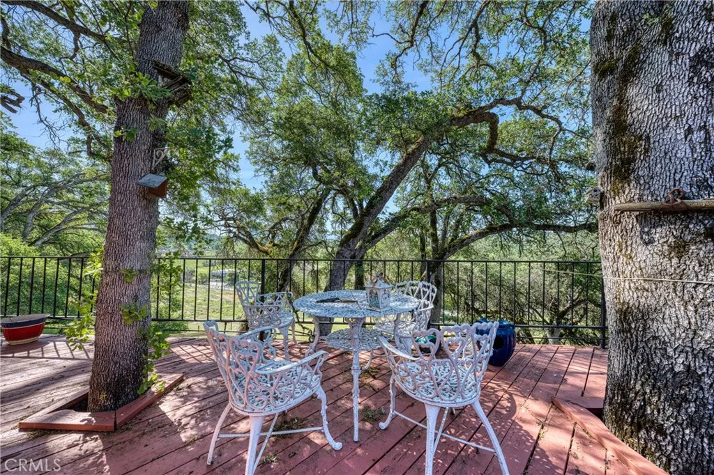 Escape to your own private oasis nestled on over five acres of scenic, fenced and cross-fenced land. This unique Spanish-inspired home welcomes you through an electric solar gate and along a lovely paved driveway, leading to a peaceful retreat designed for comfort, creativity, and country living. The property offers an impressive array of amenities, including a large barn/shop, multiple storage sheds, a travel trailer for storage, and a single-wide home ready for renovation or guest use (does need work). The beautifully landscaped yard enjoys ample shade from mature trees and features both a tiled, fenced front patio and an expansive wood deck and brick patio in the backperfect for relaxing or entertaining. Step inside to discover warm custom woodwork, wood-laminate flooring, and abundant natural light. The inviting living room showcases a built-in fireplace, kerosene monitor heater, ceiling fan, and elegant wood beams. The spacious kitchen is a cooks delight with a central island featuring an electric glass cooktop and indoor griddle, tiled countertops and flooring, a pantry, dual sink, oven, microwave, and generous cabinet space. The adjoining dining area offers easy access to the back deck through sliding glass doors. A versatile laundry/bar room includes a closet, sink, baseboard heater, and sliding door to the patioideal for use as a fourth bedroom, guest suite, or hobby space. It also provides access to a convenient bath with a walk-in shower. Down the hall, a full guest bath and guest bedroom offer comfortable accommodations for family or visitors. The primary suite
