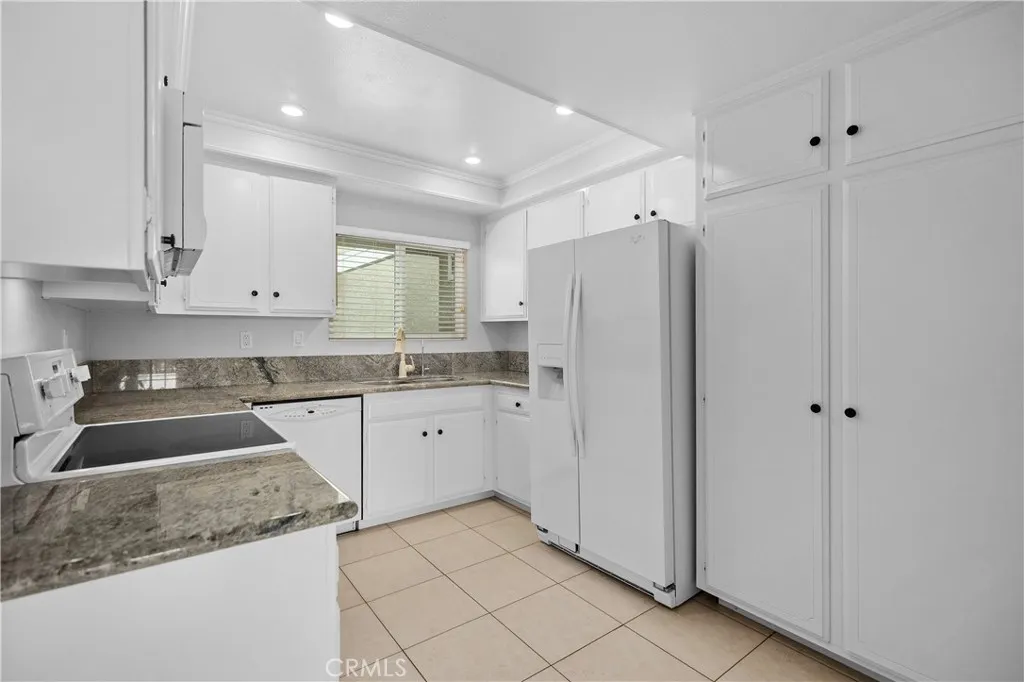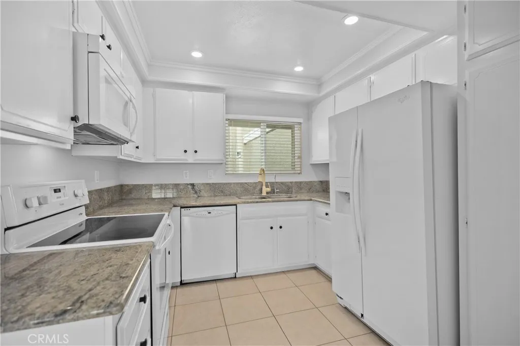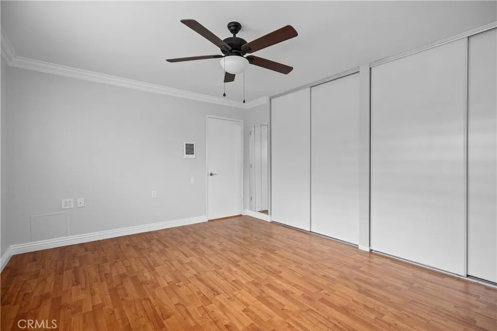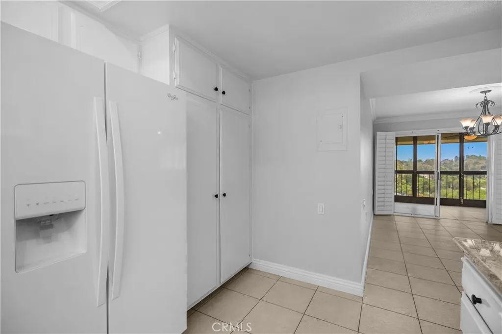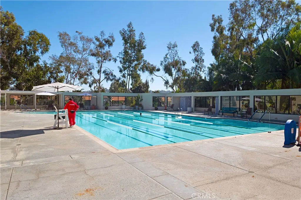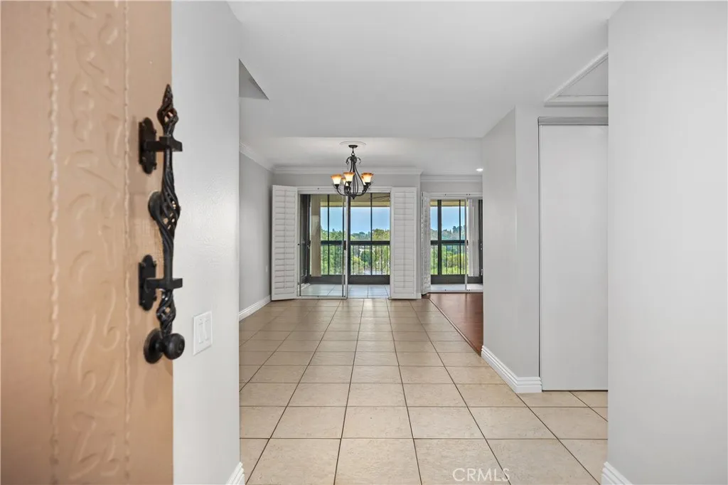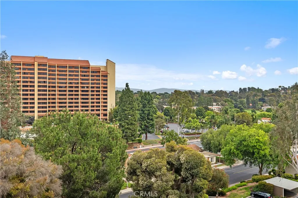 Bright and inviting top floor Villa Puerta one bedroom with a spacious glass enclosed balcony, stunning panoramic views, and easy access via elevator from the underground parking level. This 1 bedroom, 1 bath home has a spacious, open layout with a large living room and dining area, crown molding, updated lighting, vinyl windows with Plantation shutters and easy care flooring through the main living spaces. A custom closet has been added in the living room with access through a secret book shelf door, offering excellent extra storage. The kitchen is clean and functional with white cabinetry, granite countertops, and plenty of storage. Sliding doors open to the glass enclosed balcony, a great spot for morning coffee, reading, or simply enjoying the fresh air and distant views. The bedroom is generously sized with a ceiling fan and ample closet space. the bathroom features a walk in shower and updated vanity. There is also a louvered window in the shower. Underground parking and storage add everyday convenience. Laguna Woods Village is an Active Senior Community where the first occupant must be 55+, and a second occupant may be 45+. Enjoy resort style living with golf on the 27 hole championship course plus the 9 hole executive course, tennis and pickleball, fitness centers, multiple pools, an equestrian center, community gardens, art studio, world class woodshop, over 200 clubs, a free community bus, economical RV storage, guard gated security, and you are about 6 miles from Laguna Beach