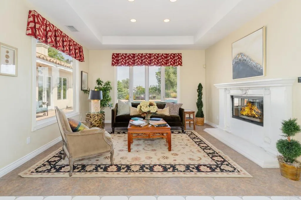 Tucked behind the gentle rolling hills of Fallbrook, this private equestrian estate with fabulous views and no HOA, invites you into a lifestyle defined by space, serenity, and understated luxury. Set on nearly 3.8 acres of usable land, the property offers a rare opportunity to live, entertain, and rideall from your own backyard. The 3,644 sq ft single story residence blends warmth and sophistication, with 4 bedrooms, 3.5 baths, dedicated office, formal living and dining room, gourmet kitchen and huge great room all designed for effortless living. This home is perfectly climate-controlled for year-round comfort with 4 fireplaces, newer HVAC system, whole house fan and incredible breezes. Sunlight pours through expansive windows, illuminating open-concept living spaces that flow seamlessly to the outdoors, where the views of the pastures, local hills, Palomar Mountain and Mount Baldy feel like a retreat. For equestrian enthusiasts, the Franciscan pipe four-stall barn anchors the property, with private turnouts, tack and feed room, plus space to possibly customize the property further with paddocks, or private training setup. A dedicated irrigation well supports the lush grounds, creating the ideal canvas for gardens, orchards, or your fully realized ranch vision. At the heart of the outdoor experience, a resort-style saltwater pool offers a tranquil escapeperfect for quiet mornings, sunset swims, or hosting unforgettable gatherings under the stars. A 3-bay garage provides ample space for vehicles, gear, and weekend adventure essentials, while the expansive acreage ensures bo