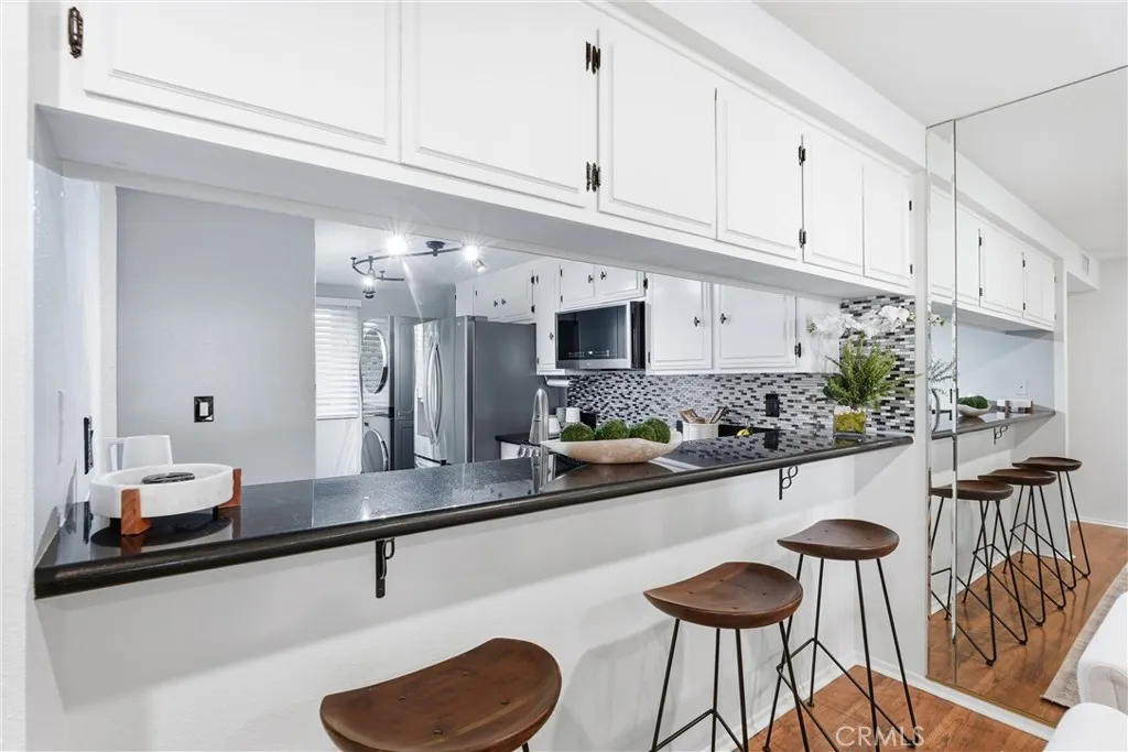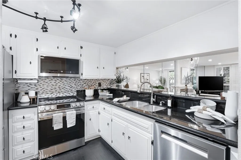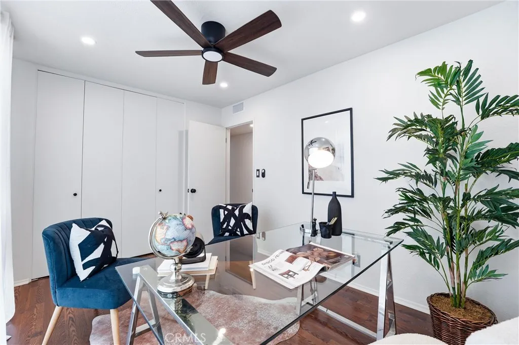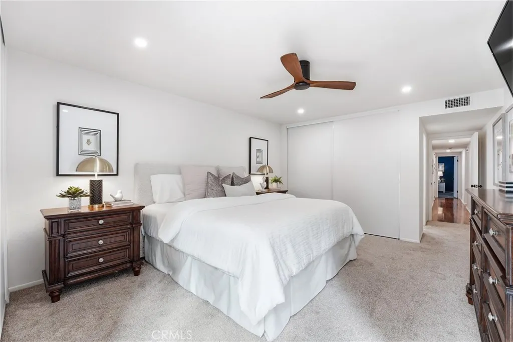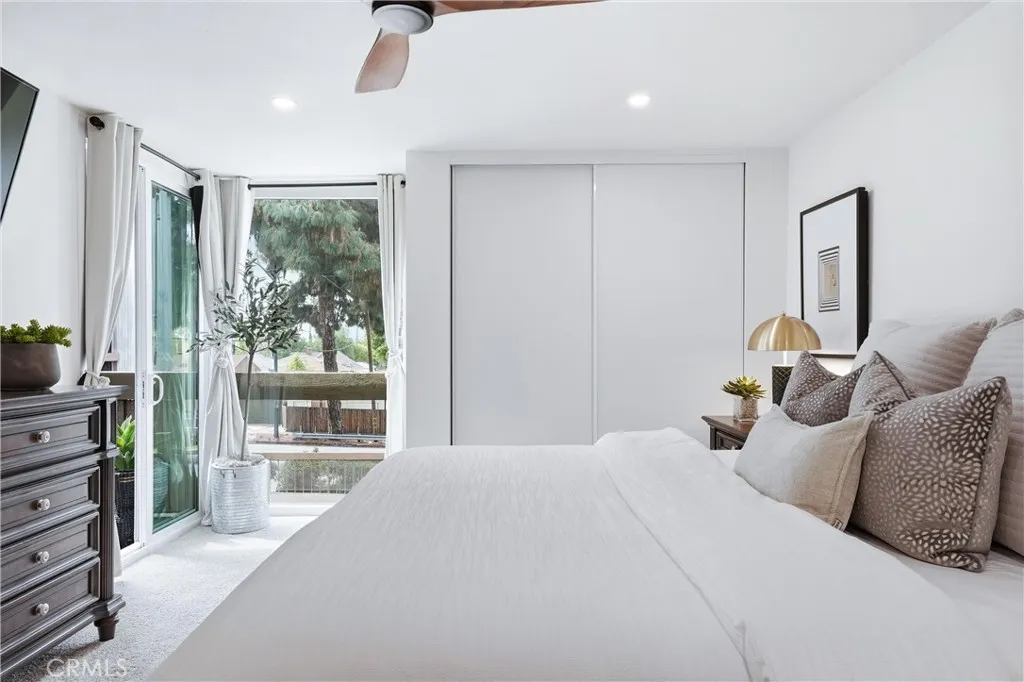 Come experience the charm and lifestyle of Whittier in this rare, turnkey single level end unit condo, situated on a historic tree lined street. Offering 1,364 sq. ft. this beautifully upgraded 3bed 2bath condo blends comfort, style, and convenience in one of Whittiers most sought after locations just minutes from Whittier College with easy access to the 605, 5, 10, & 60 freeways. Step inside to an open and inviting floor plan filled with natural light and thoughtfully curated upgrades throughout. The living and dining areas has laminate flooring, cozy fireplace, plantation shutters, new tinted dual-pane sliding doors. Freshly painted with all new dimmable LED Halo recessed lighting, new receptacles new light switches, custom light fixtures and new ceiling fans for a modern, polished feel. The updated kitchen has new granite countertops, abundant cabinetry, hardware, stainless steel appliances, Bosch dishwasher, LG electric range w/built-in air fryer, conventional oven, new garbage disposal, and LG stackable washer/dryer. The spacious primary suite has floor-to-ceiling tinted dual-pane windows, direct access to the balcony with new energy-efficient sliding door, dual closets, new carpet, recessed lighting & new ceiling fan. The primary bathroom has new plumbing, step-in shower, new tile floor & fixtures. Secondary bedrooms are generously sized with large new windows, recessed lighting, and ample closet space. The secondary full bathroom includes a tub, tile flooring, new light fixture and hardware. Additional improvements include, a new 18 SEER 3-ton heat pump HVAC system,