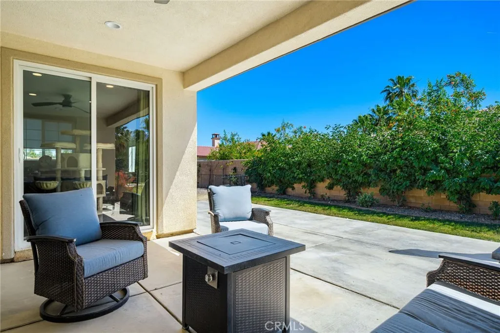 Experience elevated desert living in this beautifully upgraded Pomona plan, where modern ranch design meets a private La Quinta oasis. Situated on over a quarter-acre lot, this home offers exceptional space, privacy, and expansive side yardsperfect for entertaining, recreation, or future enhancements. At the heart of the home is a stunning, modern chef-inspired kitchen featuring an oversized center island, sleek quartz countertops, and a generous walk-in pantry. The open-concept design flows effortlessly into the expansive great room and dining area, creating an ideal setting for both everyday living and upscale entertaining. The primary suite is a true retreat, complete with a spa-like bath and two spacious walk-in closets. Three additional bedrooms, along with a private office, provide flexibility for guests, family, or a home office. Step outside to your own private sanctuaryan entertainers dreamhighlighted by a sparkling custom-shaped pool, a spacious covered patio, and beautifully curated desert landscaping that enhances both serenity and style. Located within a gated community, this home also features a three-car garage with a private side-entry bay, ideal for a golf cart, workshop, or additional storage. Adding even more value is the fully owned and paid-off solar system, delivering energy efficiency and long-term savings. This move-in-ready residence offers the perfect blend of luxury, functionality, and the quintessential La Quinta lifestyle.