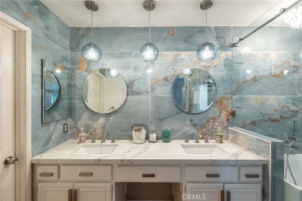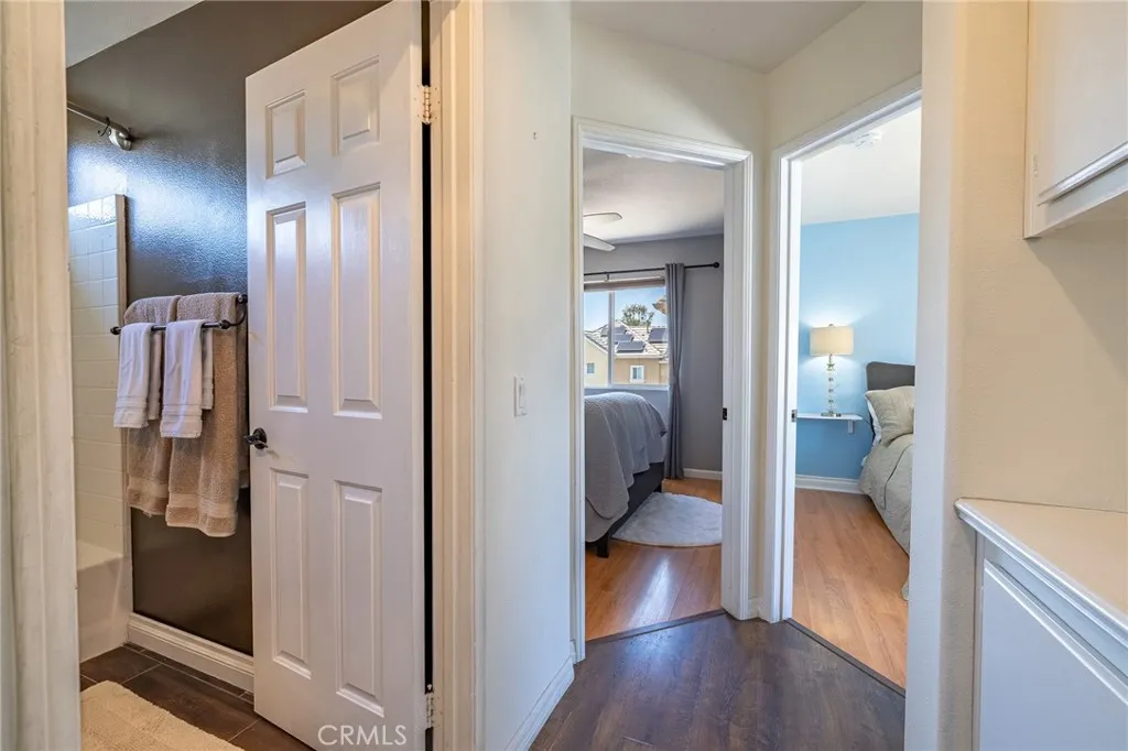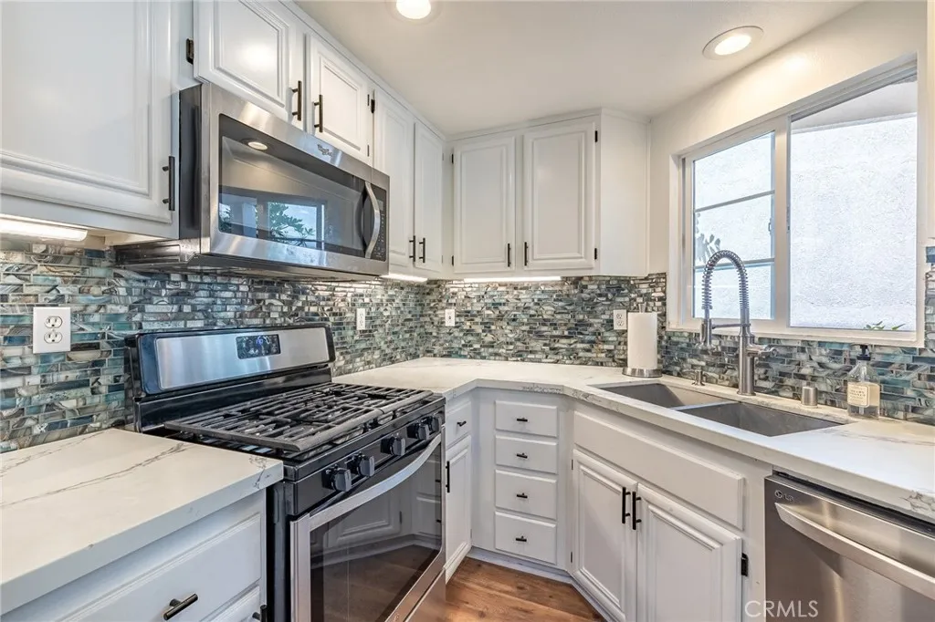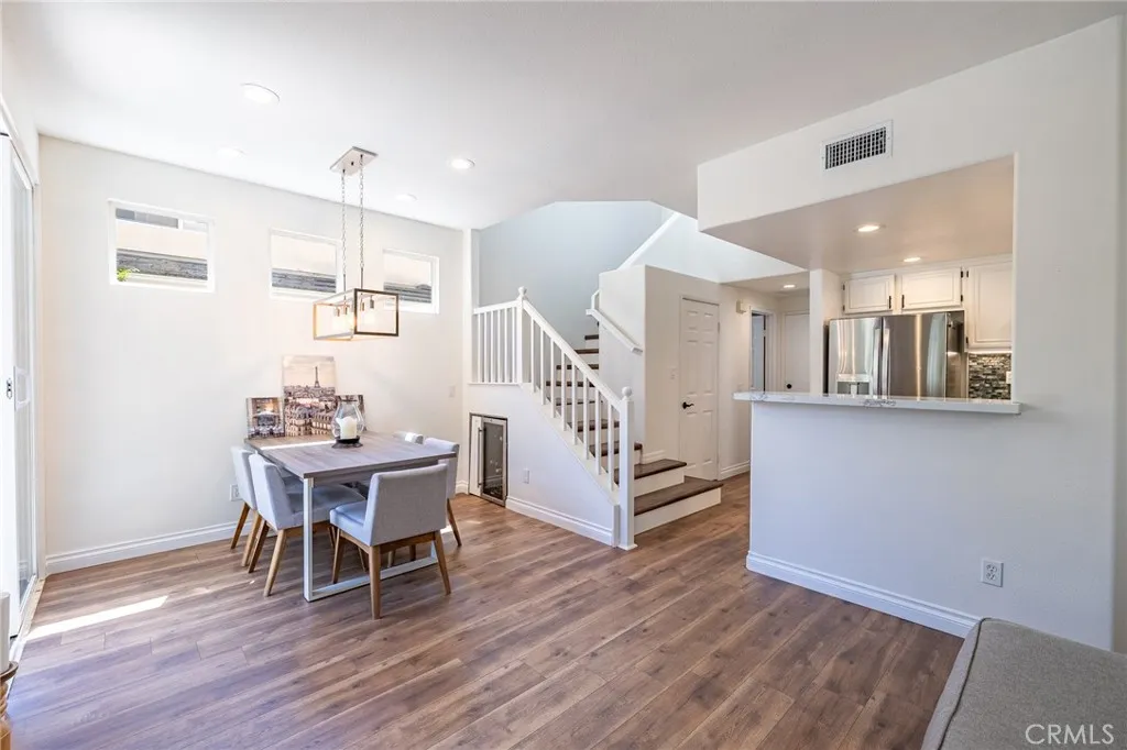 Fully upgraded, move-in ready, and set in a prime cul-de-sac locationthis is the one that checks all the boxes. Located within the Magnolia Lane tract of Las Flores, this detached 3 bedroom, 2.5 bath residence offers the privacy and feel of a single-family home with a functional layout and thoughtful upgrades throughout. The interior has been updated with luxury vinyl plank flooring, complemented by a custom hardwood staircase that adds warmth and continuity between levels. The main living areas offer a comfortable flow for both daily living and entertaining. The kitchen has been upgraded with quartz countertops, a farmhouse sink, rollout cabinetry, and a wine fridge, offering both functionality and a clean, modern design that connects comfortably with the surrounding living spaces. Upstairs, the primary suite features a fully remodeled en-suite bathroom designed with both style and functionality in mind, including a Japanese soaking tub, walk-in shower, dual vanity, towel warmer, and custom oceanic tilework, along with a walk-in closet. Additional improvements include a recent PEX repipe, newer water heater, and updated vinyl/wood fencing. The backyard is designed for entertaining and everyday enjoyment, featuring lush landscaping, a tranquil water feature, and built-in surround sound, creating a private and inviting outdoor setting. Located within the Las Flores community, residents enjoy access to both the Magnolia Lane pool and spa as well as the resort-style Las Flores community pool and spa. Community amenities also include parks, hiking trails, sports courts, pickleb