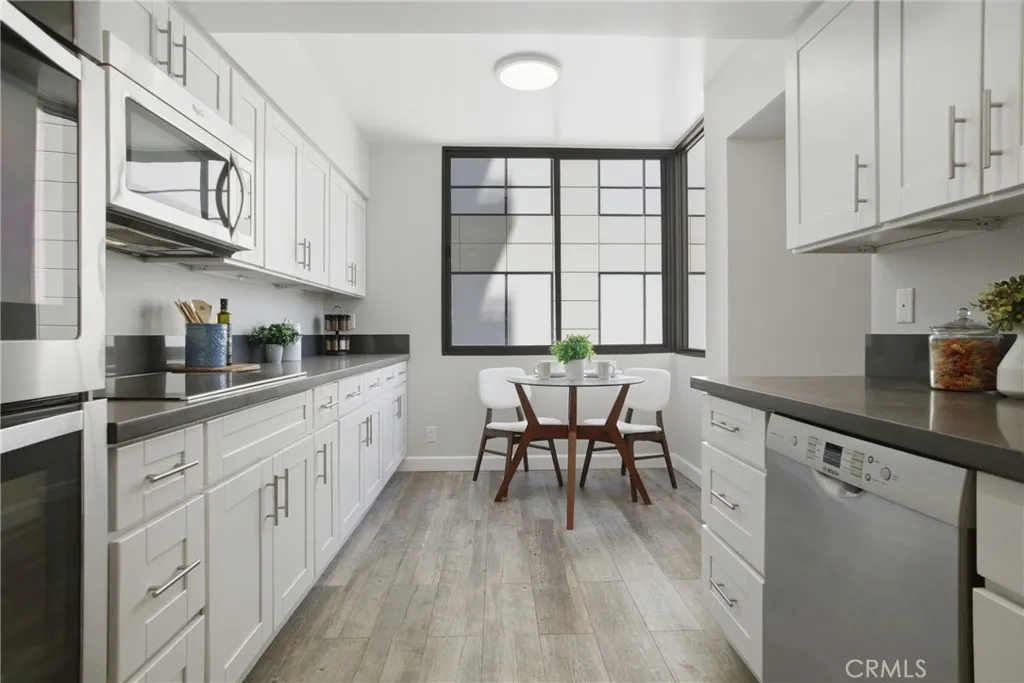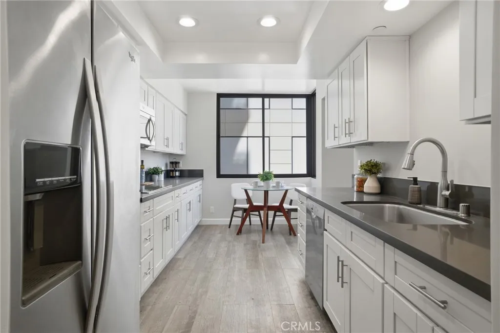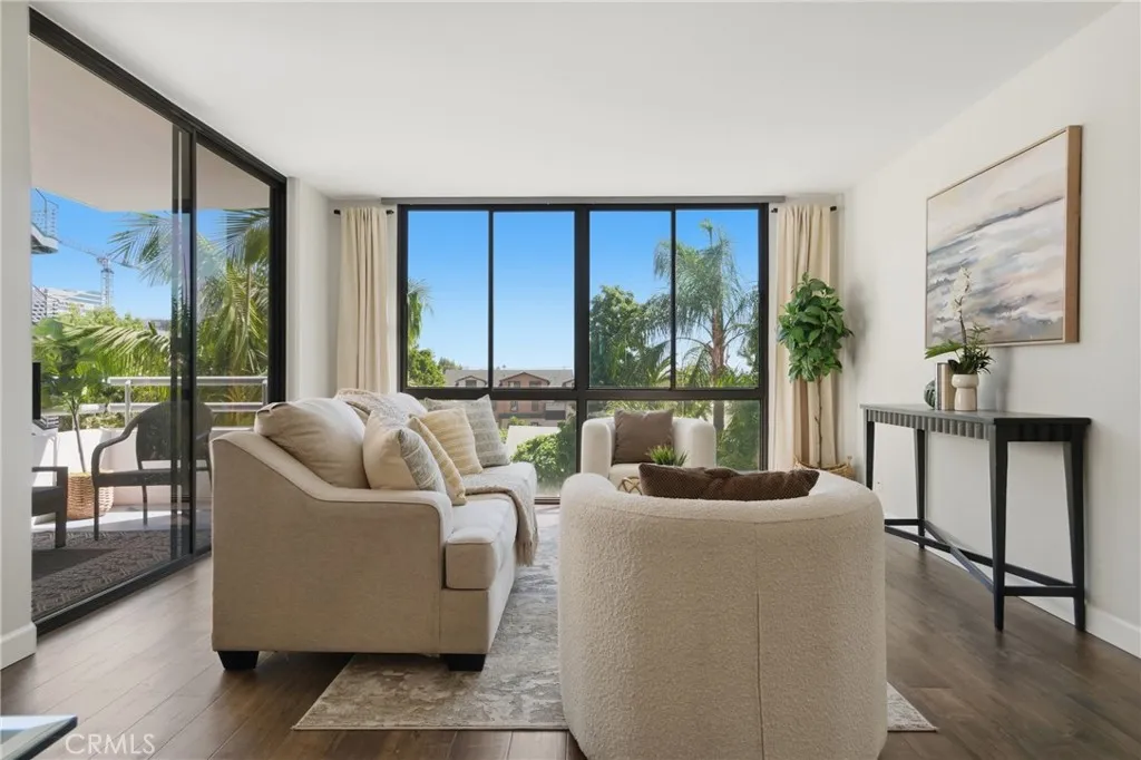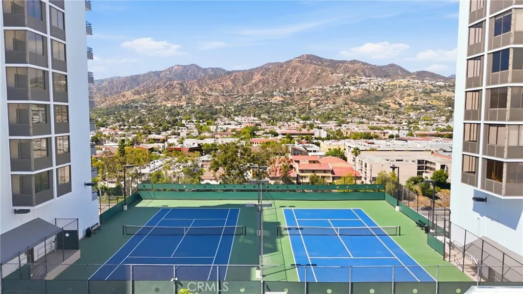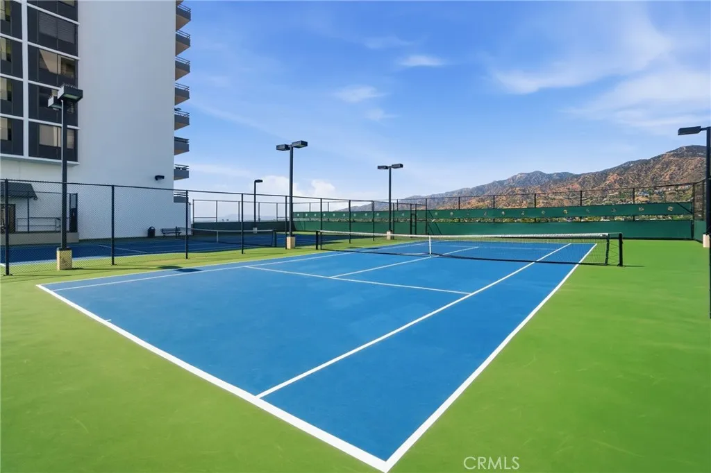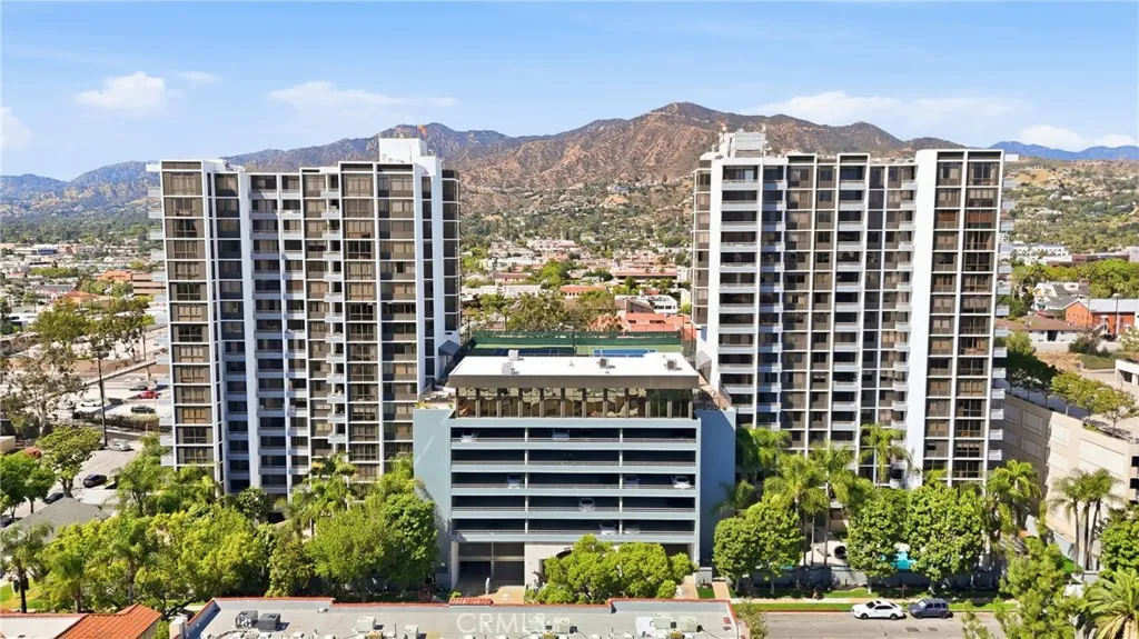 Welcome to this beautifully updated residence in the prestigious Pioneer Park Towers, one of Glendales premier full-service high-rise communities. This spacious 2-bedroom, 2-bathroom condo offers 1,443 square feet of thoughtfully designed living space, featuring a freshly painted interior and views enjoyed from floor-to-ceiling windows and a private balcony. The light-filled living and dining areas create an inviting space for everyday living and entertaining, complete with a stylish wet bar. The updated kitchen blends function and style with soft-close white shaker cabinetry, granite countertops, stainless steel appliances, a double oven, vent hood, microwave, and a cozy breakfast area. The generously sized primary suite features double-sided mirrored closets and an ensuite bathroom with a shower-tub combination. Both bathrooms are tastefully updated with white shaker cabinets and brushed nickel finishes, with one offering a large walk-in closet. Additional highlights include recessed lighting, laminate flooring throughout, an in-unit laundry closet, and a fire sprinkler system for added peace of mind. The unit includes two assigned parking spaces with access from the same floor as the unit, and a separate secured storage area. Pioneer Park Towers offers a true resort-style lifestyle with an impressive collection of amenities, including two heated swimming pools (one a heated lap pool), indoor and outdoor spas, redwood sundecks, rooftop tennis courts, a fully equipped fitness center with sauna, clubhouse and recreation spaces, BBQ areas, and beautifully landscaped grounds
