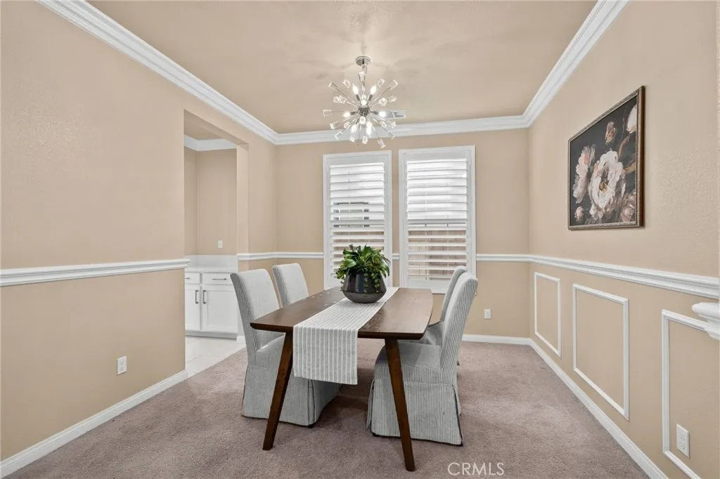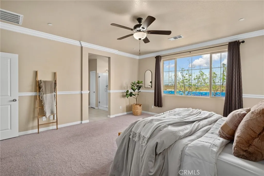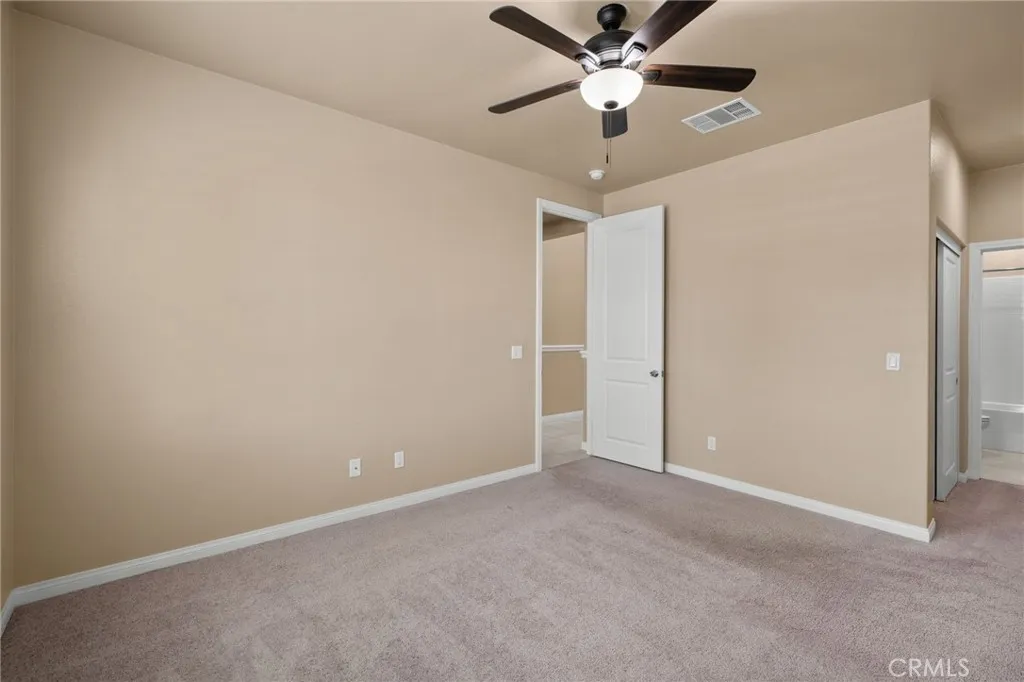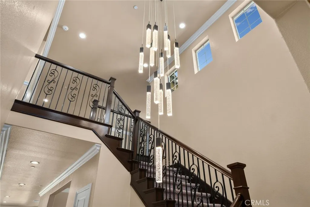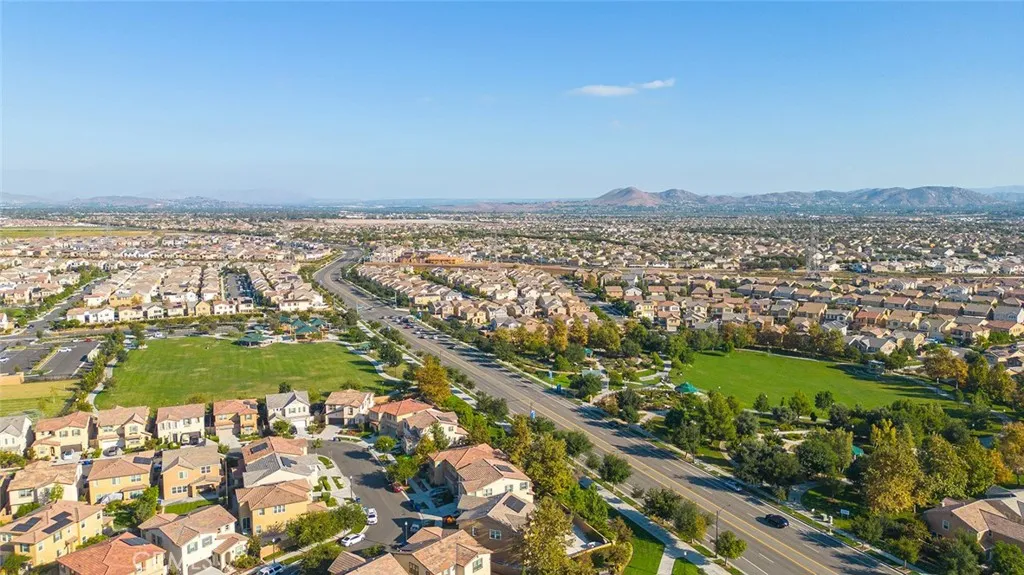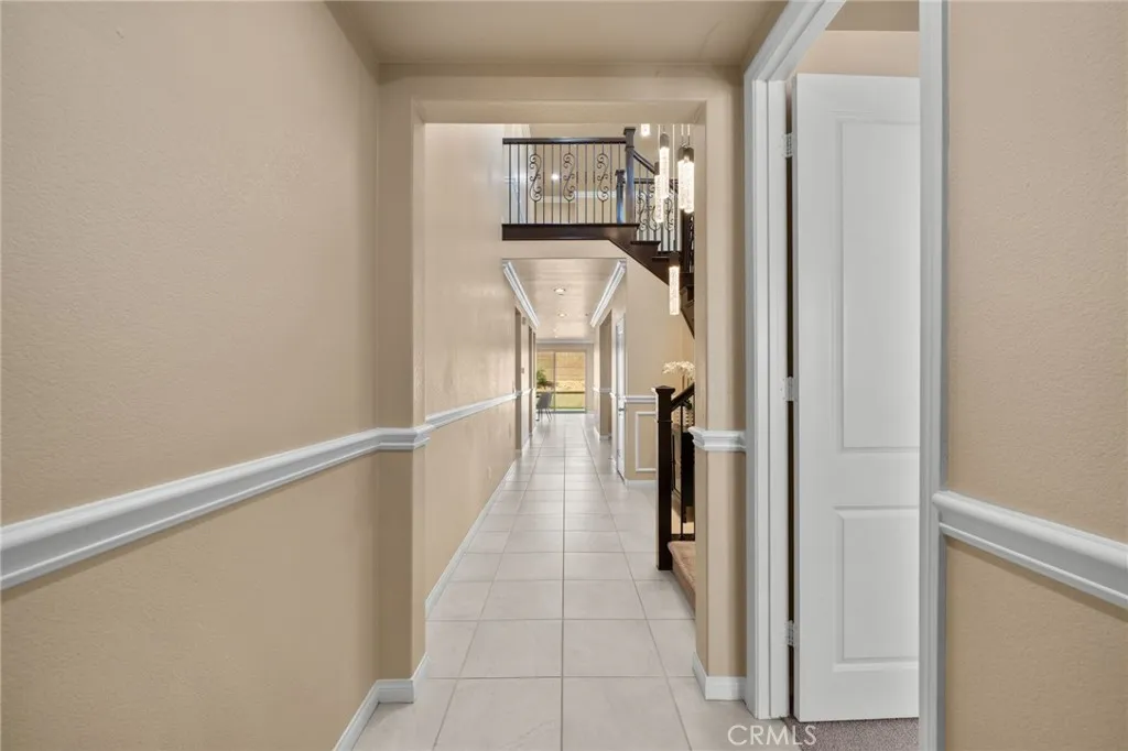 Welcome to this stunning, move-in ready home in the highly desirable Ontario Ranch community of Park Place! Built just six years ago, this beautifully maintained residence offers exceptional curb appeal with lush artificial turf, a charming paved walkway with accent lighting, and thoughtfully designed low-maintenance landscaping. Step inside to a grand entry featuring tile flooring, wrought iron stair railing, and a dramatic staircase illuminated by custom lighting. The first floor includes a private bedroom and its own ensuite bathroom, perfect for guests or multi-generational living. Designed for both everyday living and entertaining, the home features a formal dining room with a butlers pantry, a spacious walk-in pantry, and a convenient homework nook with two desks. The open-concept kitchen is a showstopper, complete with an island, quartz countertops, pendant lighting, recessed lighting, built-in cooktop, range hood, and a double oven. The kitchen flows seamlessly into a cozy breakfast nook and expansive family room with a large window and sliding glass doors leading to the backyard. Upstairs, youll find a versatile loft space and a generously sized primary suite with ceiling fan and gorgeous views. The primary bathroom offers dual sinks, a large walk-in shower, linen closet, and an oversized walk-in closet. Three additional upstairs bedrooms all feature walk-in closets, along with a convenient upstairs laundry room. Additional highlights include crown molding, ceilings fans and plantation shutters throughout, three-car tandem garage and a beautifully finished backyard