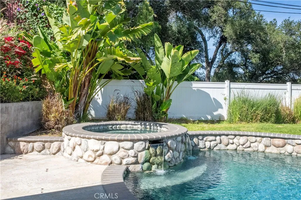 Dramatic curb appeal defines this Happy Valley single story pool home, featuring a winding rock lined driveway and staircase leading to a private setting tucked among the trees, all on a large lot with owned solar, no HOA, and no mello roos. Offering 2366 sq ft with 4 bedrooms and 3 full bathrooms, this home features an updated kitchen, remodeled bathrooms, fresh interior paint, and new carpet. The backyard is designed for everyday enjoyment with a pool, spa, grassy area, pergola, and mountain views in the distance. Inside, the home offers maple engineered wood flooring, custom moulding, two fireplaces, and an updated kitchen with a center island, granite countertops, and stainless steel appliances that opens to the main living areas. The primary suite includes French doors to the backyard, a soaking tub, dual sinks, a walk in shower with seamless glass, and a large walk in closet with organizers. One bathroom was just remodeled with a new tub and surround, new counters and sink, new toilet, and new flooring. The additional hallway bathroom was renovated approximately 5 years ago with a walk in shower, updated sink and flooring, and offers convenient access near the pool. Additional upgrades include dual pane windows and glass doors in bedrooms, bathrooms, and family room, copper plumbing, upgraded electrical panel, improved insulation for efficiency, LED lighting, new light fixtures, and recently completed exterior paint. Practical features include an indoor laundry room with storage, hallway linen storage, an attached 2 car garage, a large side yard, and a clear termite r