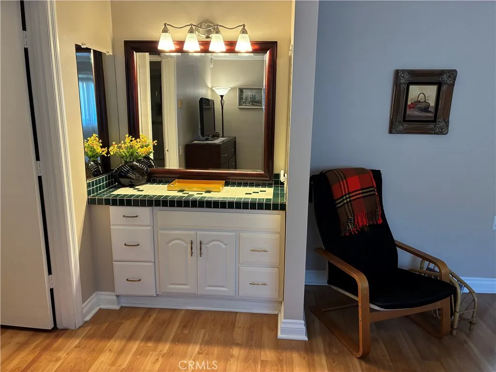 Welcome home to rarely available TOP FLOOR "CASA DORADO" floorplan! VERY SPACIOUS, 988 square feet 1 bedroom, 1 bath with a VERY LARGE BALCONY for year round entertaining. Perched on a hill top in a serene, park-like cul-de-sac, located just 1 block to CLUBHOUSE 5 and short walk to CLUBHOUSE 6. Home has been remodeled over the years featuring many upgrades throughout, including dual pane windows, laminate floors, crown and base moldings, smooth ceilings, neutral paint and more. Unit has an extra long living room with office space and a total of 3 closets, including a walk-in closet in the bedroom. Elevator and laundry room are just steps away. Assigned parking in a subterranean parking garage has several storage cabinets. There is a large recreation room in the garage area for the use of all the building residents and family gatherings. Laguna Woods Village is a fantastic gated golf community. Amenities include swimming pools, tennis courts, 27 hole championship golf course, garden centers, equestrian center, tons of classes: dancing, yoga, exercising, woodworking, painting, jewelry making, ceramics, sewing, table tennis, too much to list! Free bus service is provided to local shops, banks, restaurants, medical facilities, and houses of worship. Adult retirement (55+) at it's best and located just minutes from Laguna Beach and the Pacific Ocean!