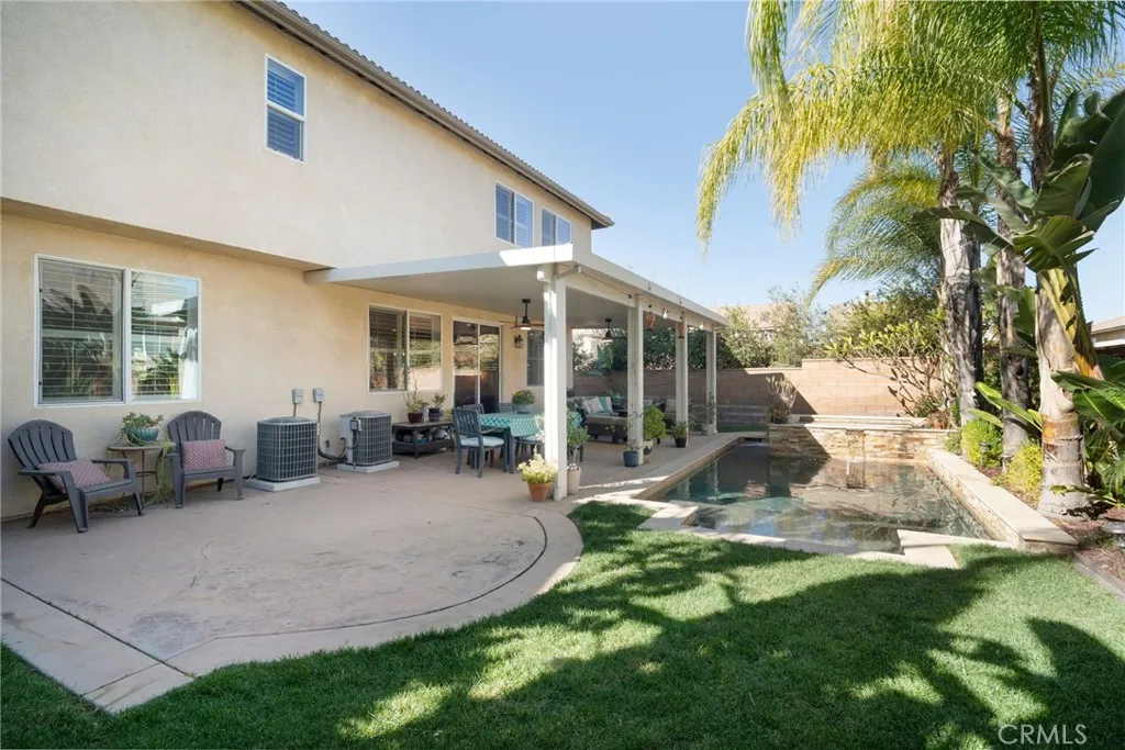 Imagine yourself living in this immaculate, model-like home priced below market in highly desirable Sycamore Creek, a master planned community, with its highly rated schools, parks, and trails. Come home to your corner lot, attractively landscaped house, while soaking in the ridgetop hillside views, then pulling into your 3-car tandem garage, with lots of overhead storage racks. Take a short walk to the nearby park, or perhaps take a dip in your gorgeous backyard PebbleTec pool and spa, while enjoying the lush landscaping of your own private oasis. Come inside and relax in your comfortable family room with a gas insert fireplace and stained-glass ceiling fan. Prepare dinner in your open floor plan kitchen, featuring KitchenAid appliances, a walk-in pantry, additional butler pantry, granite countertops, and breakfast bar. Then enjoy your attractive living/dining room, with wainscoting, crown molding, and recessed lighting. The entire house features wood plantation shutters, and custom paint inside. There is beautiful wood laminate flooring throughout the downstairs, and partially upstairs. Retreat upstairs to your 4 bedrooms, plus an office/media room that offers you a 5th bedroom option, all with ceiling fans. Your primary bedroom features two huge walk-in closets, dual sinks, and a jetted tub. The secondary bedroom has its own private bath, and walk-in closet. Also included upstairs is a large laundry room and linen closet. The home also includes dual zone AC, and automatic sprinklers. The community of Sycamore Creek features a clubhouse with two additional pools, exerci