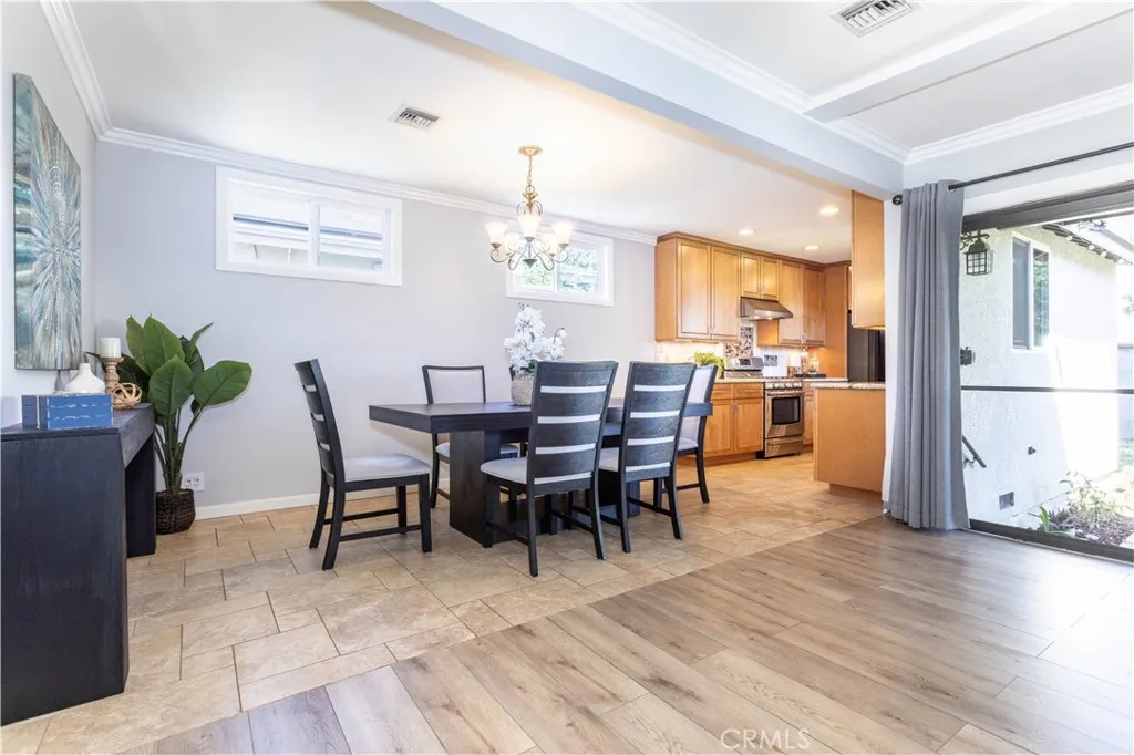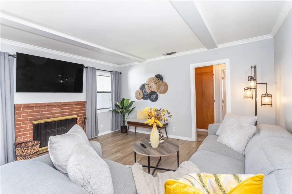 Welcome to a home where classic character meets contemporary refinement. This 3-bedroom, 2-bathroom residence offers 1,310 sqft of thoughtfully updated living space situated on a quaint lot. This home has been tastefully refined to provide a truly turn-key experience for the modern homeowner. Step into the refreshed living room, where exposed beams, added crown molding, and a striking red brick fireplace combine with a neutral, modern color palette for a warm yet airy ambiance. New vinyl flooring enhances the space, offering both durability and style. The updated galley kitchen features granite countertops, recessed lighting, and a convenient laundry area at the far end. With its sleek finishes and functional layout, this kitchen is ready for both everyday living and entertaining. The open concept flows easily to the outdoors, where a charming backyard awaits. Enjoy the ample greenery, including a beautiful mature tree, and a lawn with a chicken coup, a perfect setting for relaxation or gatherings. Additional highlights include an updated electrical panel and a 2-car garage. Every detail, from the thoughtful finishes to the serene color palette, has been curated to provide a modern, fresh living experience. Close to the lively NoHo West Shopping Center, youll enjoy instant access to Trader Joes, LA Fitness, cinemas, Starbucks, and an array of dining options. Also positioned for your ultimate convenience, this home is located just moments from the Burbank Empire Center and the neighborhood Target, making daily errands a breeze. Commuters will appreciate the easy access to ma