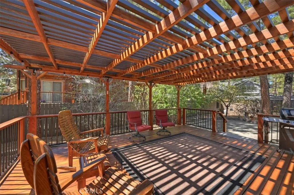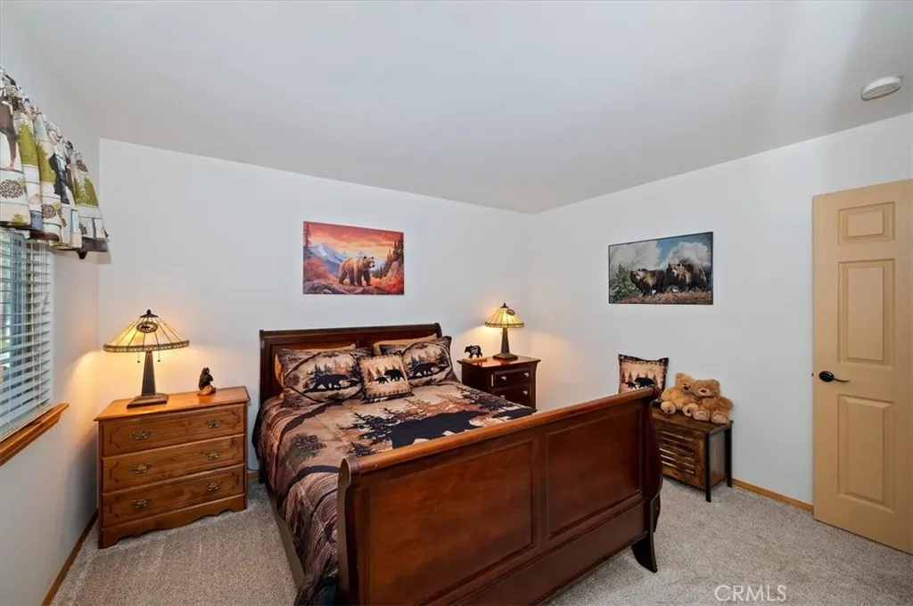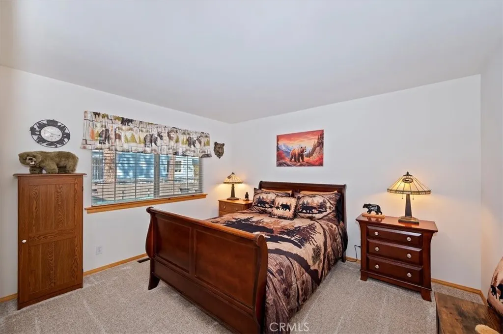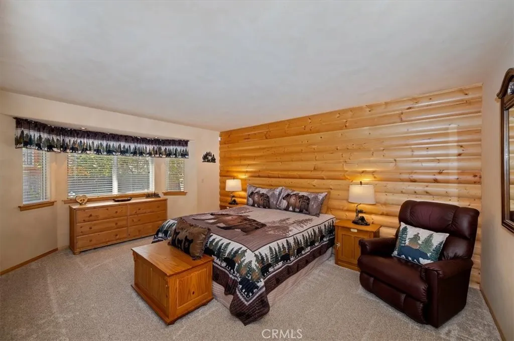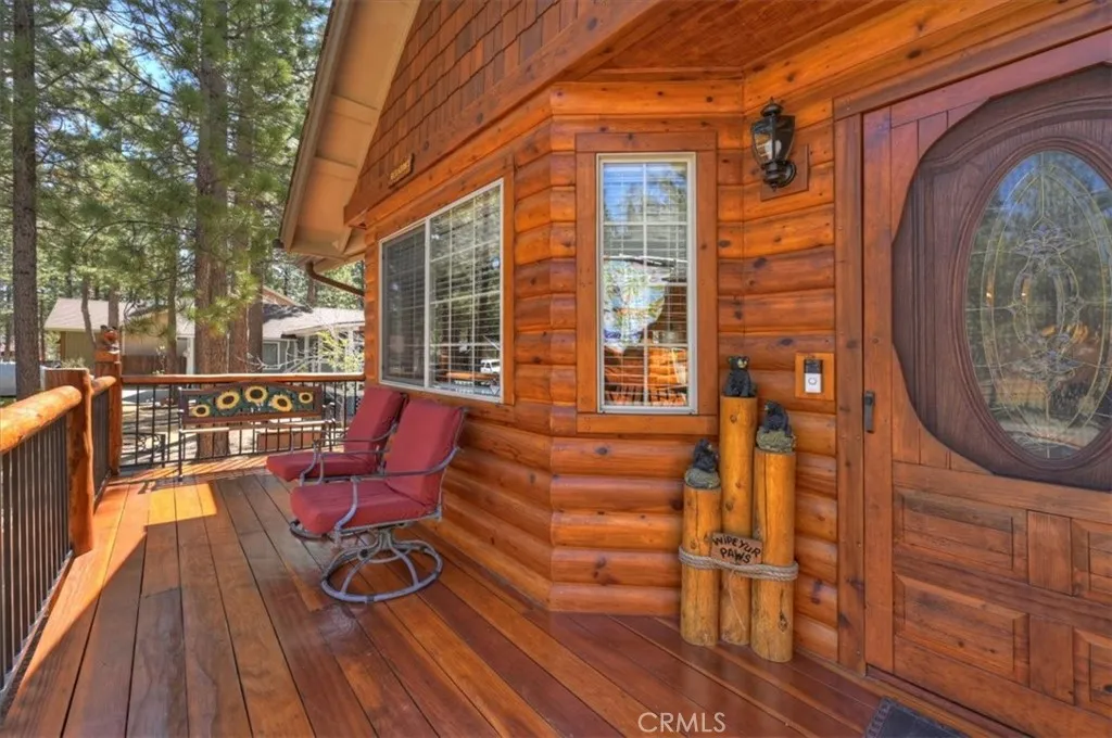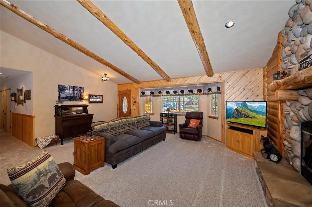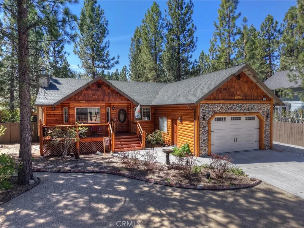 Experience the peace and serenity of mountain living in this turnkey Big Bear retreat! Located in the highly desirable Forest Springs neighborhood, this log-cabin inspired home has been meticulously maintained and lovingly cared for since its build in 2003 ~ Featuring a 2-car garage, additional parking in front, and dedicated RV or boat parking to the right, there's plenty of level entry parking for the whole crew ~ Once inside, enjoy the brand-new carpet throughout, the new elegant wood flooring, and attention to detail with oil-rubbed bronze accents on all doorknobs, hinges, and light fixtures ~ The open concept kitchen comes with brand-new stainless-steel appliances: gas stove, microwave, double-door fridge, and dishwasher ~ Comfort and security are paramount, featuring a new complete home security system with front and rear Ring cameras, a Wi-Fi thermostat, and dimmer switches on most lighting ~ The HVAC system (including the condensing unit) was fully replaced in 2016, and a new 50-gallon water heater ensures plenty of hot water for everyone ~ Enjoy peaceful mountain evenings in the fully fenced backyard alongside the birds and the squirrels ~ The backyard features low-maintenance landscaping, with every plant efficiently serviced by a fully automated sprinkler system ~ 2025-2026 updates include: all wood surfaces (front and back decks, wood siding, and pergola) professionally sanded to bare wood, then stained and clear-coated using premium methods that can last up to a decade ~ The entire backyard fence has been sanded, stained, and sealed, and the patio rafters have