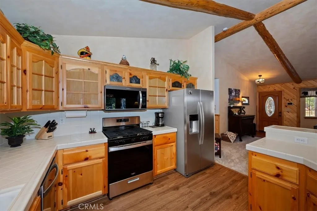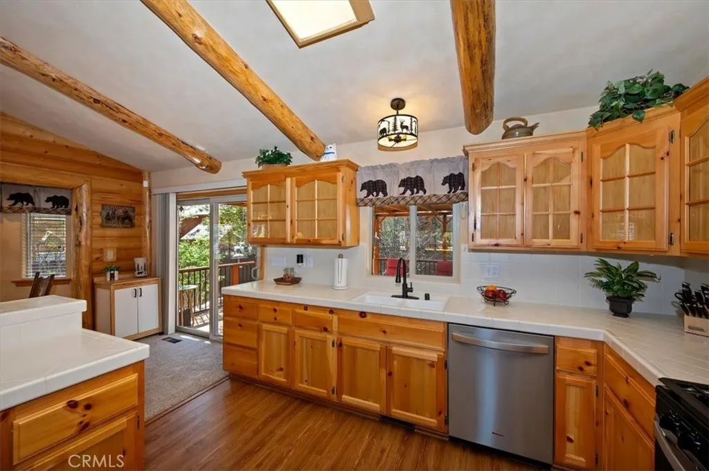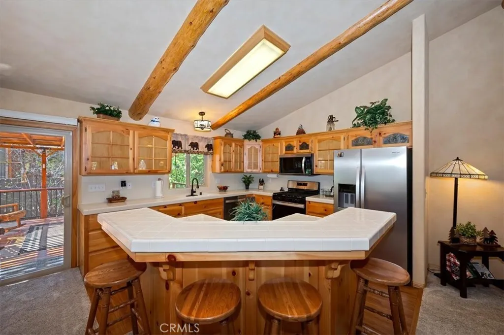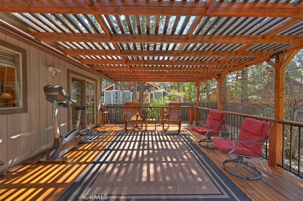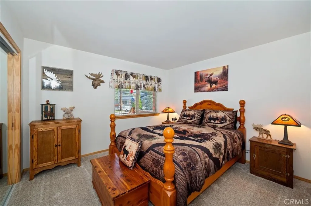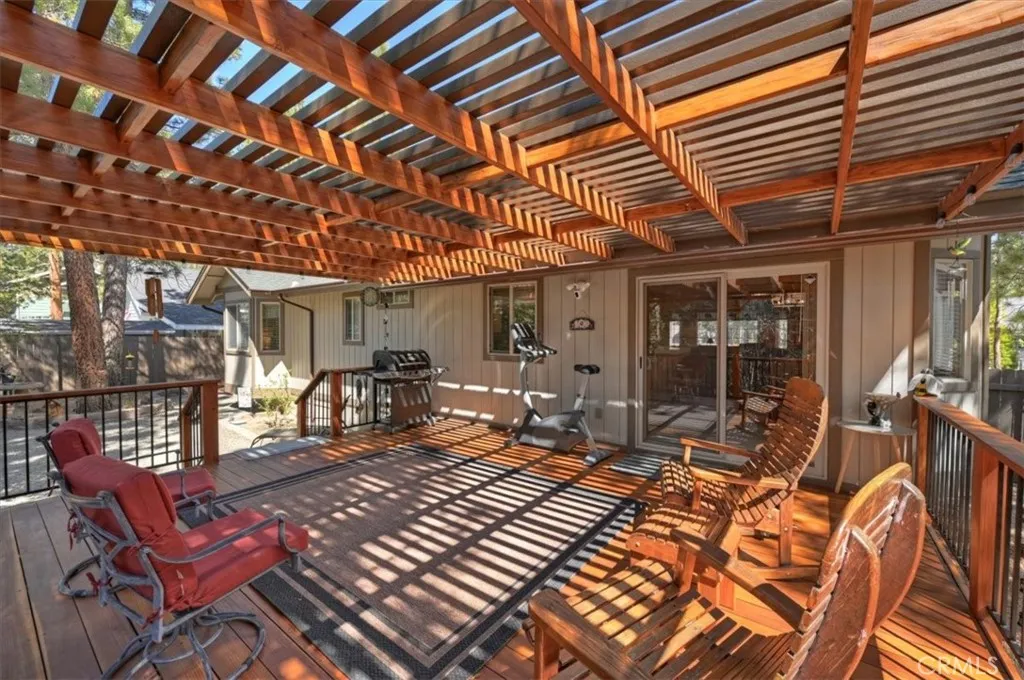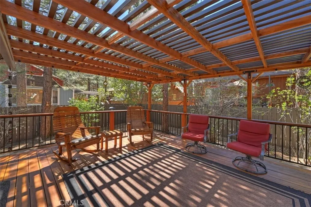 Experience the peace and serenity of mountain living in this turnkey Big Bear retreat! Located in the highly desirable Forest Springs neighborhood, this log-cabin inspired home has been meticulously maintained and lovingly cared for since its build in 2003 ~ Featuring a 2-car garage, additional parking in front, and dedicated RV or boat parking to the right, there's plenty of level entry parking for the whole crew ~ Once inside, enjoy the brand-new carpet throughout, the new elegant wood flooring, and attention to detail with oil-rubbed bronze accents on all doorknobs, hinges, and light fixtures ~ The open concept kitchen comes with brand-new stainless-steel appliances: gas stove, microwave, double-door fridge, and dishwasher ~ Comfort and security are paramount, featuring a new complete home security system with front and rear Ring cameras, a Wi-Fi thermostat, and dimmer switches on most lighting ~ The HVAC system (including the condensing unit) was fully replaced in 2016, and a new 50-gallon water heater ensures plenty of hot water for everyone ~ Enjoy peaceful mountain evenings in the fully fenced backyard alongside the birds and the squirrels ~ The backyard features low-maintenance landscaping, with every plant efficiently serviced by a fully automated sprinkler system ~ 2025-2026 updates include: all wood surfaces (front and back decks, wood siding, and pergola) professionally sanded to bare wood, then stained and clear-coated using premium methods that can last up to a decade ~ The entire backyard fence has been sanded, stained, and sealed, and the patio rafters have