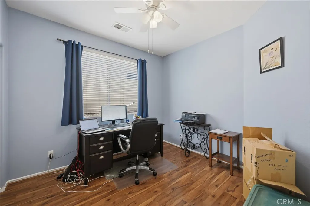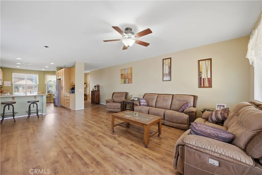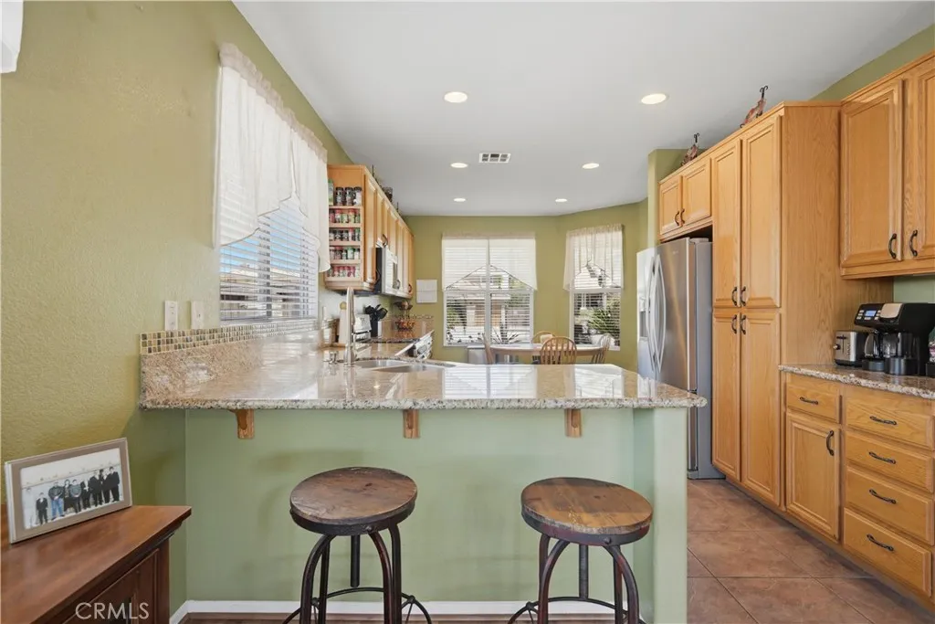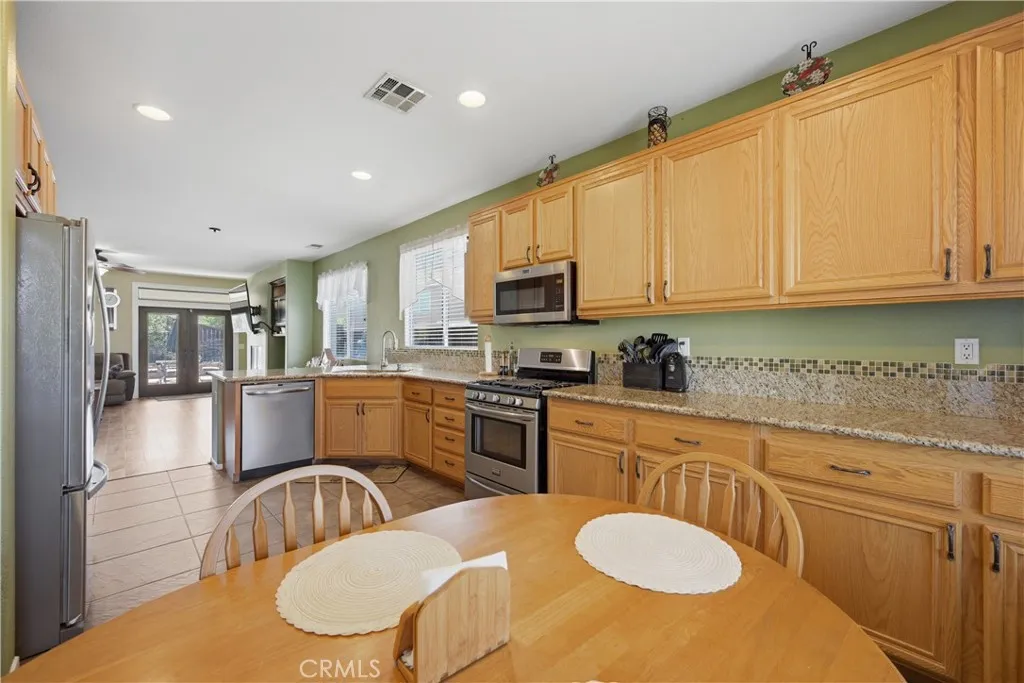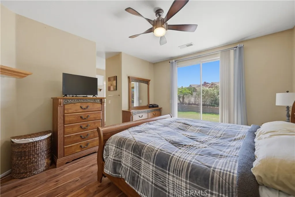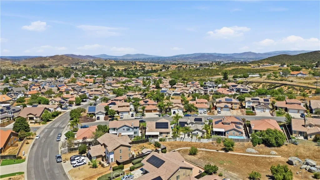 Welcome to this charming 3-bedroom, 2-bath home offering 1,604 sq ft of comfortable living space in the growing community of Wildomar, an ideal opportunity for first-time buyers! Thoughtfully designed with an open floor plan, this home seamlessly connects the living, dining, and kitchen areas, creating a bright and inviting space perfect for everyday living. The spacious primary suite is a true retreat, featuring direct backyard access, dual sinks, a separate soaking tub, and a walk-in shower. Secondary bedrooms offer flexibility for guests, a home office, or growing households. The kitchen provides ample storage and functionality, with generous space for an added breakfast nook or dining area. Step outside to a backyard built for enjoyment, complete with a built-in BBQ and bar-style setup, perfect for gatherings, weekend hangouts, and entertaining. With plenty of space to host, its an ideal extension of your living area. Additional highlights include a 2-car garage, solar for energy efficiency, and a low HOA. Conveniently located near freeways, shopping, and dining, this home offers the perfect balance of accessibility and peaceful living. A cozy, well-appointed home with all the right features to get started, this is one you wont want to miss!