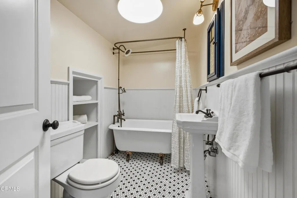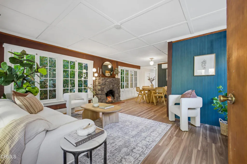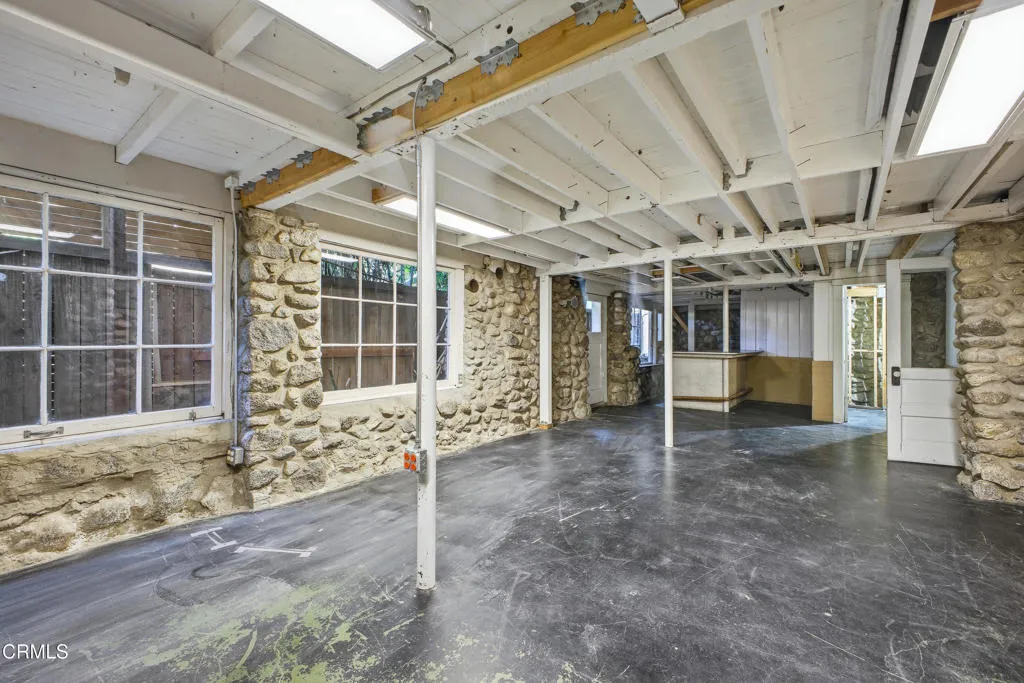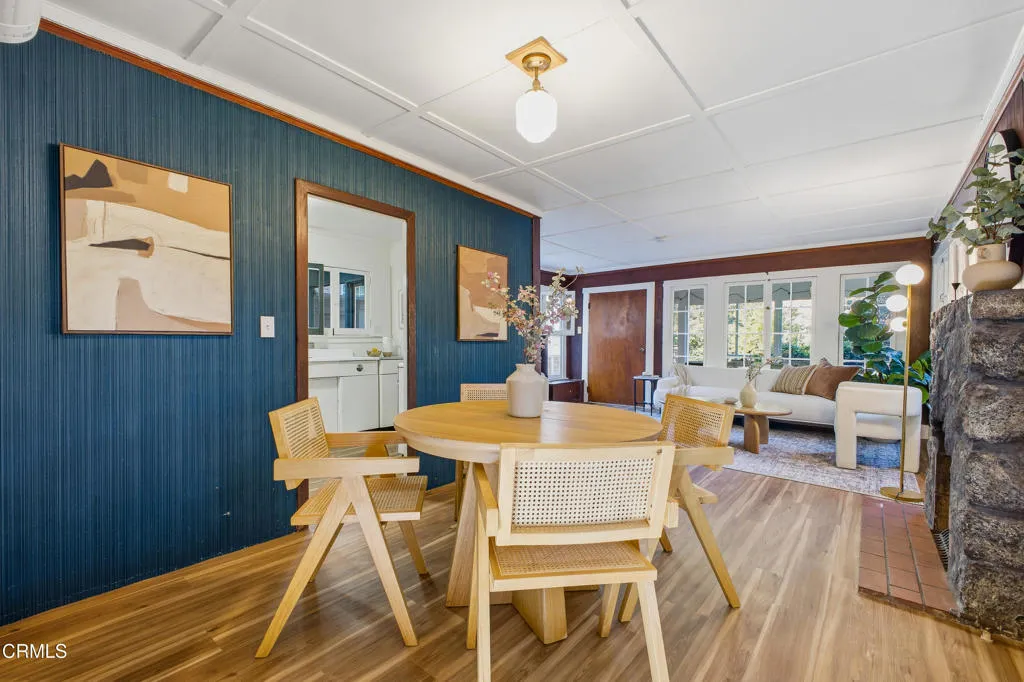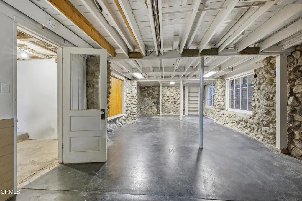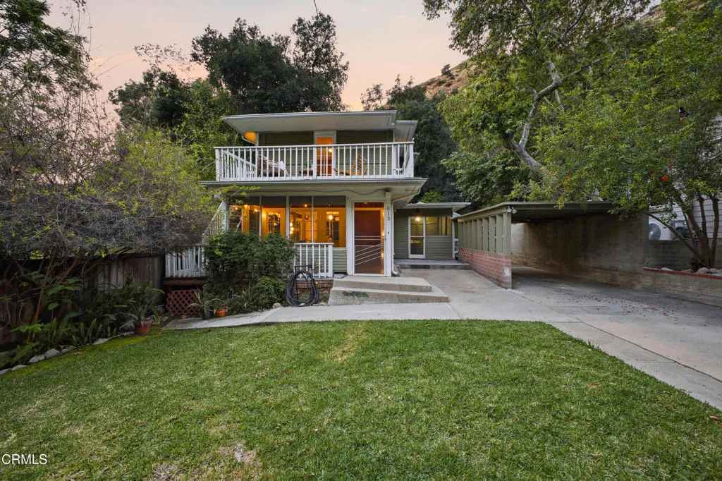 Your Sierra Madre Canyon retreat awaits at 813 Woodland Drive, a charming, character-filled home set within a serene, nature-rich setting with the gentle sound of the creek as your backdrop. From the moment you arrive, the beautifully landscaped front yard, lush lawn, and inviting front porch set the scene for outdoor dining or relaxing in the Southern California sunshine. Inside, the living room is highlighted by rich wood accents, a striking stone fireplace, and peaceful views of the surrounding trees. It's an ideal space to unwind or gather while enjoying the quiet canyon setting. The kitchen blends vintage charm with functionality, featuring well-maintained appliances, built-in shelving, and convenient access to an enclosed patio area with laundry and basement access. The expansive basement, approximately 835 square feet (buyer to verify), provides incredible flexibility for a variety of uses, whether as a home theater, studio, office, or additional entertainment space. The recently upgraded bathroom is thoughtfully designed with elegant tile work, a classic clawfoot tub, and a pedestal sink. Upstairs, two well-sized bedrooms are filled with natural light and treetop views. At the end of the hall, a versatile bonus room, previously used as a primary bedroom, feels like a private retreat with windows on all sides and access to a second-story balcony. From here, enjoy the calming sounds of the nearby creek and the surrounding natural beauty. The property includes a two-car carport and extended driveway parking, as well as tasteful upgrades such as new AC and heat on all t