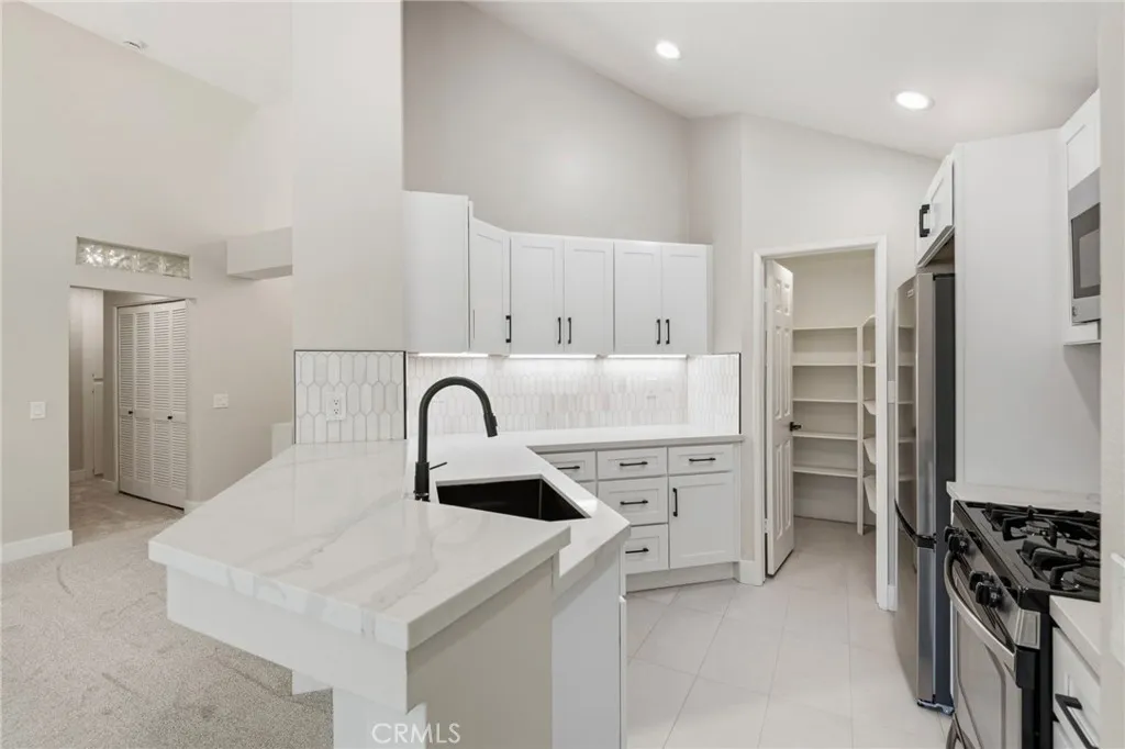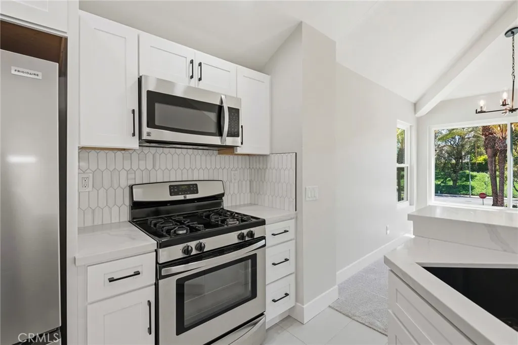 I'm Gorgeous! I'm completely remodeled Head to Toe... Available Now, Beautifully updated 2 Bedroom, 2 Bath, 1046 SF with a 1 Car Attached Garage Condo in the Highly Desired Expressions Tract on Rancho Niguel. Fresh Paint, New Flooring, New Light Fixtures, New LED inset ceiling lights, New Vinyl Dual Pane Windows, New Outlets & Light Switches! The Open Concept Kitchen features New Cabinets with Eye Catching Quartz Countertops, Black Cabinet Pulls and Under Cabinet Lighting. A Gorgeous Black Stainless Steel Single Bowl Sink with New Black Pull Down Faucet and New Garbage Disposal. Stainless Steel Appliances, New Counterdepth Refrigerator and a Walk-in Pantry! Freshly Painted Fireplace with New H-Burner and Fire Glass! The Hall Bath has New White Shaker Vanity Cabinets with Calacutta Quartz Counters, New Black Fixtures, New Bathtub with Herringbone Tile Enclosure, New Exhaust Fan, New Elongated Toilet, New Medicine Cabinet, New Light Fixture and Freshly Installed subtle 12x24 Porcelain Tile Flooring. Onto the Master! The Master Bedroom features newly installed LED Ceiling Lights, Vaulted Ceilings, a Walk-in Closet for her and a standard closet for him. As you walk into the Master Bathroom, you will be greeted by 12x24 Porcelain Tile, New White Shaker Cabinets with Calacutta Quartz Counters, New Black Fixtures, New Elongated Toilet, All New Light Fixtures and a Gorgeous Walk-in Shower complete with Shelf, Shower Seat and Barn Style Glass Door! HVAC System was installed in 2020 and the HOA has done a PEX Repipe in this well maintained community. Easy access to the 73 Toll Rd and