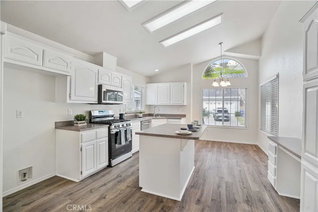 Beautifully updated 3-bedroom, 2-bath home featuring fresh interior and exterior paint, new luxury vinyl plank flooring, new carpet, and tile in the primary bath. The inviting living room offers a fireplace with built-in shelving. The kitchen is well-equipped with a center island, built-in desk, stainless steel appliances, built-in microwave, and fresh white cabinetry with ample storage. Ceiling fans throughout and a dedicated laundry room add comfort and convenience. The primary suite includes an en-suite bath for added privacy with separate dual vanities. The backyard is designed for entertaining with new sod, a custom-built BBQ with brick accents and cement prep countertops, outdoor lighting, a covered patio slab, and an additional seating area with a view. Move-in ready with modern updates and functional living spaces throughout. Located within Canyon View Estates, the home carries a monthly land lease of $1,886.22, which includes access to community amenities such as two pools and spa, sport courts, playgrounds, 24-hour gated security, clubhouse, and RV storage. Conveniently close to shopping, dining, schools, parks, and commuter routes. Dont miss the opportunity to own this updated, move-in ready home in a quiet and friendly community. Please submit pre-approval and proof of funds with your offer. Buyer to verify all information prior to close of escrow.