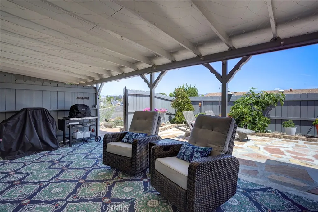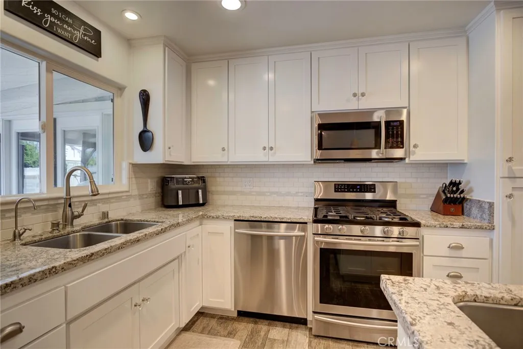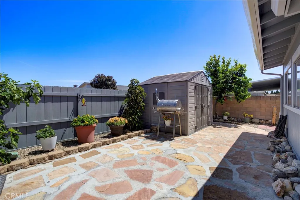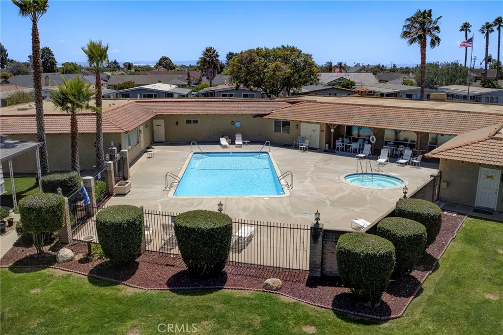 Turn-key and completely remodeled 3BD/2BA home offering ~1,500 sq ft on one of the largest corner lots in Casa Del Rio 55+ community. This single-level residence delivers the ultimate indoor-outdoor lifestyle with a fully fenced, private backyard oasis featuring a covered patio showcasing stunning Santa Maria Hills views, TV and shade panels, flagstone patio, gas line for fire pit, garden areas, shed, pet-friendly features, and mature fruit trees including dwarf avocado, fig, and lemon. Inside, enjoy high ceilings, skylights, and abundant natural light throughout. The open great room with French doors flows seamlessly to the backyard. The beautifully upgraded kitchen features granite countertops, white shaker cabinetry, stainless steel appliances, a center island with prep sink, breakfast bar, and a butlers pantry with coffee and beverage station. The primary suite includes French doors to the patio, dual closets, and a spa-like bathroom with soaking tub, walk-in shower, dual sinks, and granite finishes. Two additional bedrooms include one currently used as an office with built-ins. Guest bath offers a tub/shower combo and matching upgrades. Oversized 2-car garage features epoxy floors, utility sink, extensive storage, and included washer/dryer. Additional highlights include A/C, reverse osmosis system, and low-maintenance landscaping. Enjoy resort-style amenities including a renovated pool, spa, and clubhouse with active social events. Conveniently located near walking trails, freeway access, and medical facilities. Optional vehicle, RV/boat storage available through the P