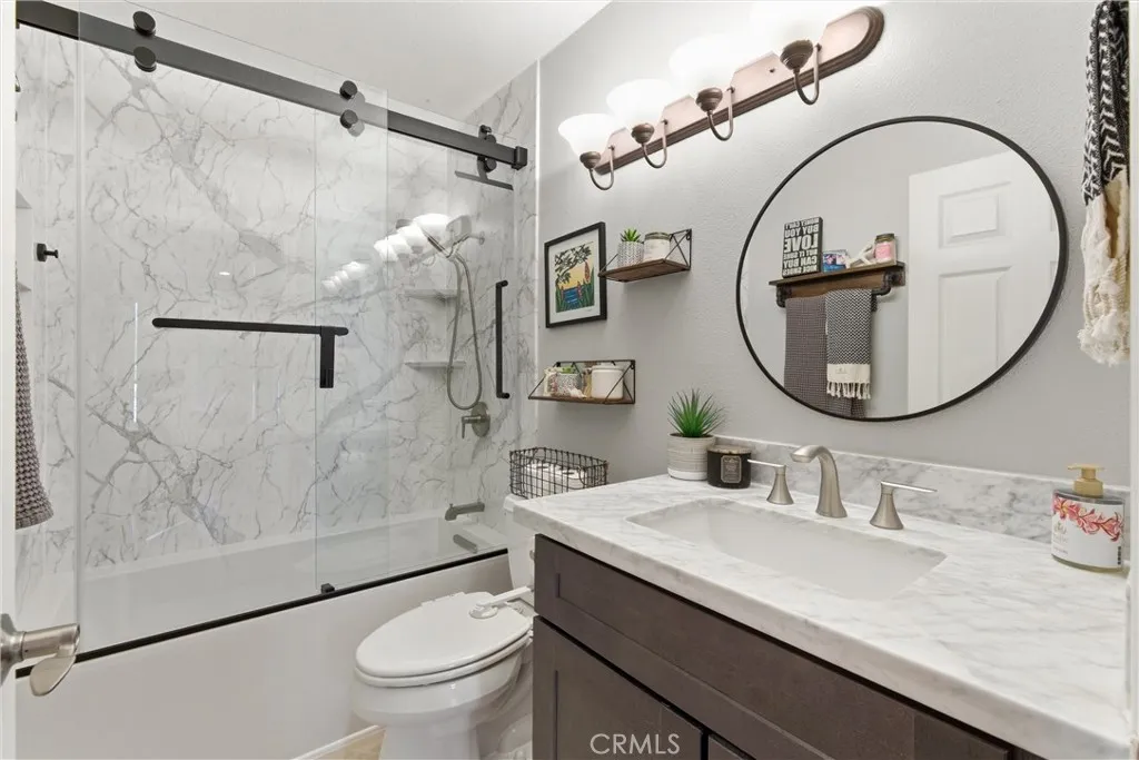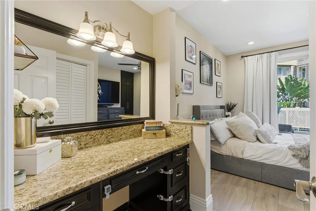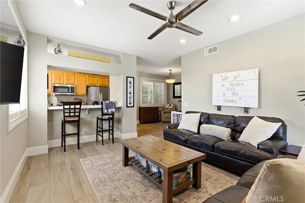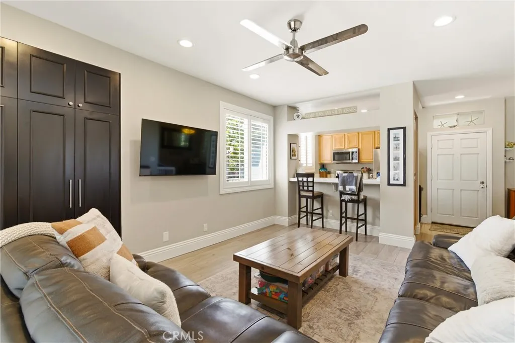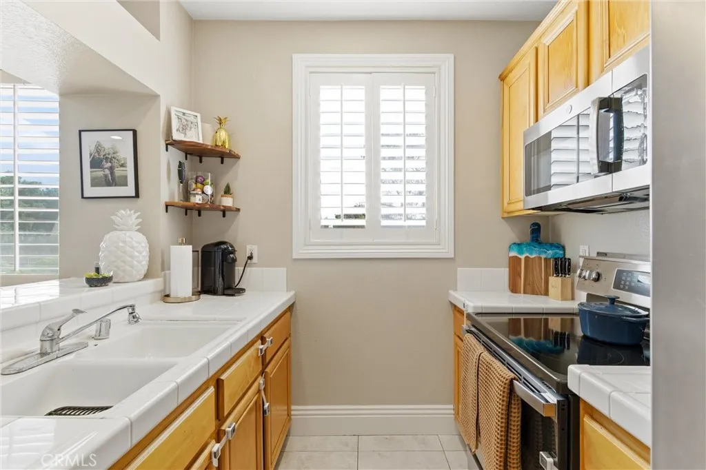 Single-level living with no interior steps (elevator access from your parking space), a corner unit location, an incredible 500 sq ft patio, and no direct neighbors on three sides this is arguably the BEST property available in all of Seabridge! Welcome to effortless coastal living in the highly sought-after, guard-gated Seabridge community in South Huntington Beach. Ideally situated on a prime corner location, this stunning 1-bedroom, 1-bath home showcases beautiful panoramic views from your expansive 500 sq ft balcony and offers an exceptional blend of modern comfort, coastal luxury, and resort-style amenities just minutes from the beach. From the moment you step inside, you're greeted by an abundance of natural light that creates an open, airy feel throughout. Luxury vinyl flooring flows seamlessly through the living spaces, complementing the thoughtfully designed layout and enhancing the homes modern coastal aesthetic. The spacious entry enhances the overall feel of the home, while the living room is both welcoming and refined, effortlessly connecting the kitchen, dining, and living areas ideal for entertaining. The beautifully updated kitchen features stainless steel appliances and plantation shutters. The spacious bathroom has been tastefully renovated with a remodeled tub-shower featuring a glass enclosure, elegant tile work, and a modern vanity. The primary bedroom is generously sized, offering a peaceful private retreat. Additional features include interior laundry, ceiling fans, central heating, dual-pane windows, plantation shutters, and a layout that prioritiz