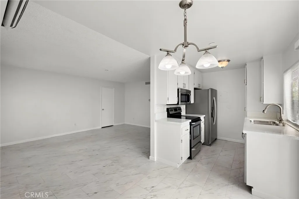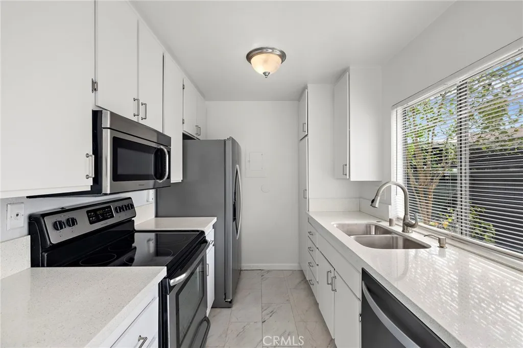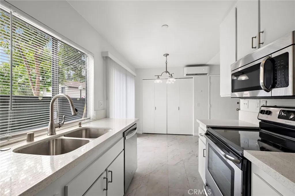 Freshly updated and move-in ready, this stylish ground-level condominium in the Aliso Creek Villas community offers comfort and convenience in the heart of Lake Forest. This inviting 1-bedroom, 1-bath residence features a bright, open-concept layout enhanced by oversized tile flooring, neutral paint, brand new carpet, air conditioning, and abundant natural light throughout. The spacious living area opens seamlessly to the dining area and private enclosed patioperfect for outdoor dining. The upgraded kitchen offers crisp white cabinetry, sleek quartz-style countertops, updated fixtures, built-in electric range, dishwasher, refrigerator, and ample storage. A sizeable bedroom features plush new carpet, a large walk-in closet, and its own split-system air conditioning unit for added comfort, while an additional split-system AC unit services the main living area. The bathroom has been updated with a modern vanity, refreshed lighting, and a tub/shower combination. There is an inside laundry closet with side-by-side washer and dryer included. Additional highlights include one assigned covered carport space, guest parking conveniently located throughout the community, and access to the community pool, spa, clubhouse, and lush greenbelts. Ideally located near the Aliso Creek trail system, this home offers excellent access to outdoor recreation, including walking, biking, and nearby golf. Enjoy close proximity to the Lake Forest Golf and Practice Center and a variety of shopping, dining, and entertainment. Conveniently situated near the 5 Freeway and Toll Roads, offering an easy comm