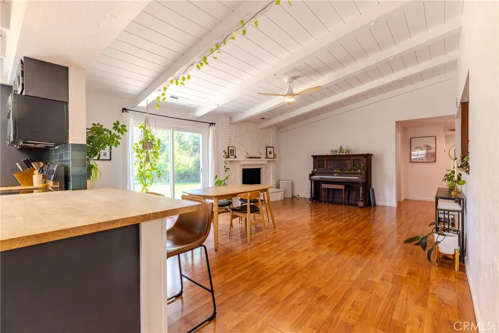 Located on Reddings sought-after west side, this beautifully updated Spanish-style home blends classic character with modern comfort. The single-story layout offers 1,691 square feet of open space with three bedrooms, two bathrooms, and an open concept that feels bright and functional. Vaulted ceilings and energy-efficient dual-pane windows fill the home with natural light, while a recent central AC installed in 2024 ensures comfort throughout. Interior Highlights The double front doors open to a welcoming layout that connects a formal dining room, a cozy family room with a fireplace, and a spacious kitchen at the heart of the home. The kitchen features warm butcher block countertops, a breakfast bar, ample cabinetry, and an updated sink fixture. A European-style laundry is thoughtfully integrated within the kitchen, keeping daily living efficient and convenient. Three sliding glass doors in the family room, kitchen, and primary suite open directly to the backyard, bringing the outdoors in. Throughout the home, youll find newer interior doors and LED lighting, along with updated bathroom sink fixtures and modern light fixtures in both bathrooms for a clean, refreshed feel. Outdoor Living The private 0.49-acre backyard provides space to relax, garden, and entertain. Mature and maturing fruit treesincluding grapefruit, lemon, lime, pear, apple, and orangeare complemented by two majestic eucalyptus trees that provide shade and natural beauty. Five organically fed garden beds with organic soil offer a great foundation for growing vegetables and herbs. A small patio area at the