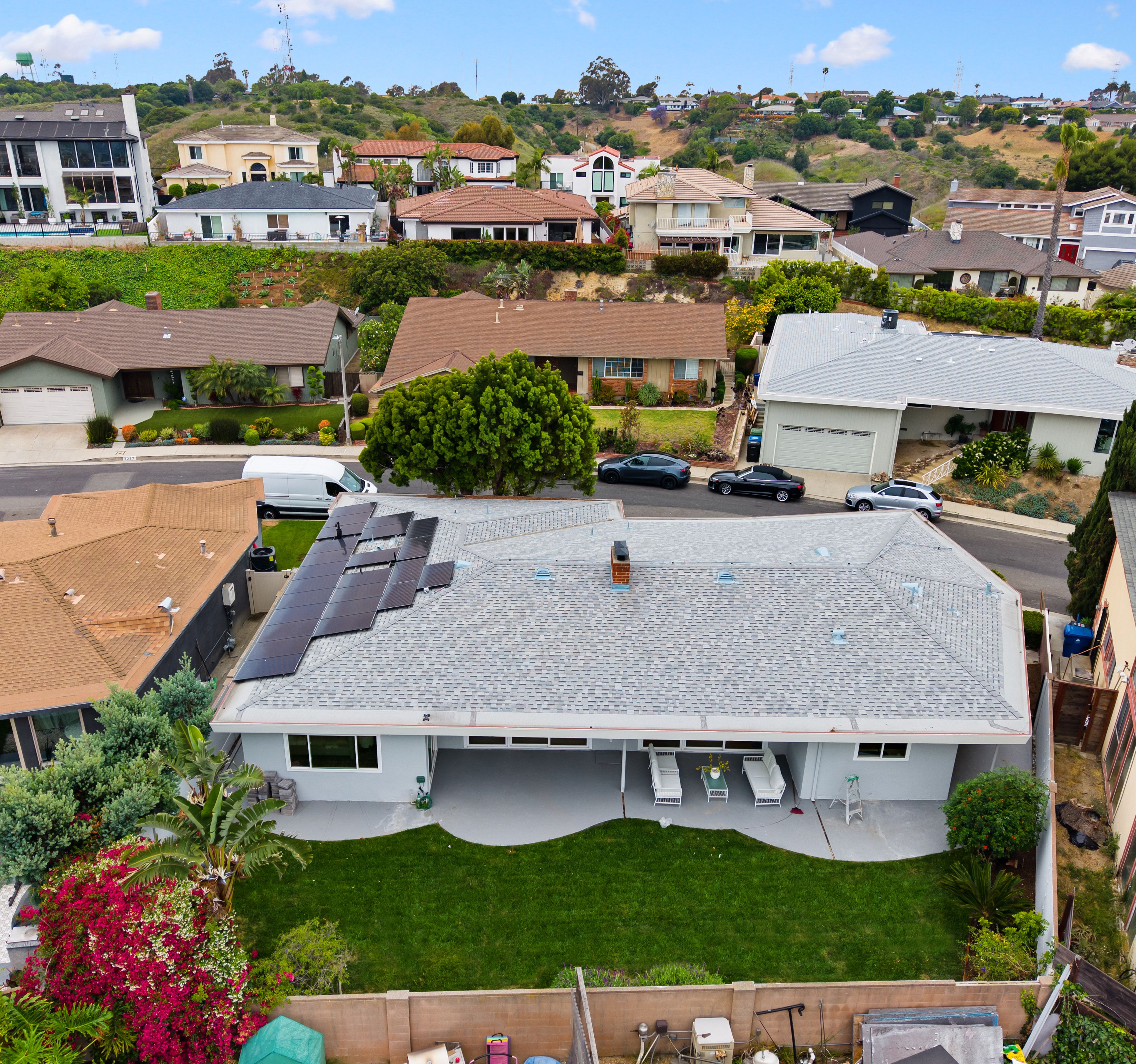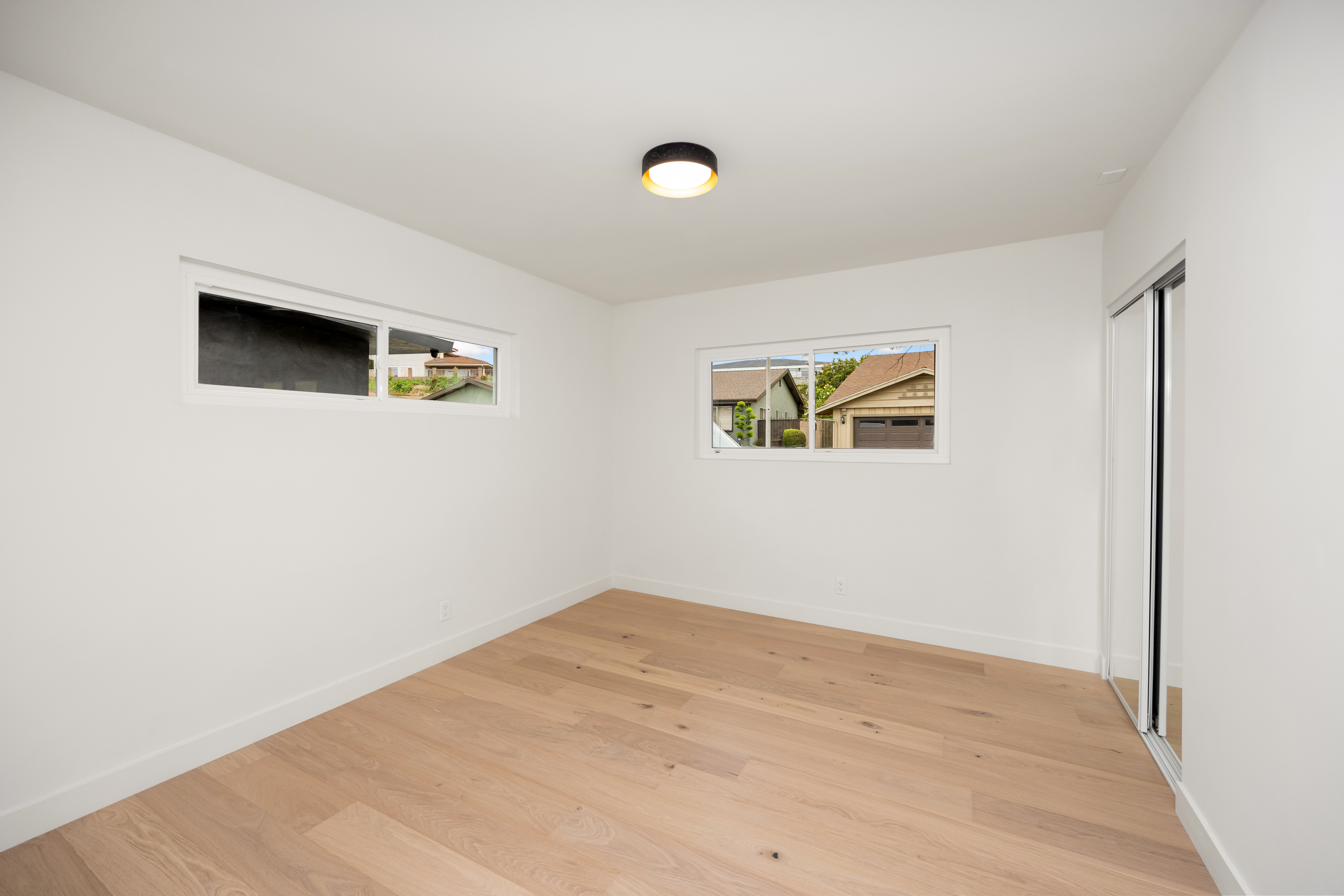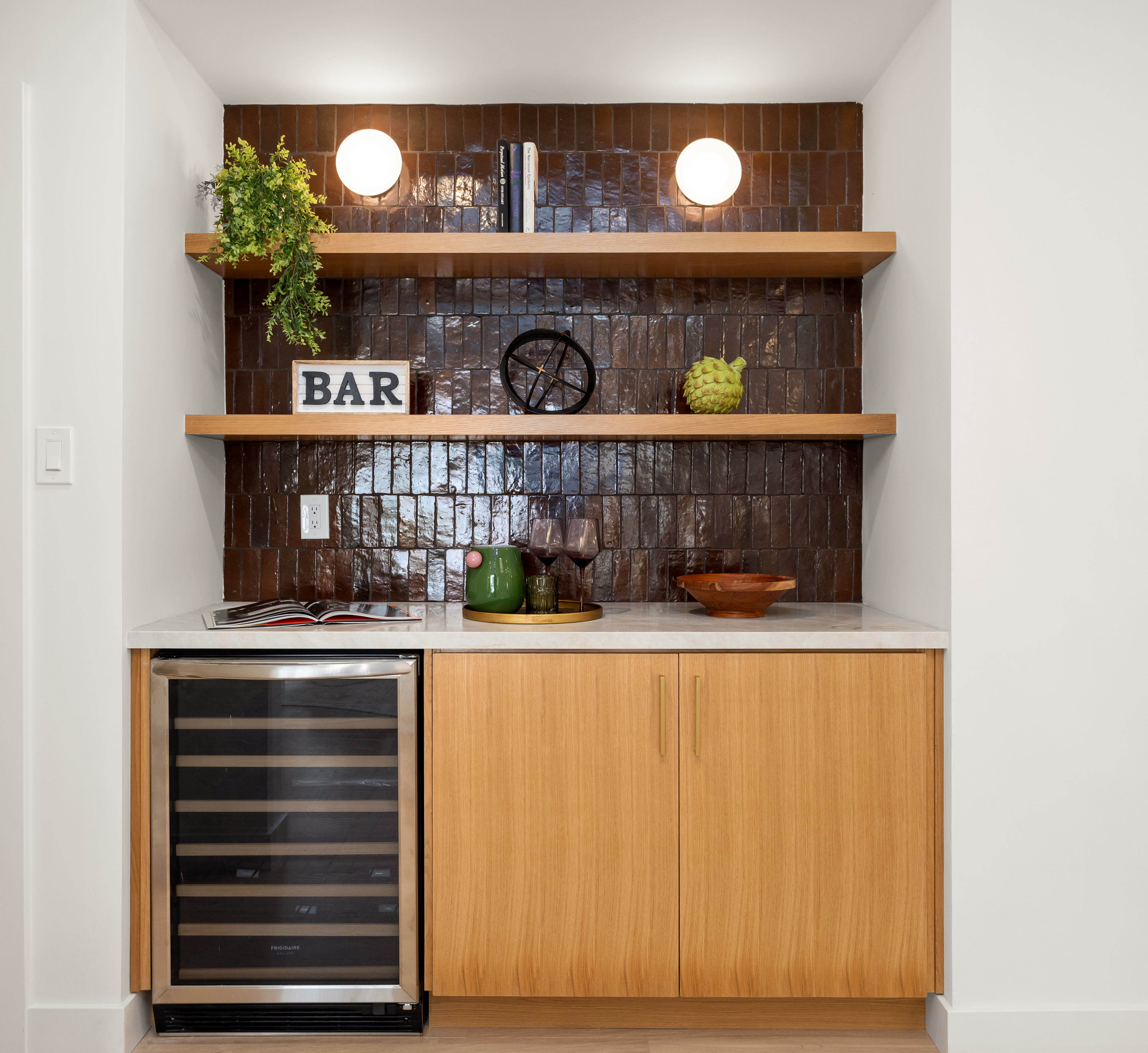Thoughtfully reimagined from the inside out, this single-story Baldwin Hills residence pairs classic mid-century architecture with curated, contemporary finishes throughout. Wide-plank engineered hardwood flows through an open layout connecting two living spaces, dining room, and kitchen grounded by two fireplaces. A dedicated dry bar zellige tile backsplash and wine fridge carries its own design identity off the living room. The designer kitchen is the home's centerpiece two-tone cabinetry pairing white with oak cabinets, quartz countertops, tile backsplash, reeded-base island, pot filler, and stainless appliances. The primary suite offers a slatted wood accent wall, walk-in closet, and spa-inspired bath with a dual floating vanity, marble-look countertops, and a tile shower with rain head and frameless glass enclosure. Additional bedrooms are served by a secondary full bath with a warm wood floating vanity, while the powder room makes a statement with bold graphic-print wallpaper, a floating vanity, and vessel sink. Large sliding doors open to a private backyard with a covered patio, lush lawn, and mature landscaping. Owned solar adds year-round efficiency. Minutes from SoFi Stadium, the Forum, USC, and the energy of Downtown Los Angeles..