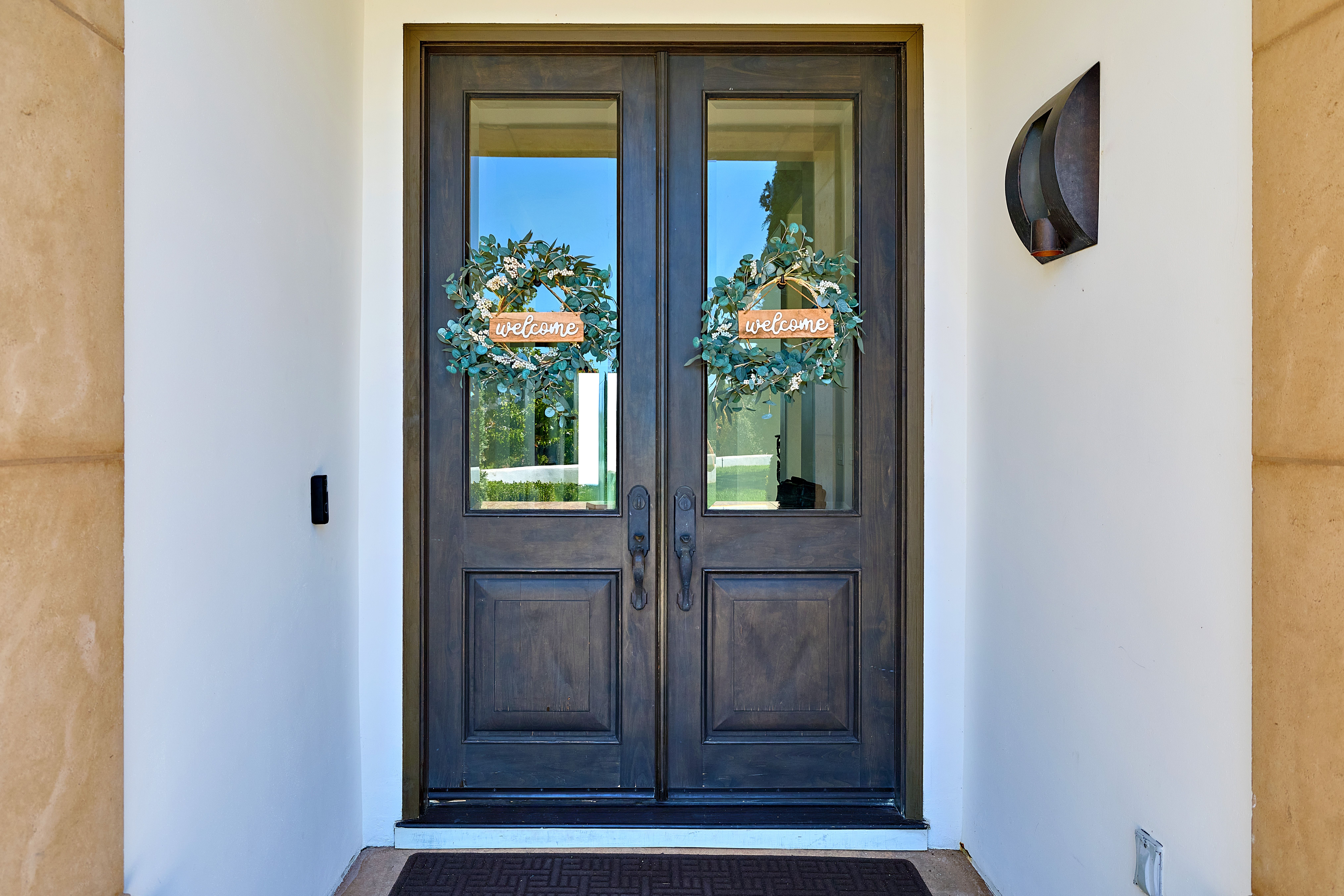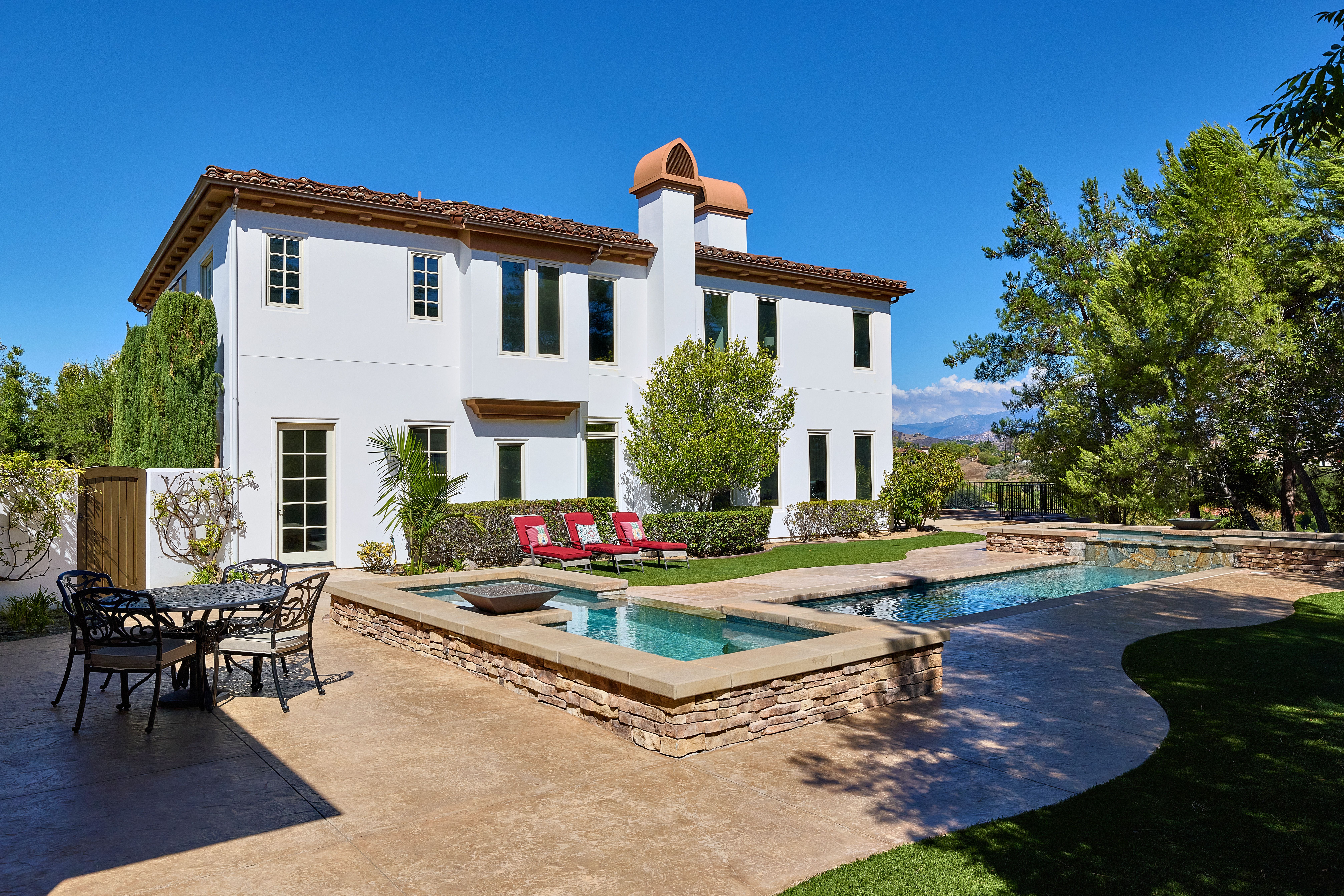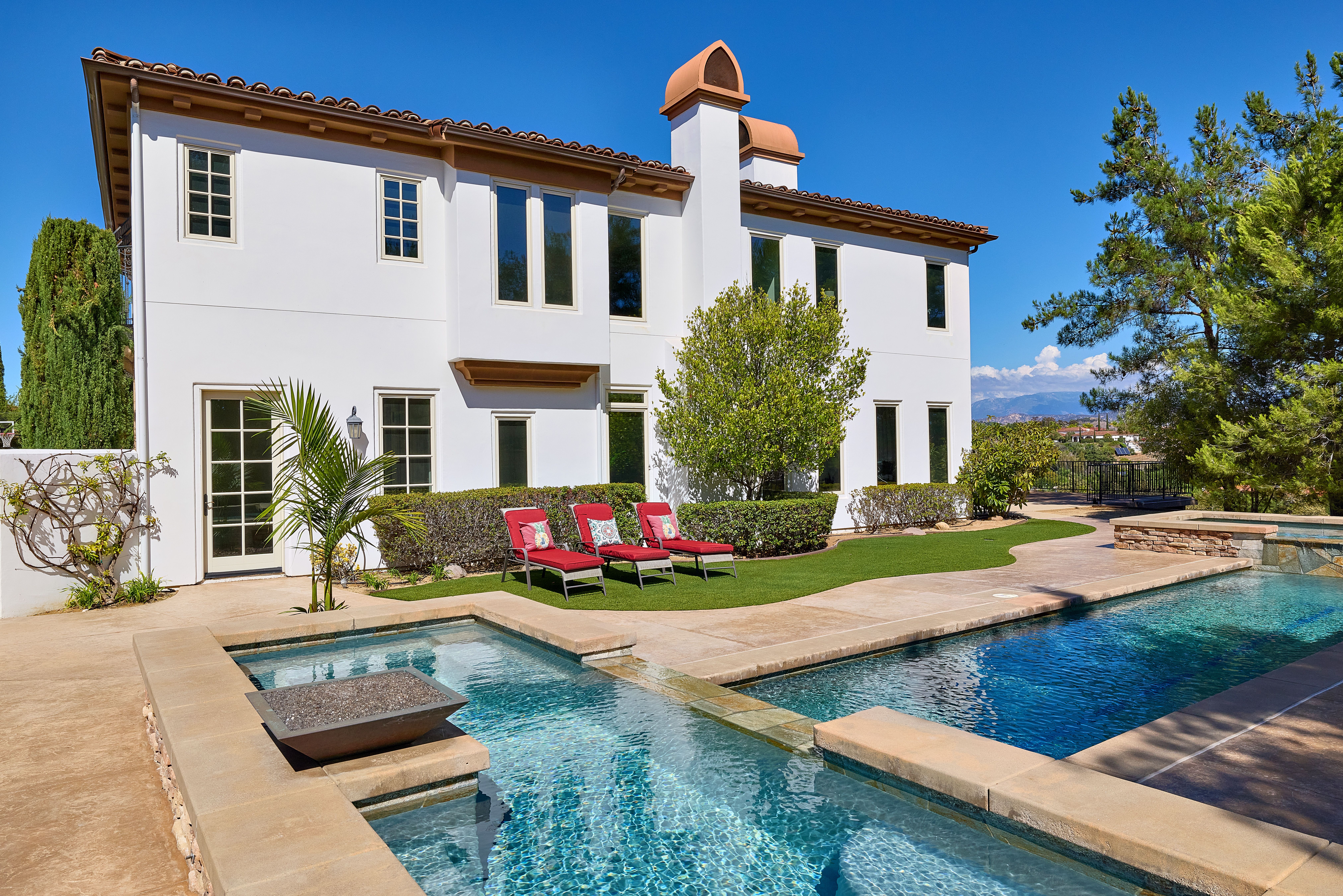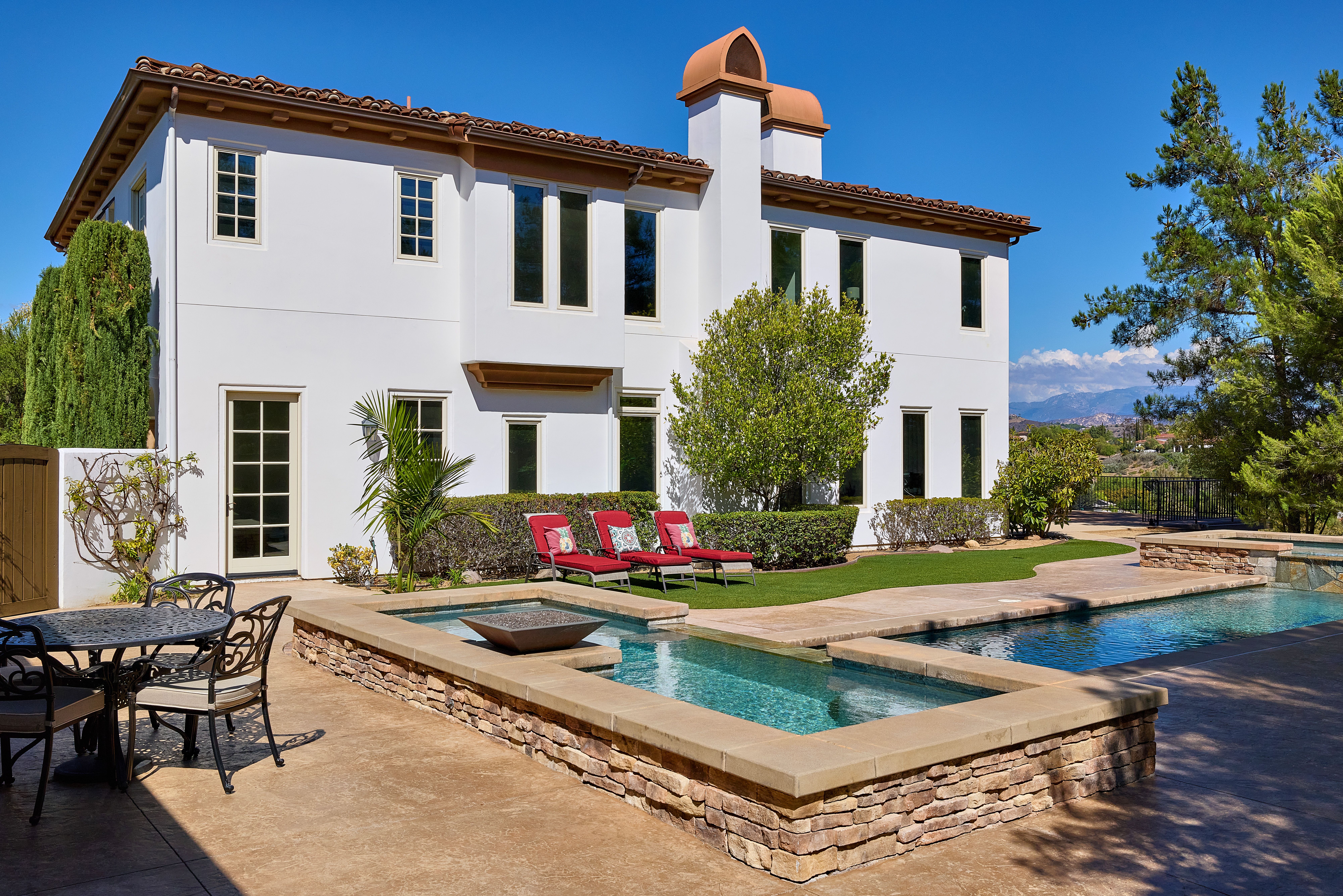 Showcasing a large estate home with resort-style pool and spa, detached guest house, 4-car garage, privacy, and refined architectural details, this residence is designed for both luxury living and entertaining. Set within the exclusive gated enclave of Malabar Ranch, this Spanish Mediterranean–style estate offers the privacy, sophistication, and grandeur that discerning buyers expect. Positioned on 2.11 acres, the property presents commanding curb appeal with timeless Santa Barbara style stucco, arched windows, lush landscaping, and a sense of arrival that makes a lasting impression. Inside, a dramatic two-story formal living room welcomes guests with soaring ceilings and a sweeping grand staircase—an ideal setting for both formal entertaining and quiet reflection. The main home boasts 5 bedrooms and 5.5 bathrooms, designed with both elegance and comfort in mind. At the heart of the home, the chef’s kitchen is outfitted with a Sub-Zero refrigerator, dual ovens, dual dishwashers, and a generous center island, making it both functional and inviting. From the kitchen sink, take in serene views of the rolling Fallbrook hills—a daily reminder of the home’s exceptional setting. A spacious, well-appointed kitchen flows effortlessly between the formal dining room, breakfast nook, and the entertainment area with built-in barbecue island. The detached one-bedroom guest house offers luxurious accommodations. Outside, multiple living and dining areas are thoughtfully oriented to take in the surrounding Fallbrook hills. Enjoy morning sunrises with coffee on one terrace and toast evening sunsets from another. A private resort style in-ground pool and spa, and the cedar wrapped sauna complete the picture, providing the perfect retreat after a demanding day. This residence is more than a home—it’s a statement piece, offering the ideal balance between prestige and personal sanctuary.