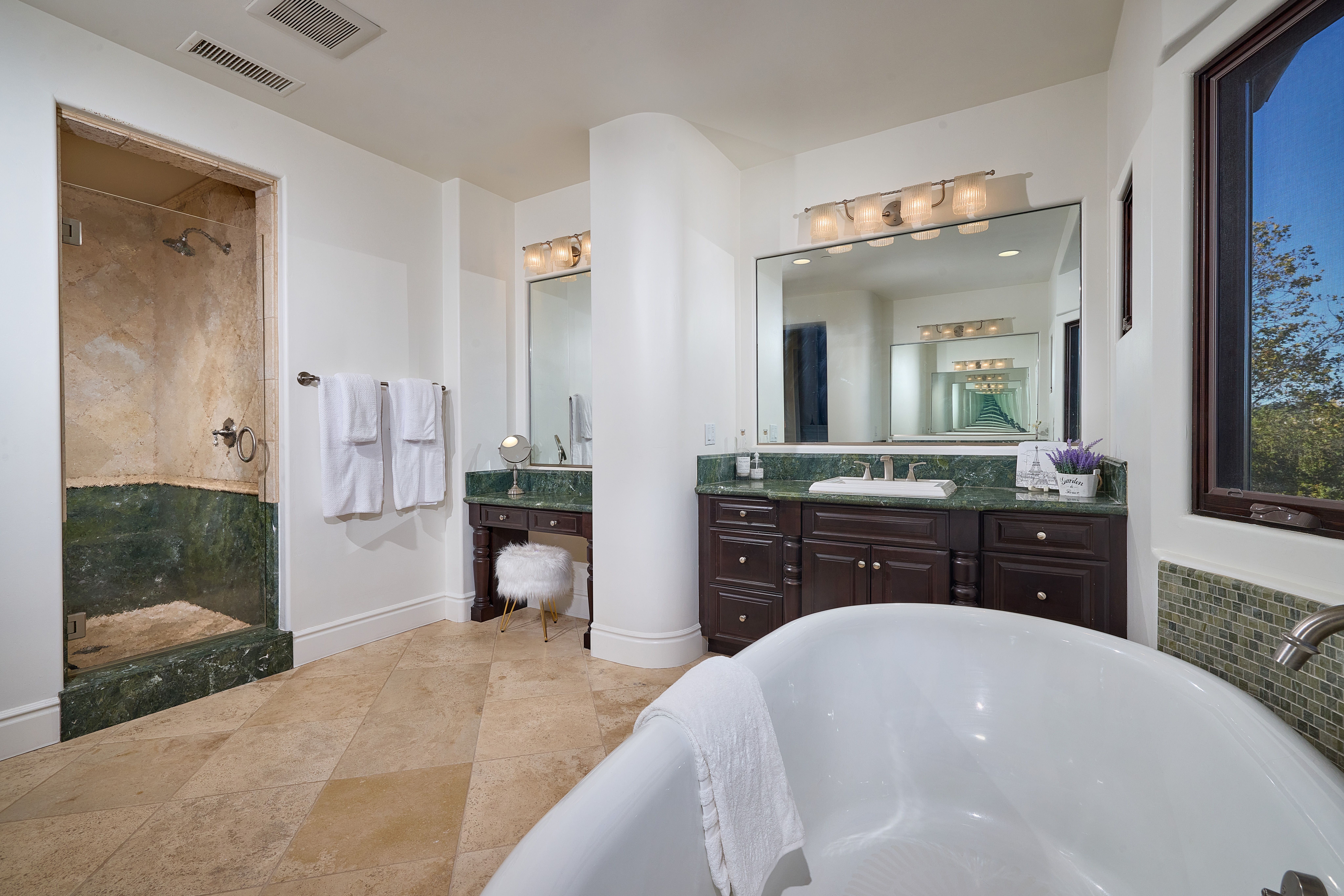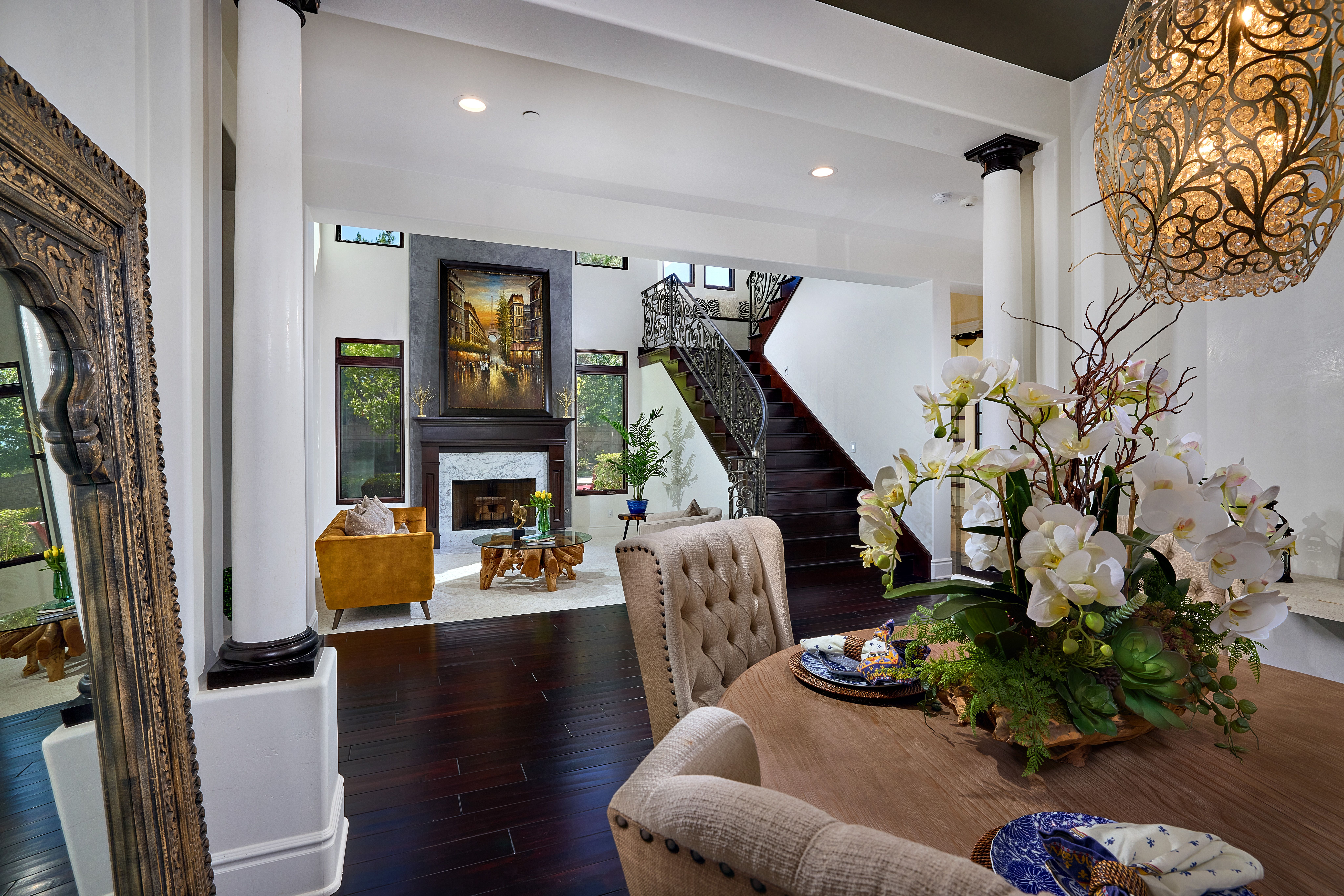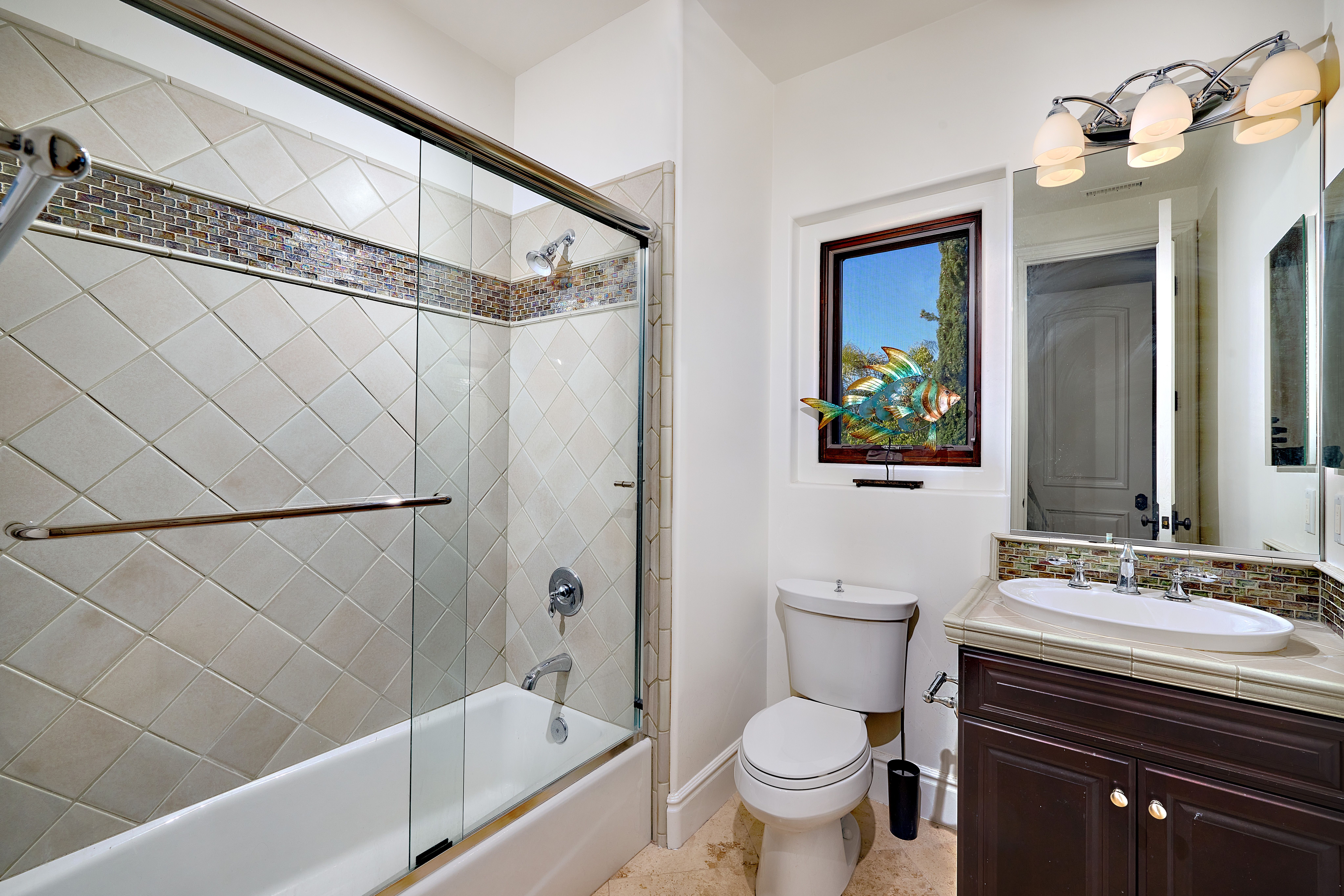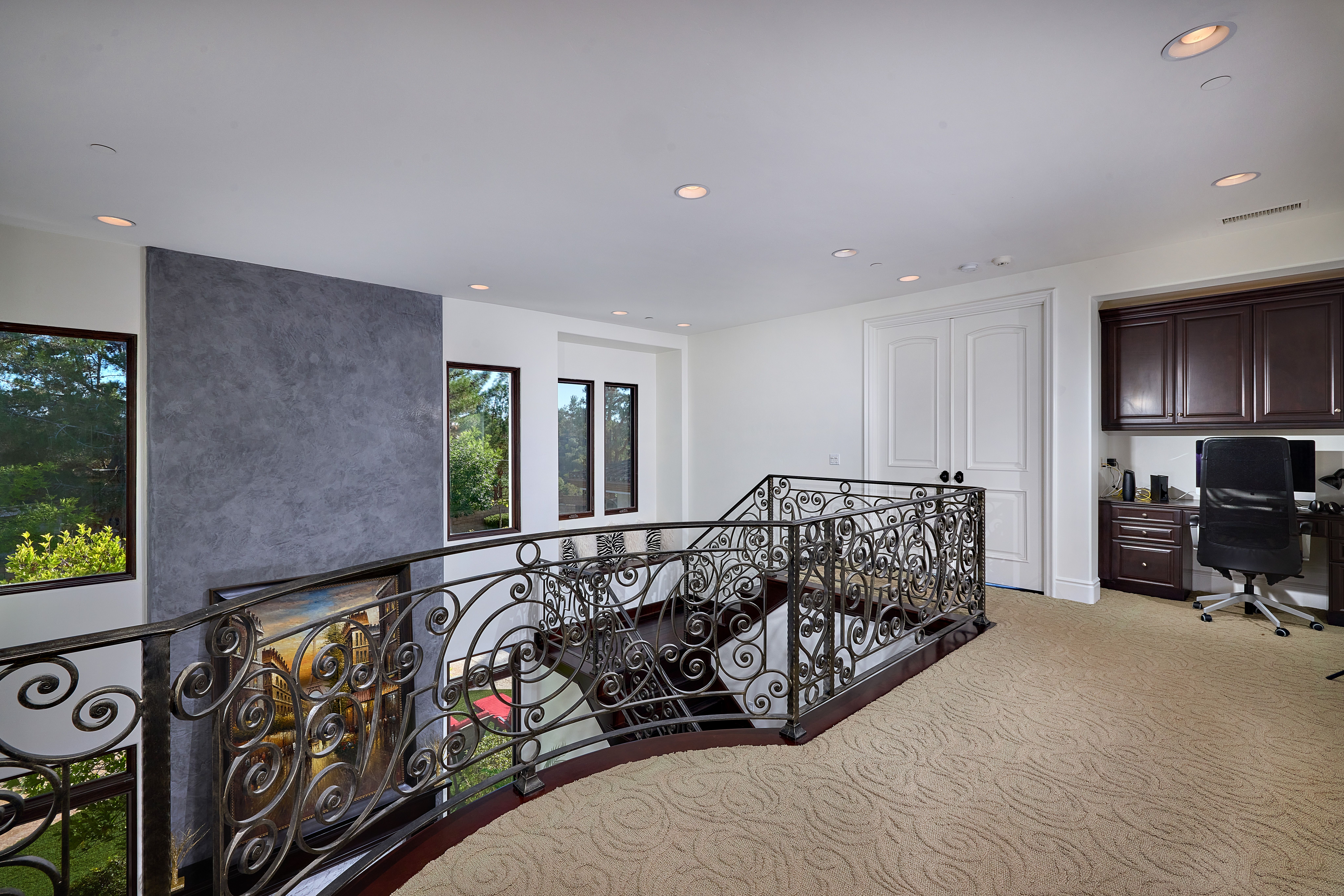 Showcasing a large estate home with resort-style pool and spa, detached guest house, 4-car garage, privacy, and refined architectural details, this residence is designed for both luxury living and entertaining. Set within the exclusive gated enclave of Malabar Ranch, this Spanish Mediterranean–style estate offers the privacy, sophistication, and grandeur that discerning buyers expect. Positioned on 2.11 acres, the property presents commanding curb appeal with timeless Santa Barbara style stucco, arched windows, lush landscaping, and a sense of arrival that makes a lasting impression. Inside, a dramatic two-story formal living room welcomes guests with soaring ceilings and a sweeping grand staircase—an ideal setting for both formal entertaining and quiet reflection. The main home boasts 5 bedrooms and 5.5 bathrooms, designed with both elegance and comfort in mind. At the heart of the home, the chef’s kitchen is outfitted with a Sub-Zero refrigerator, dual ovens, dual dishwashers, and a generous center island, making it both functional and inviting. From the kitchen sink, take in serene views of the rolling Fallbrook hills—a daily reminder of the home’s exceptional setting. A spacious, well-appointed kitchen flows effortlessly between the formal dining room, breakfast nook, and the entertainment area with built-in barbecue island. The detached one-bedroom guest house offers luxurious accommodations. Outside, multiple living and dining areas are thoughtfully oriented to take in the surrounding Fallbrook hills. Enjoy morning sunrises with coffee on one terrace and toast evening sunsets from another. A private resort style in-ground pool and spa, and the cedar wrapped sauna complete the picture, providing the perfect retreat after a demanding day. This residence is more than a home—it’s a statement piece, offering the ideal balance between prestige and personal sanctuary.